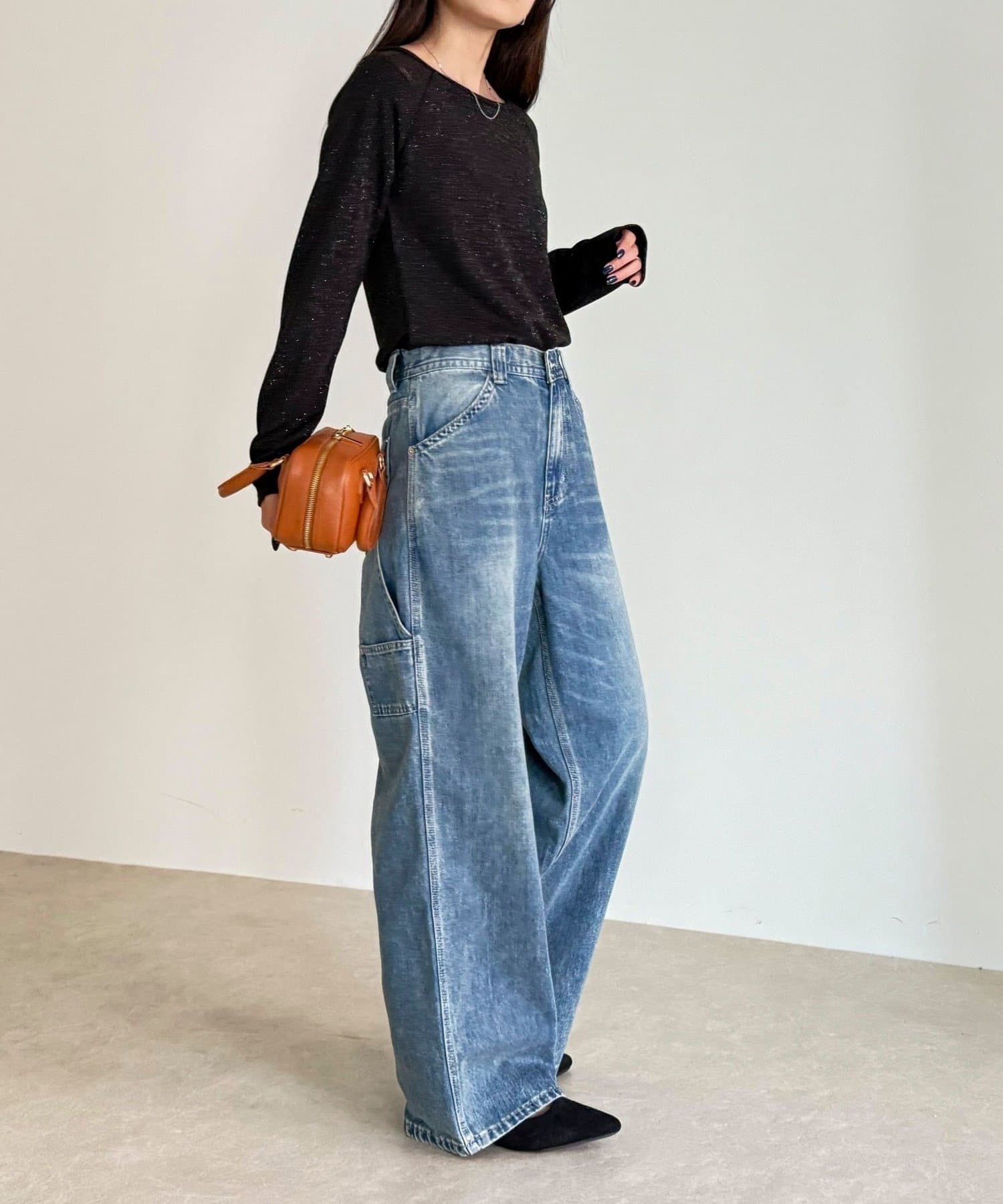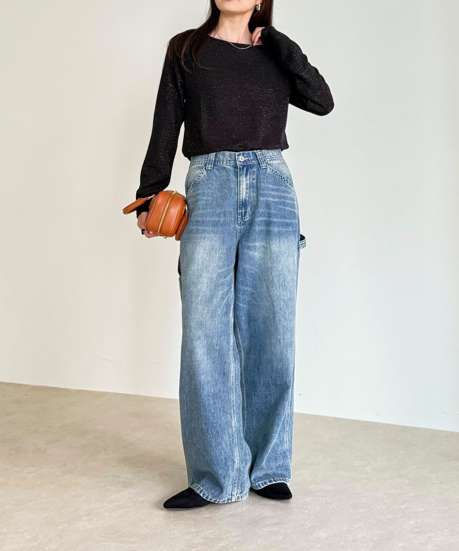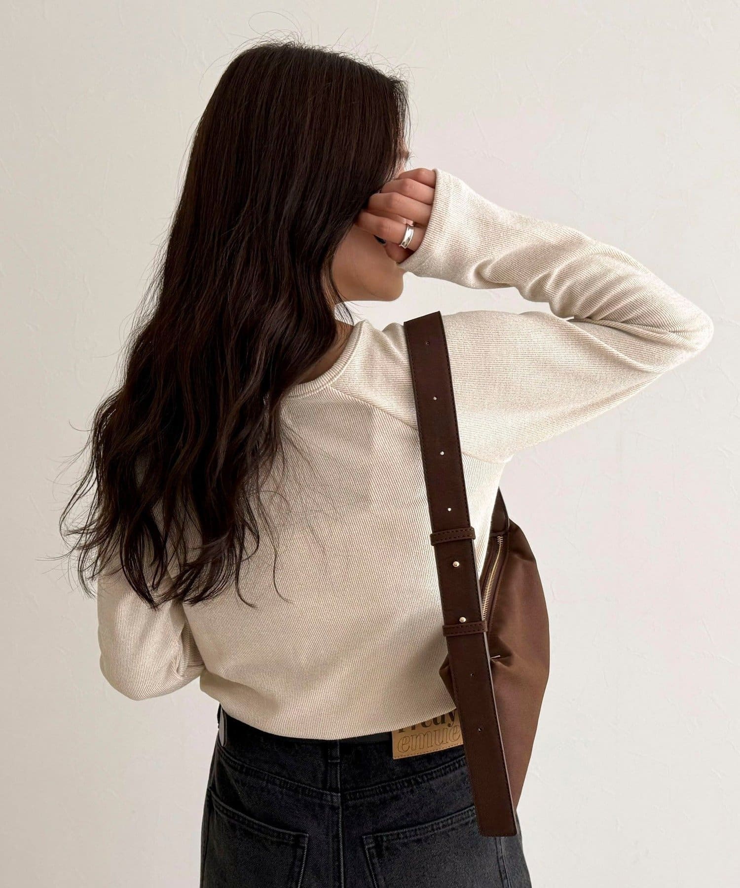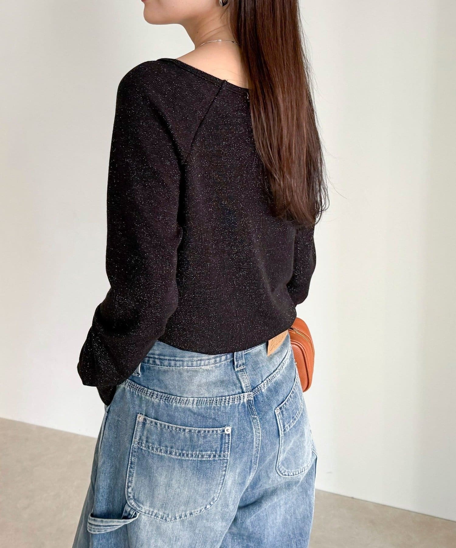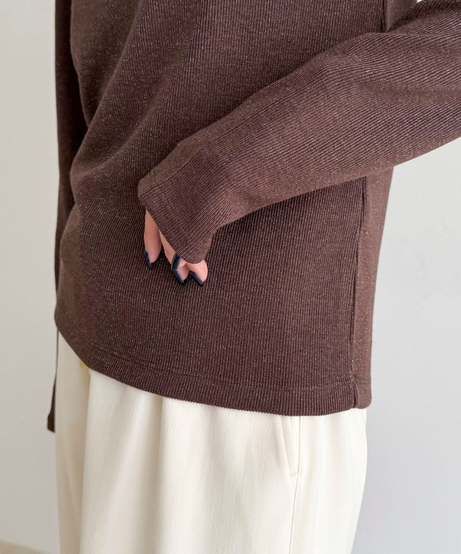 ・細かなラメ糸を織り込んだテレコ素材が、上品な光沢感と華やかさをプラス