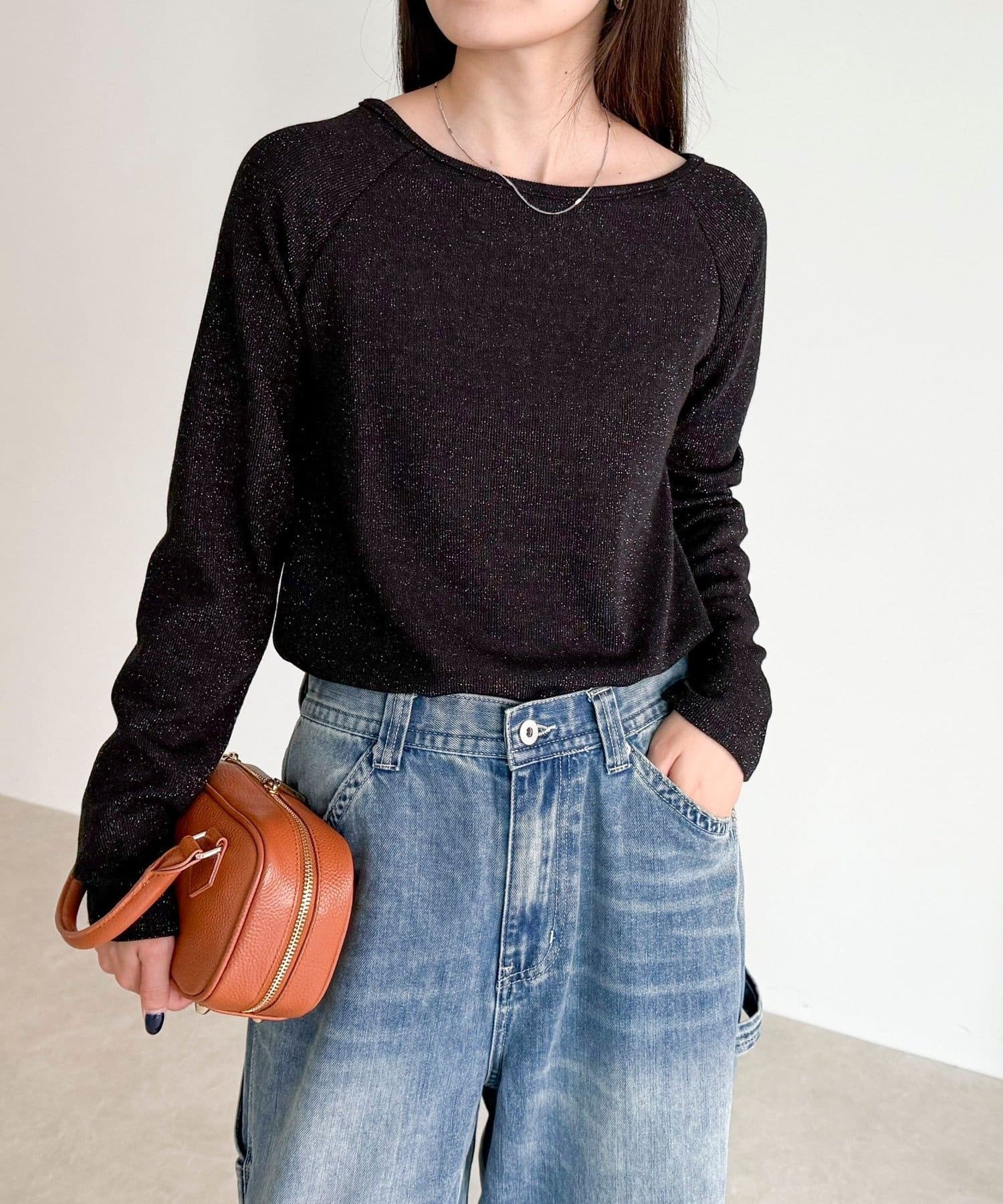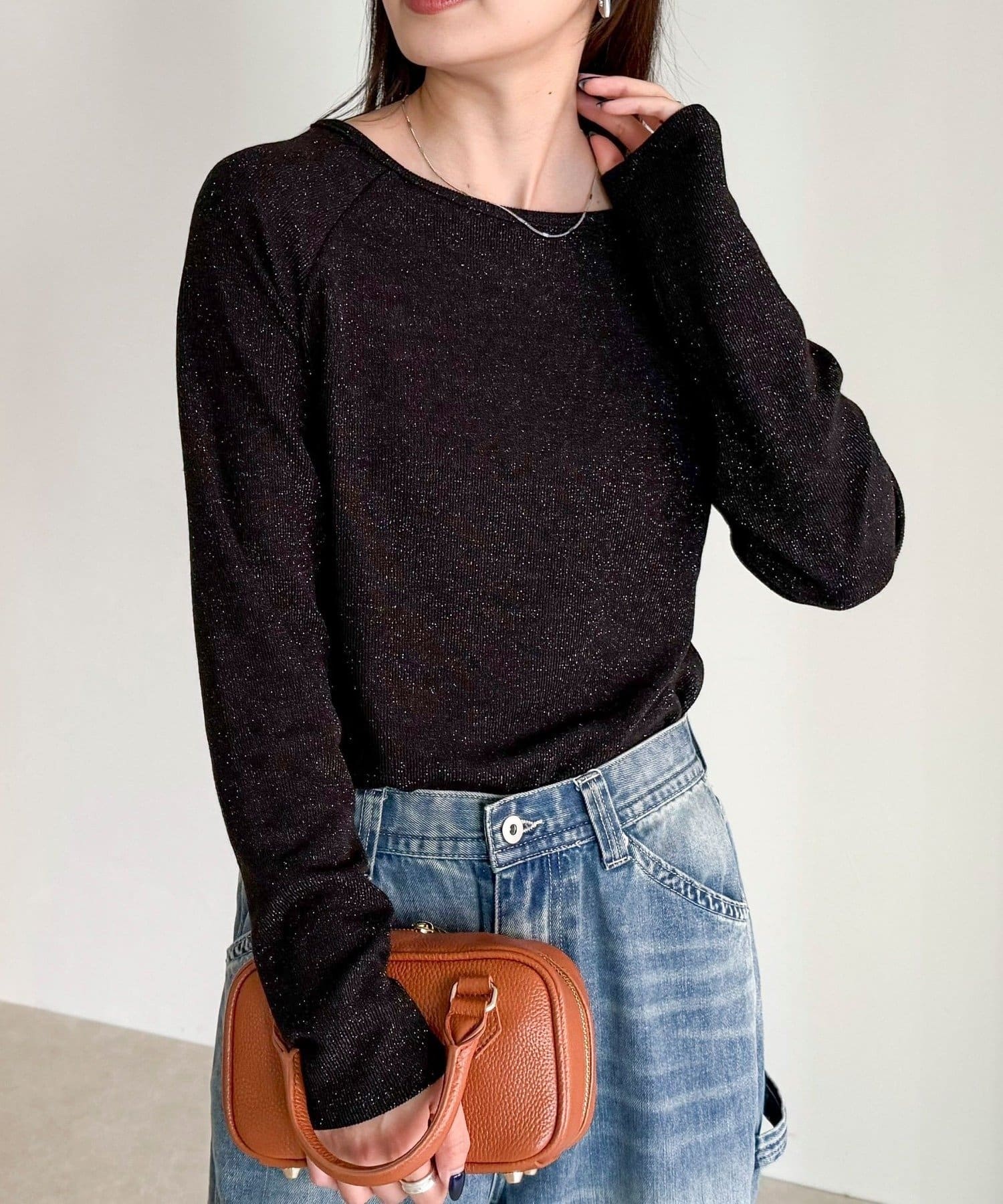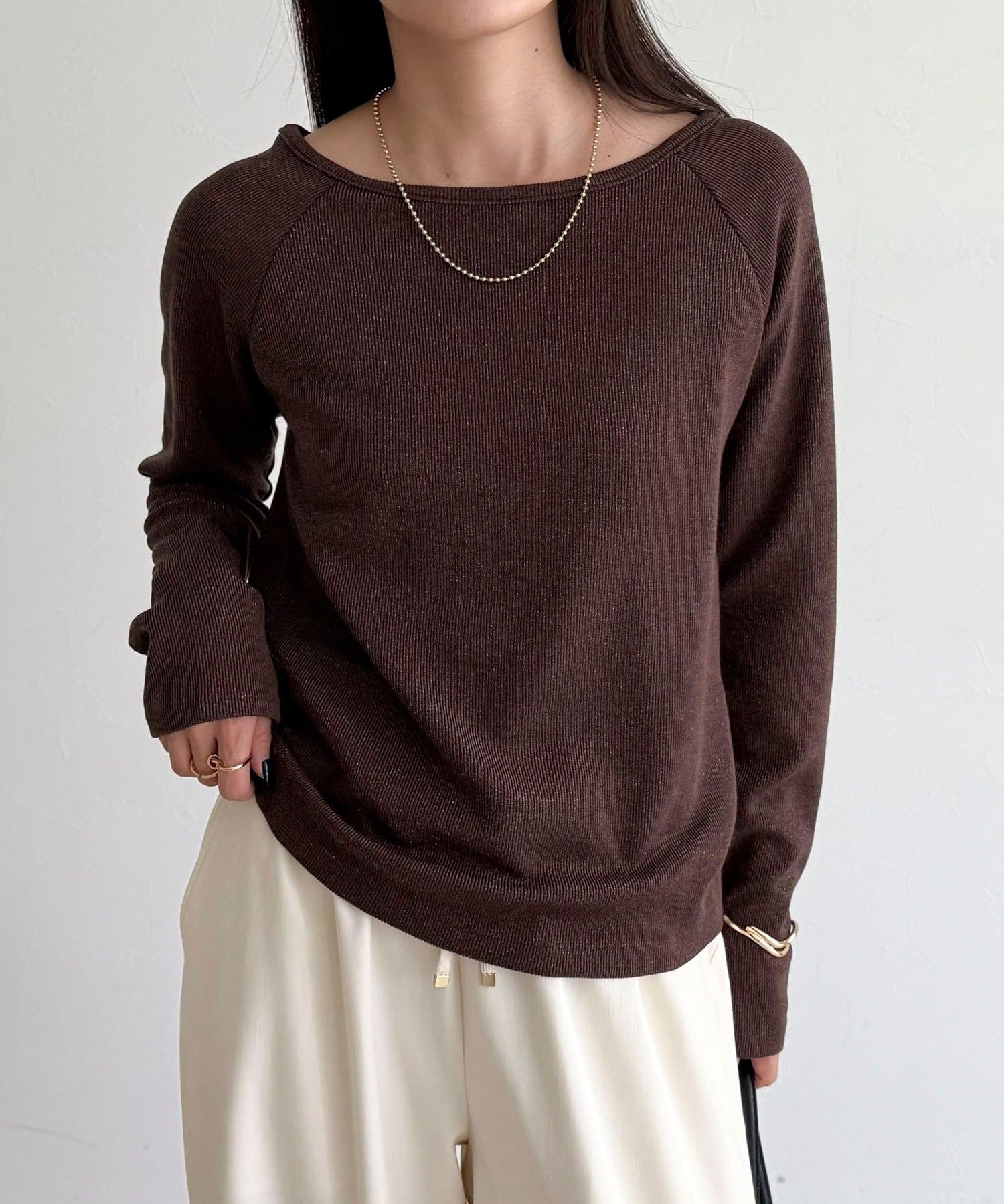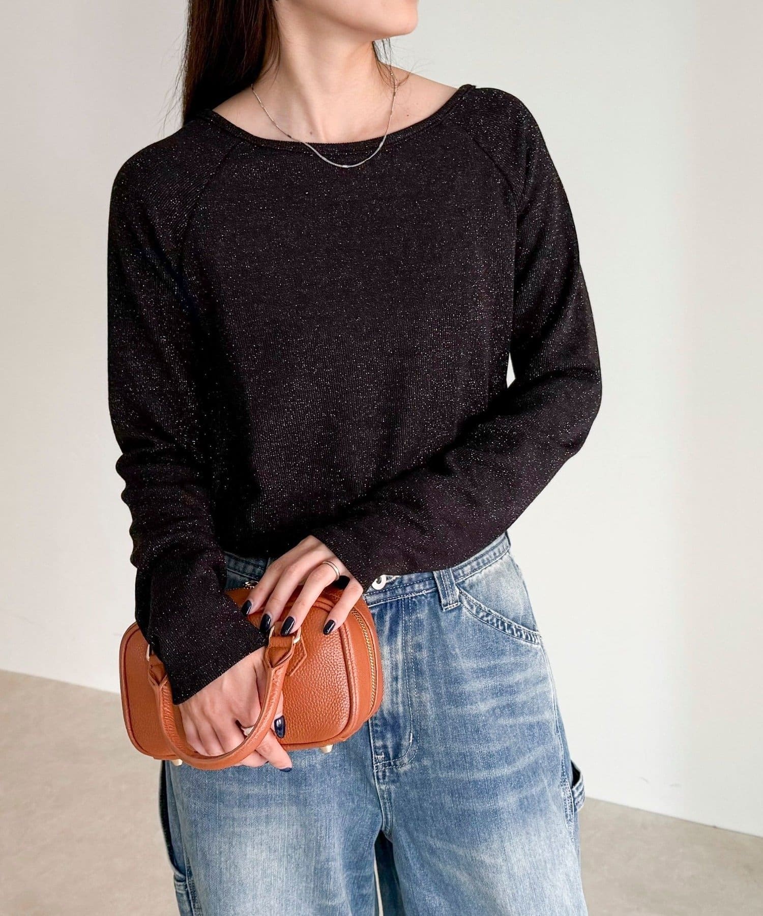 さりげない輝きで華やぐラメテレコボートネックプルオーバー