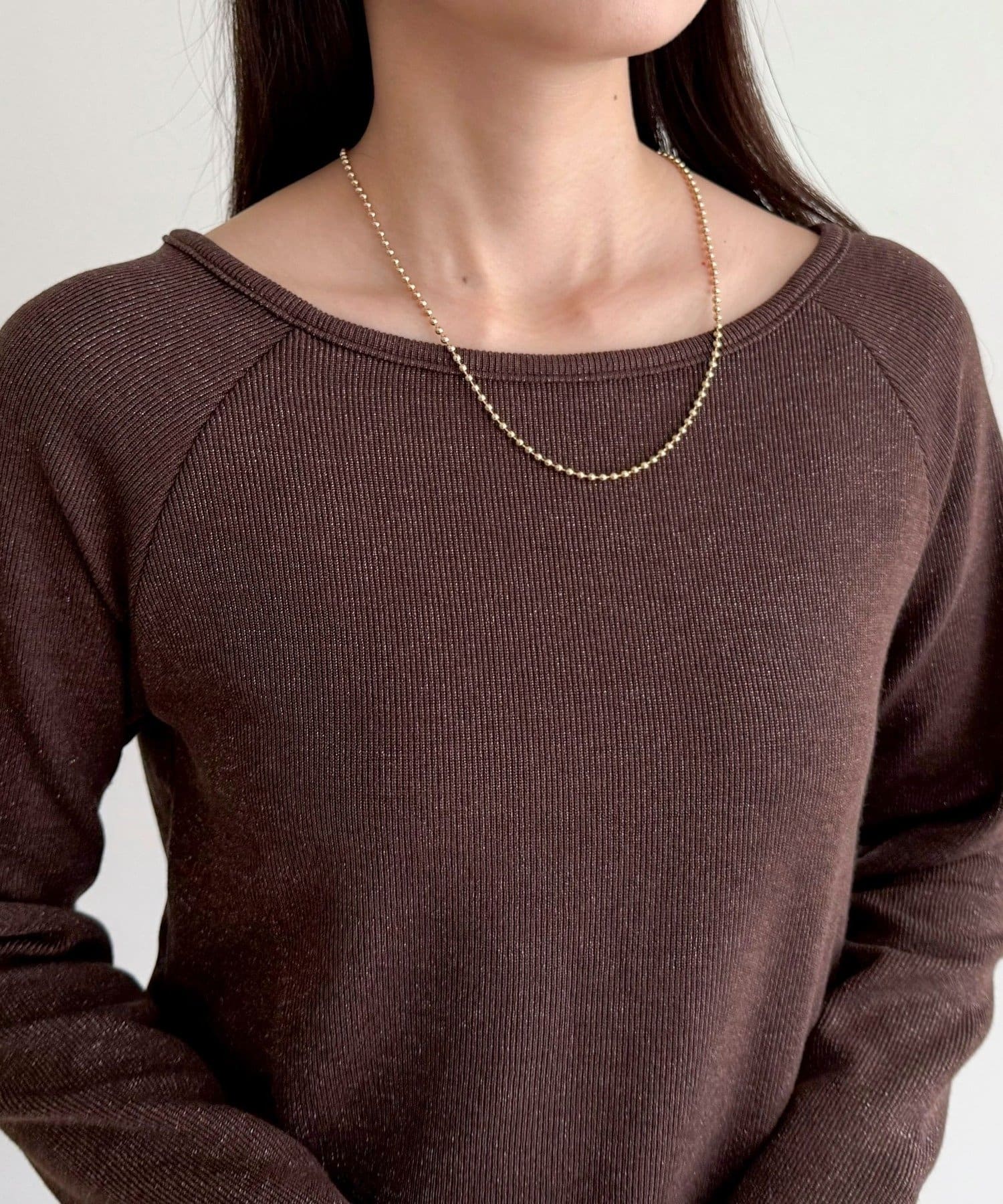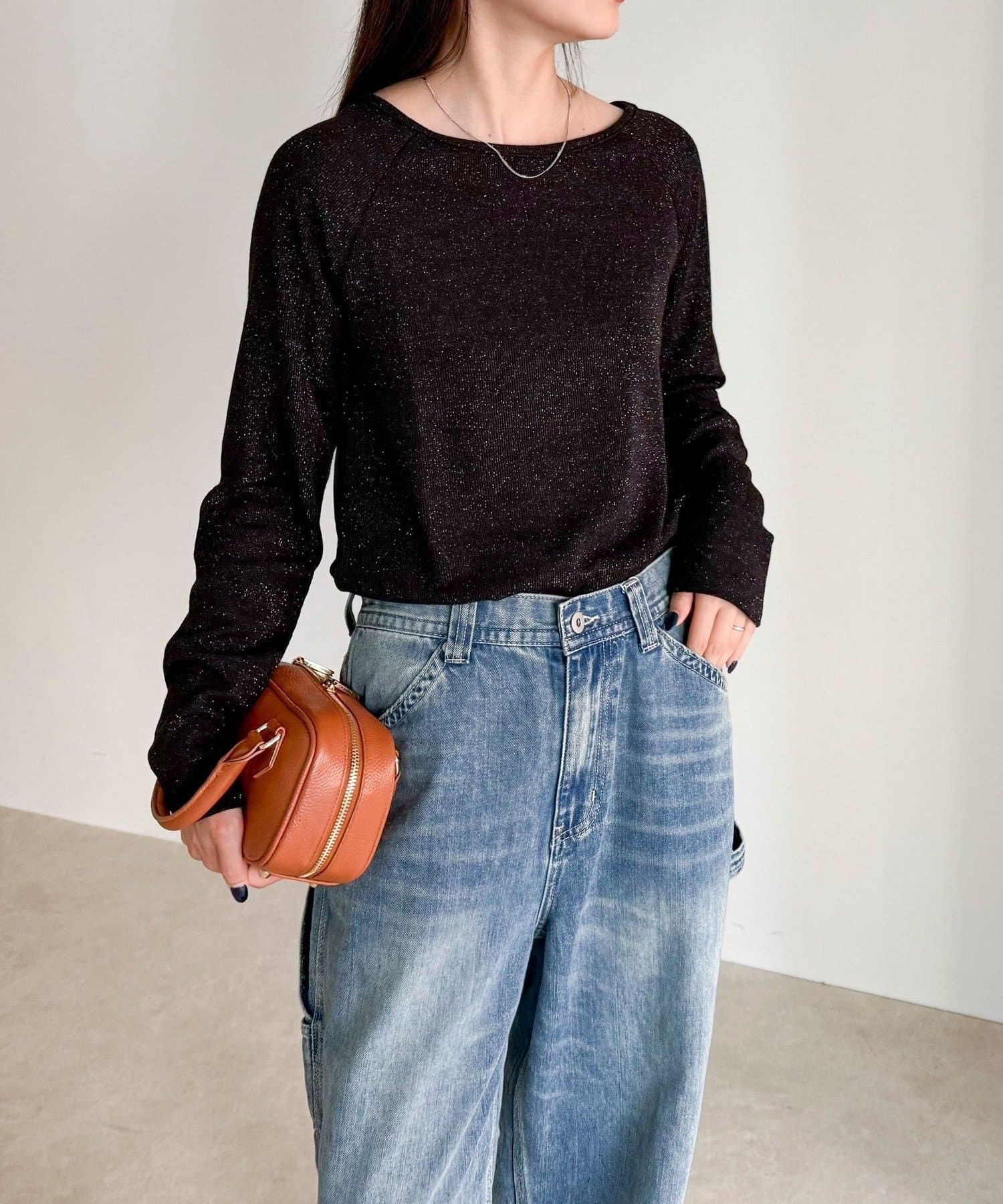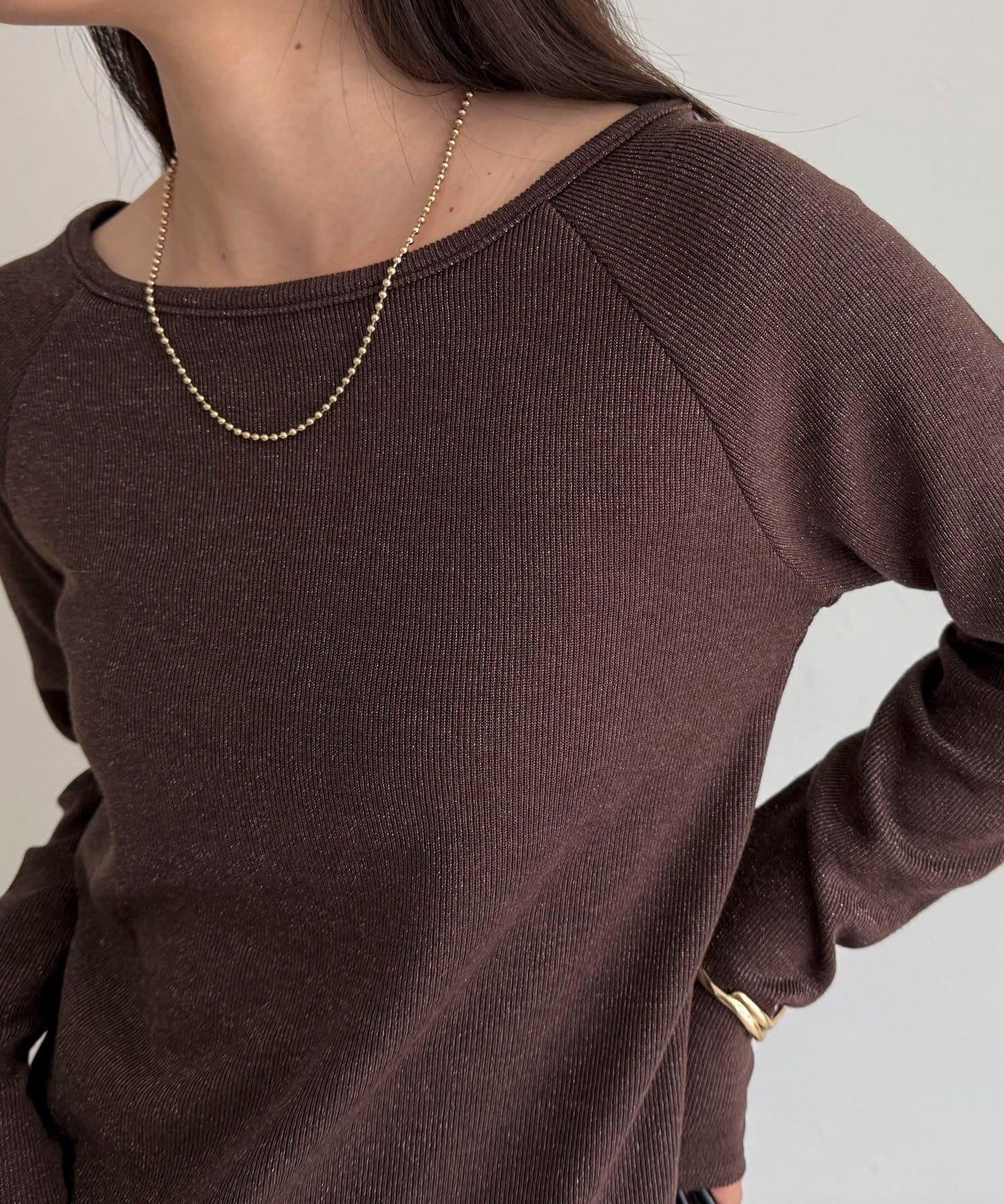 さりげない輝きで華やぐラメテレコボートネックプルオーバー