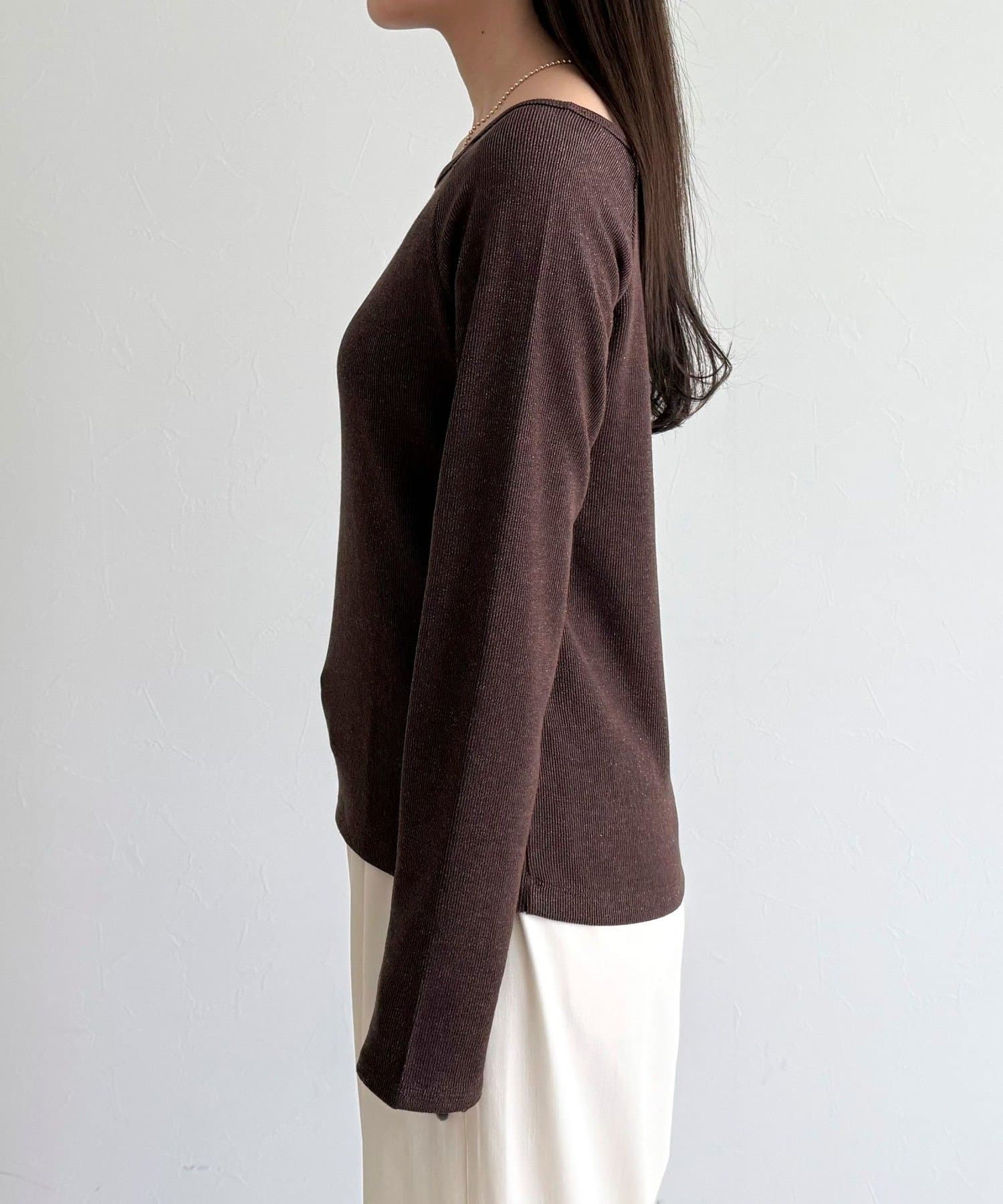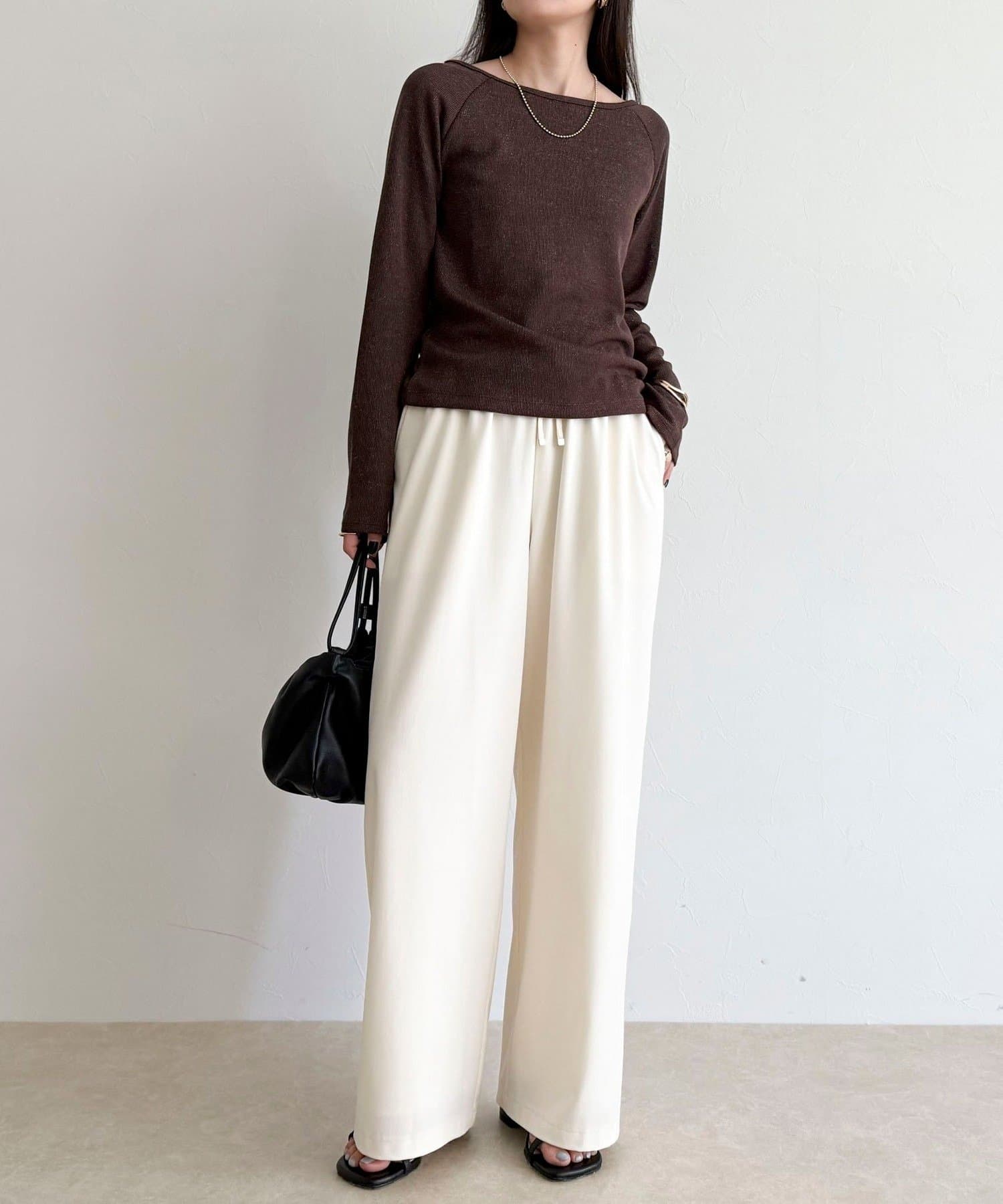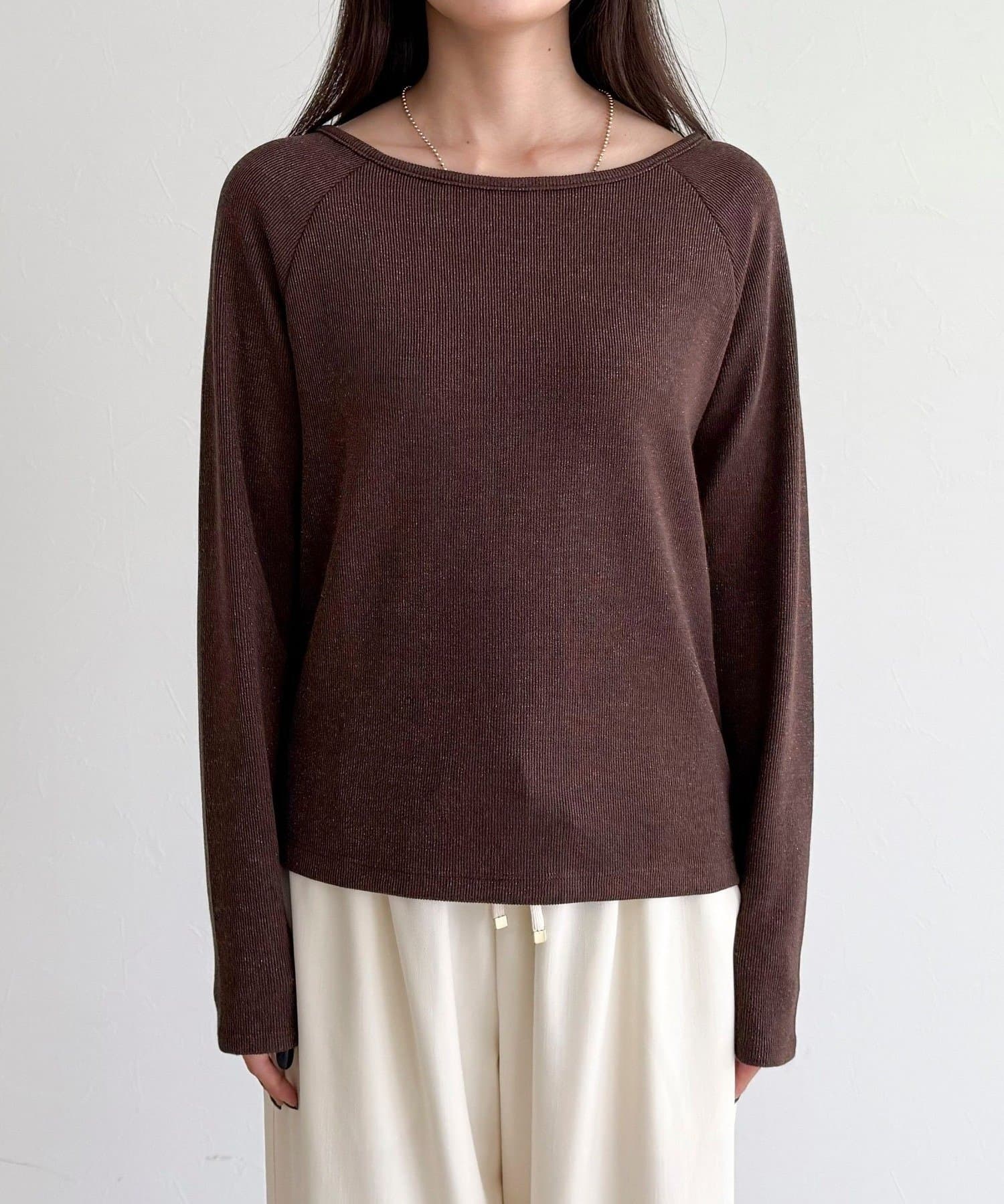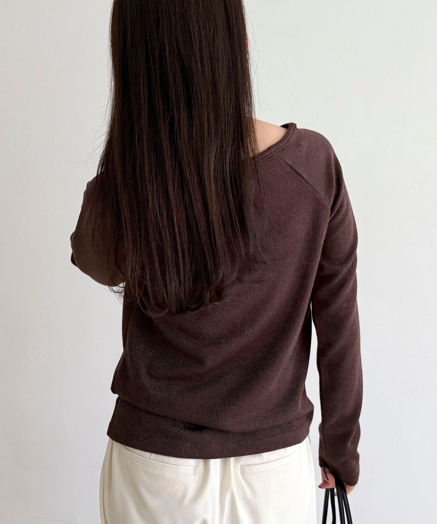 さりげない輝きで華やぐラメテレコボートネックプルオーバー