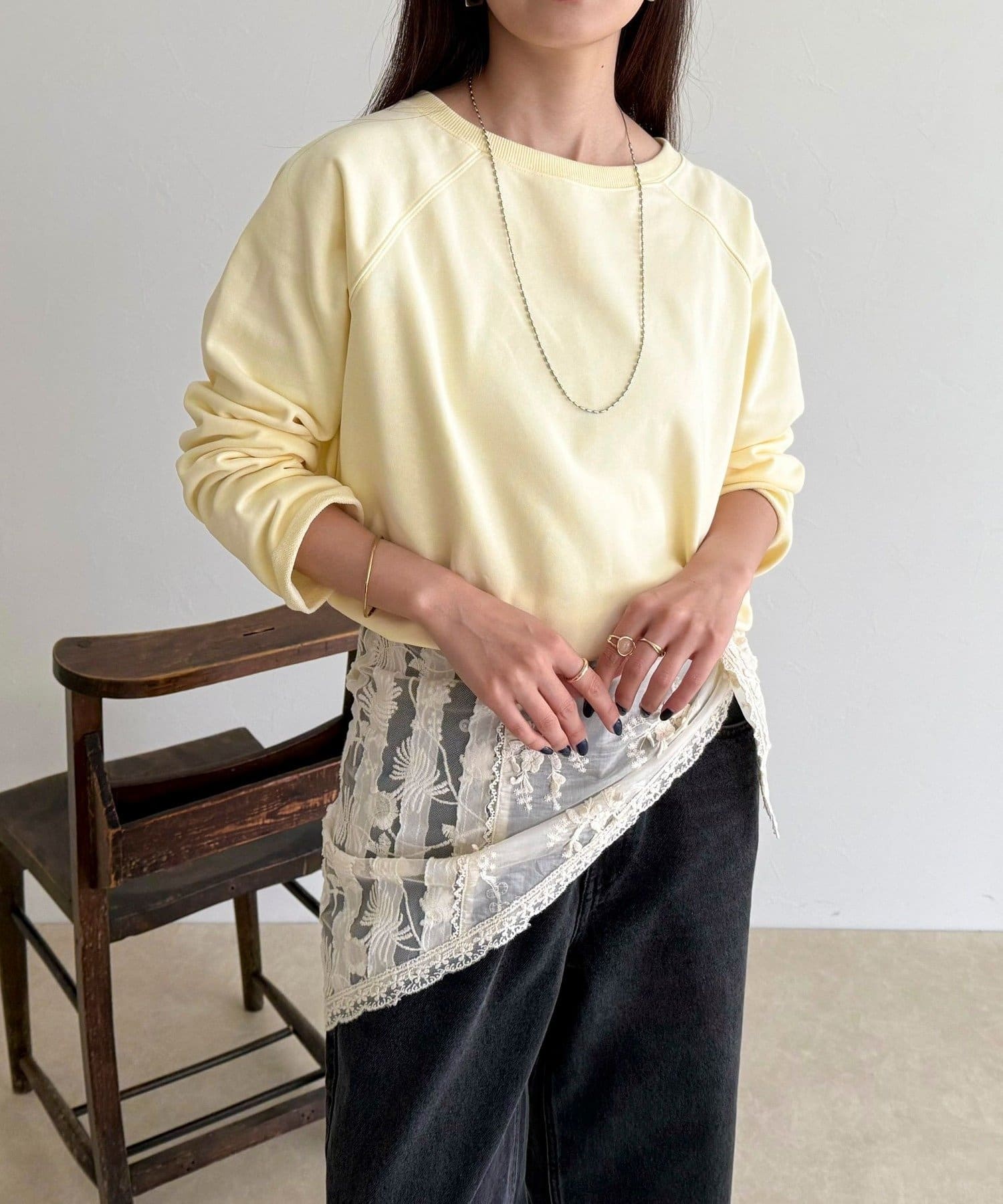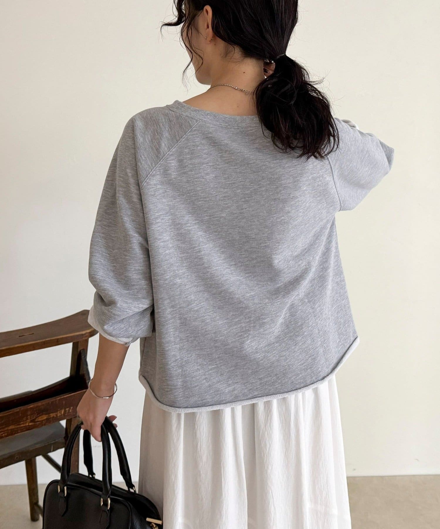 ・程よい厚みのミニ裏毛素材を使用した軽やかなクロップドプルオーバー