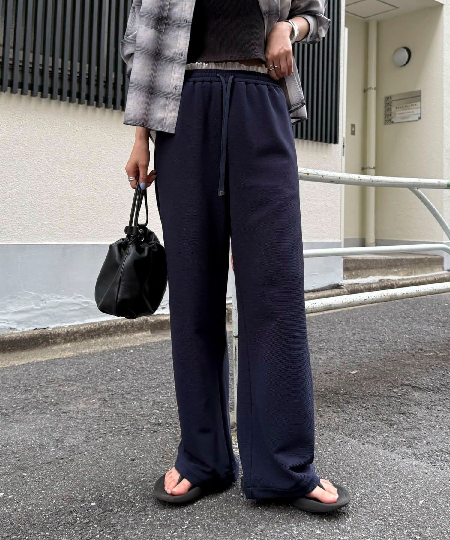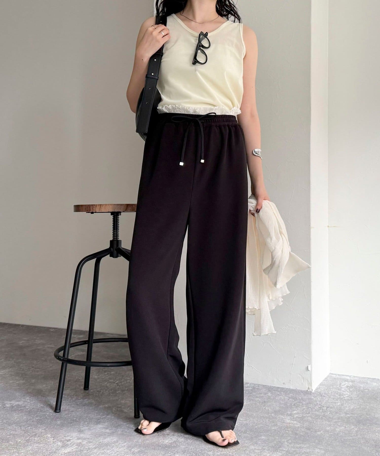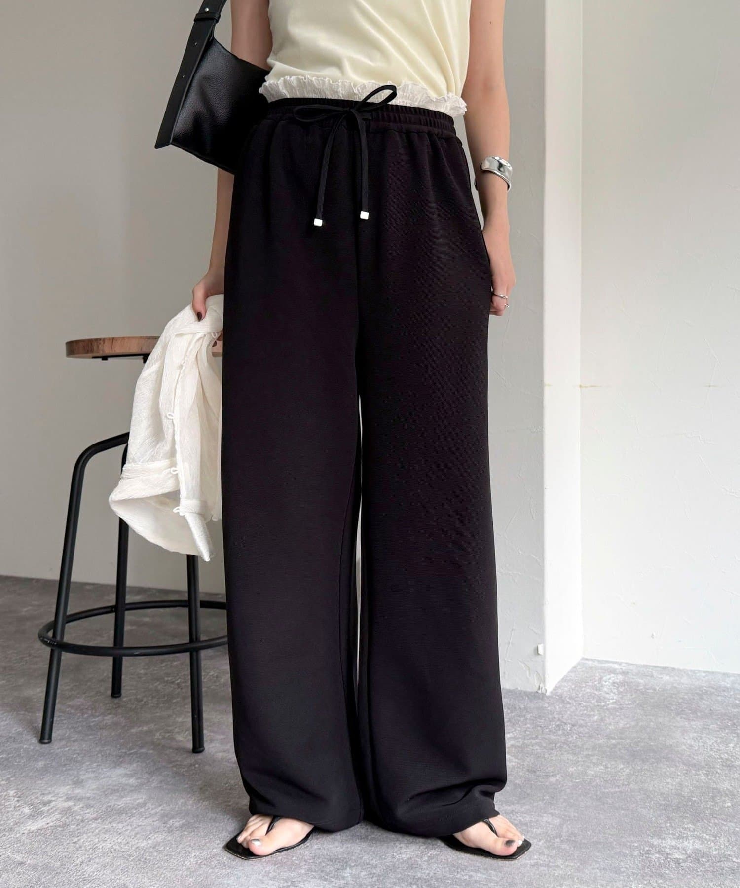 ウエストまわりがポイントのイージーパンツ