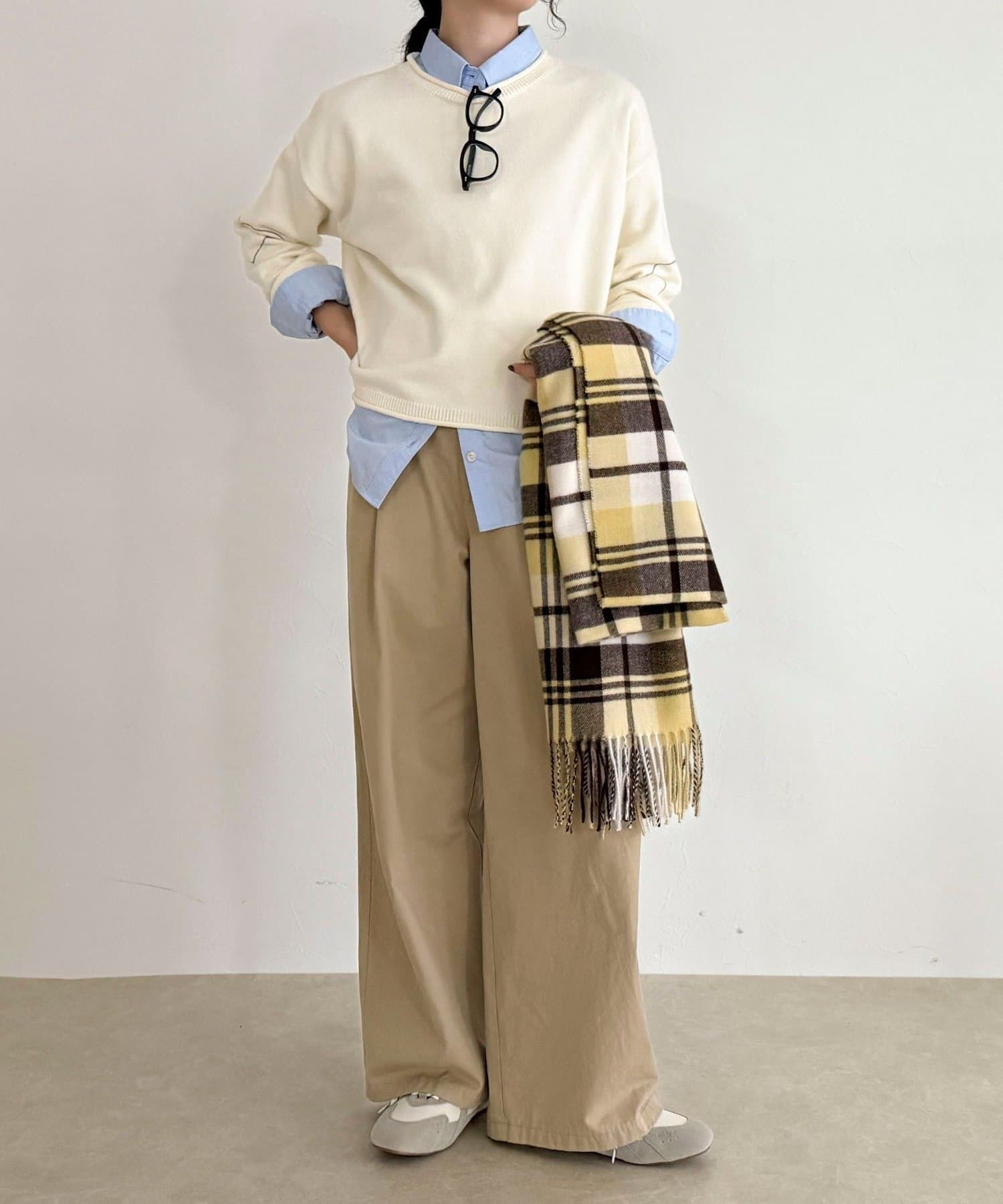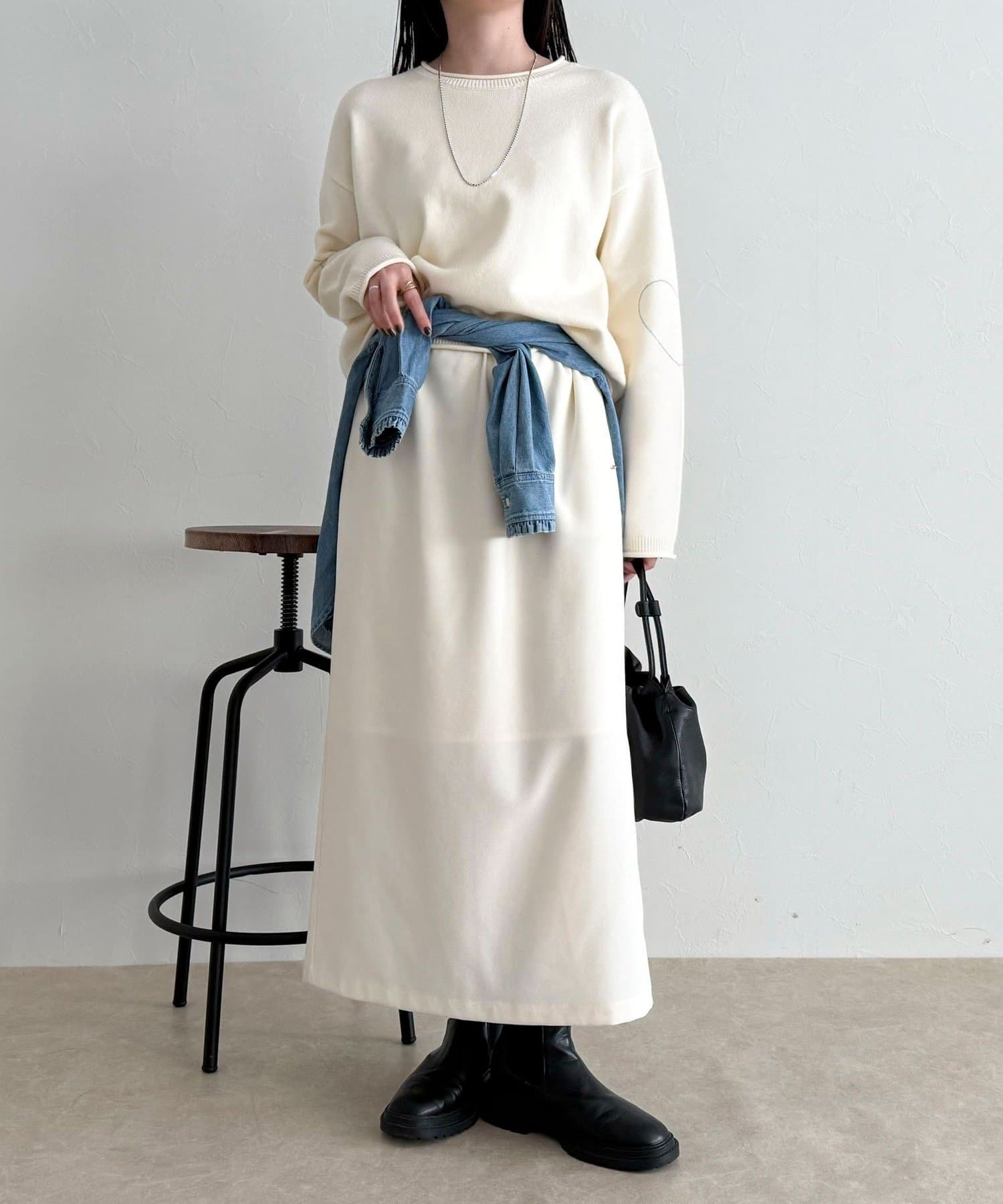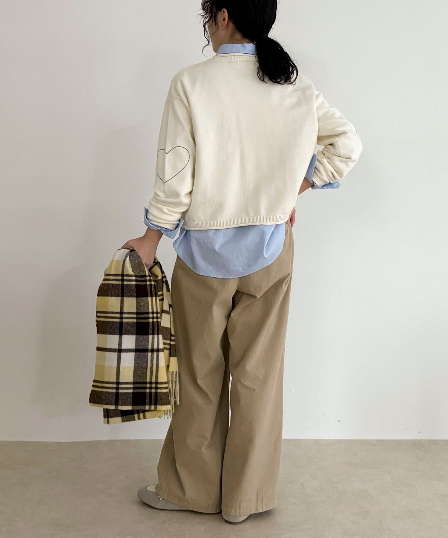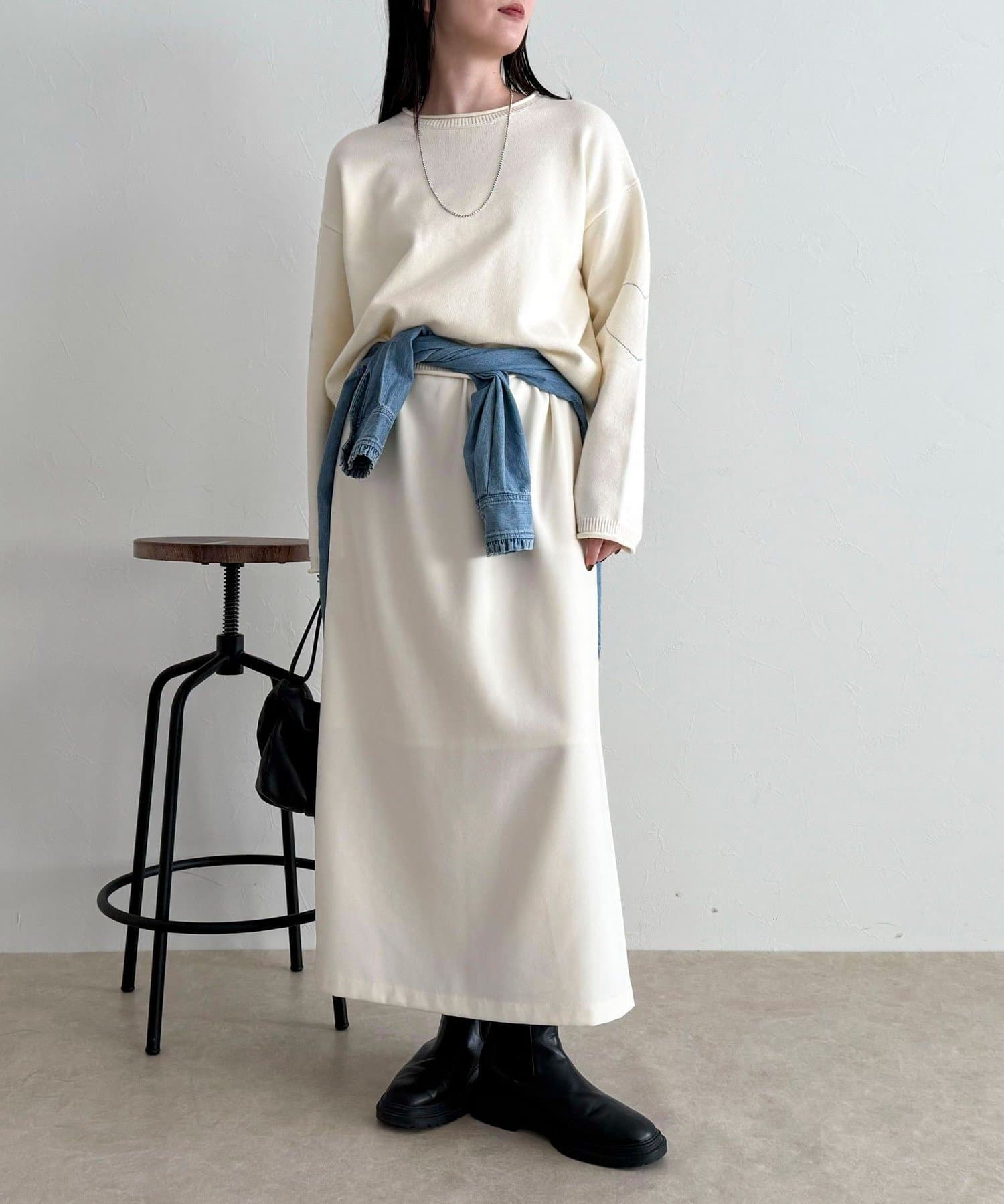 ・丈感はスッキリめで、スカートやパンツなど幅広いボトムスと合わせやすい