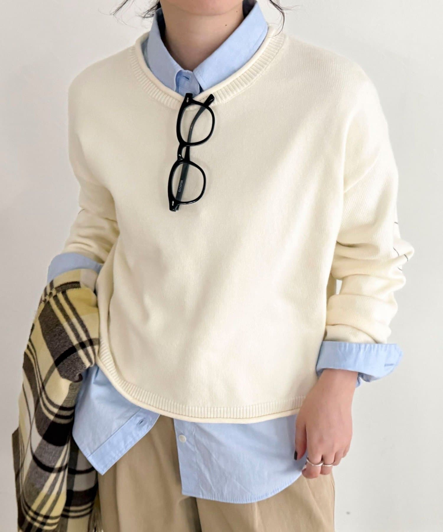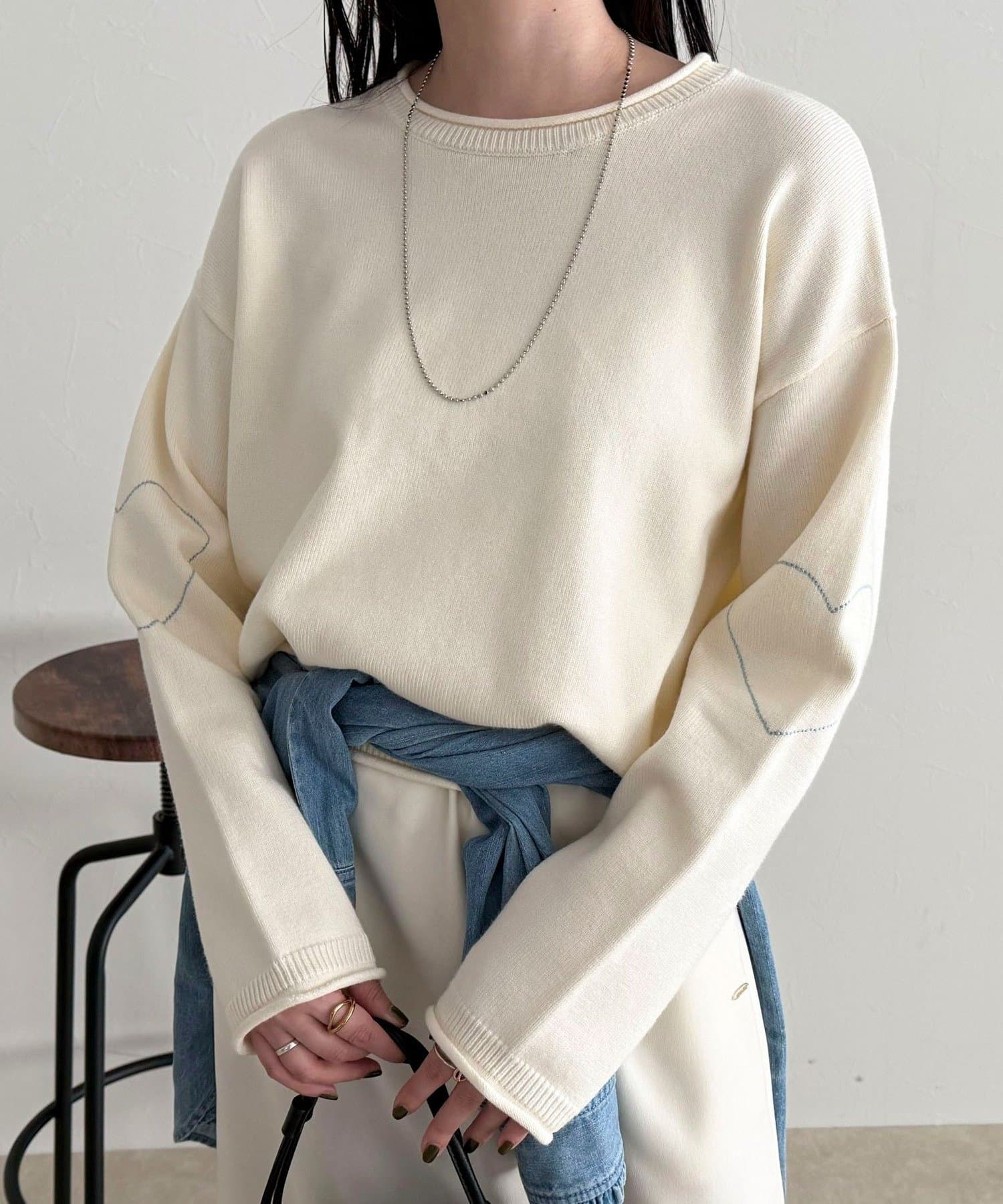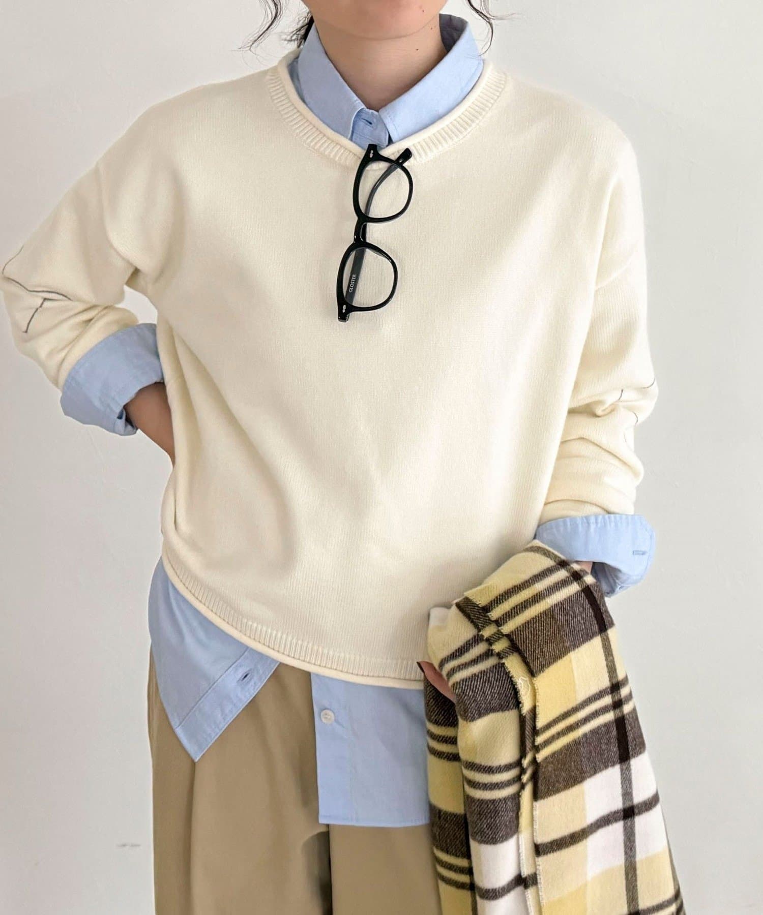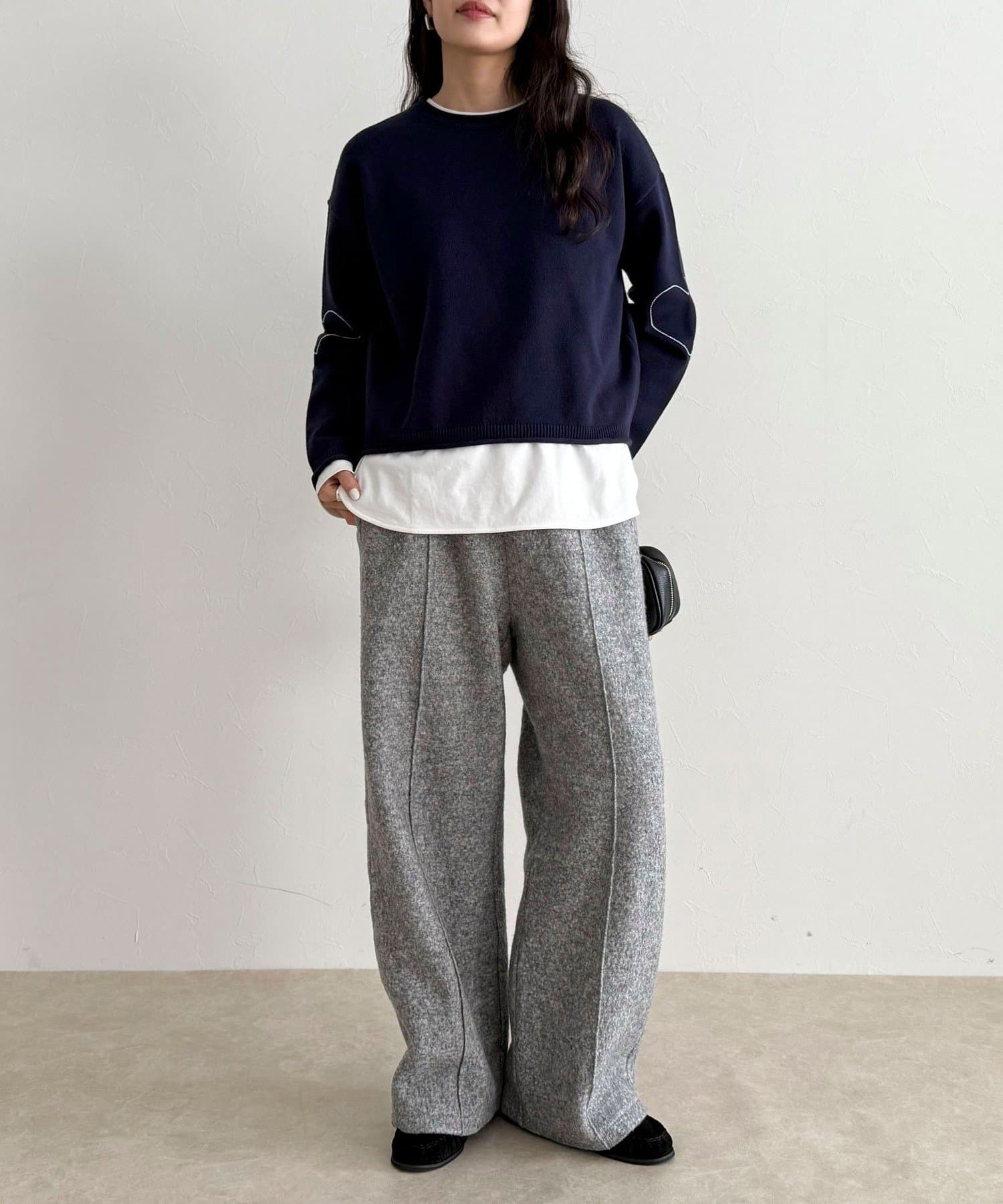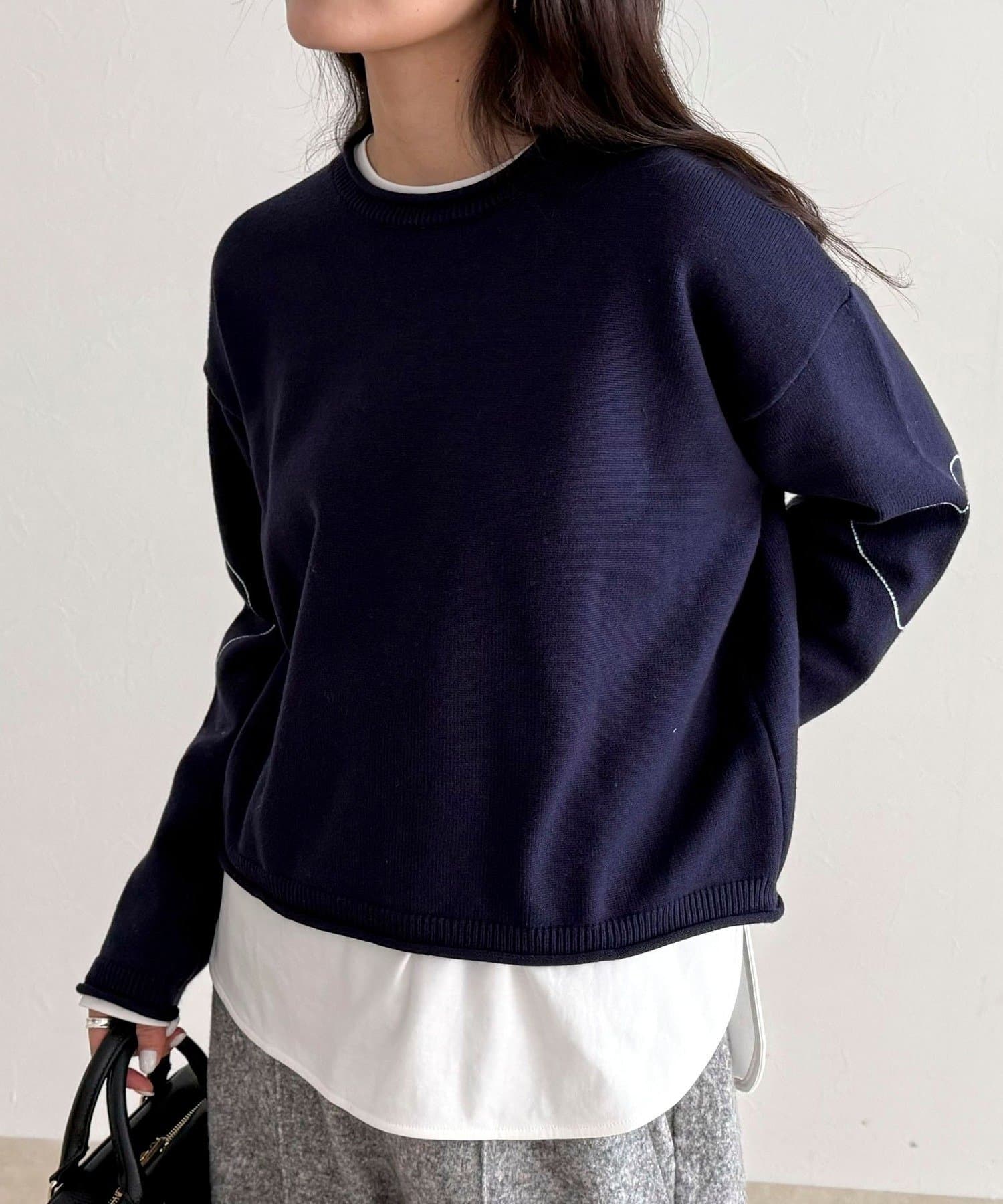 ・もちっとした素材感で厚すぎず、早めの時期から着られるニットプルオーバー