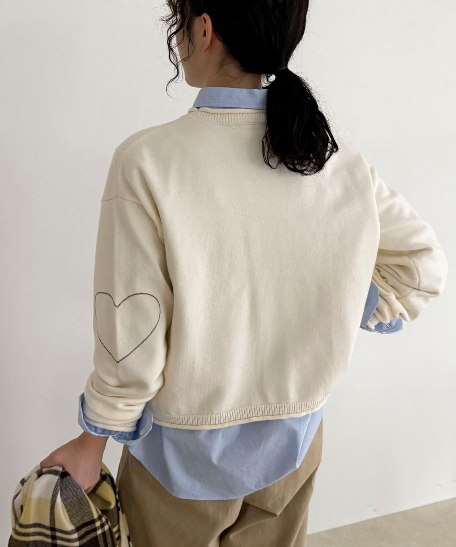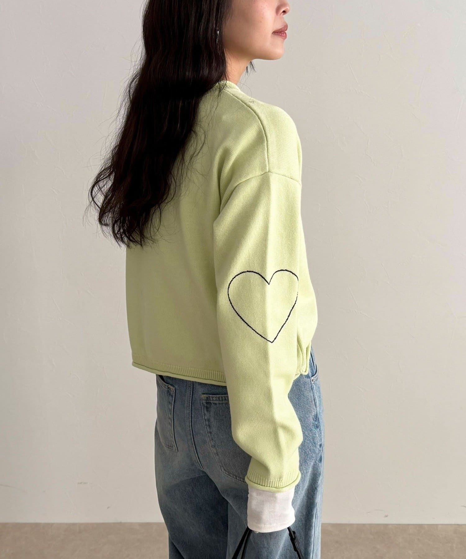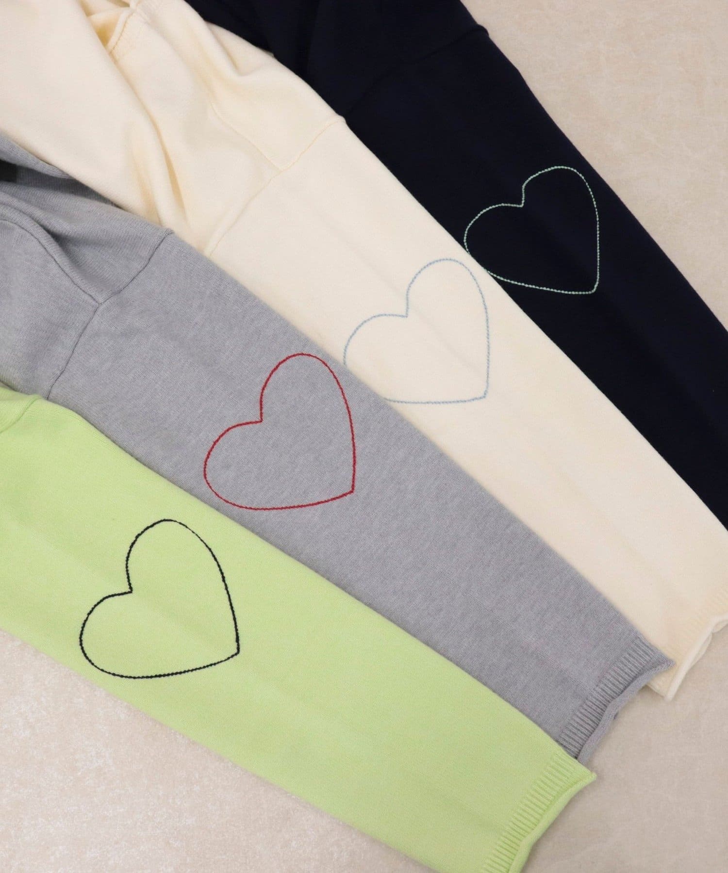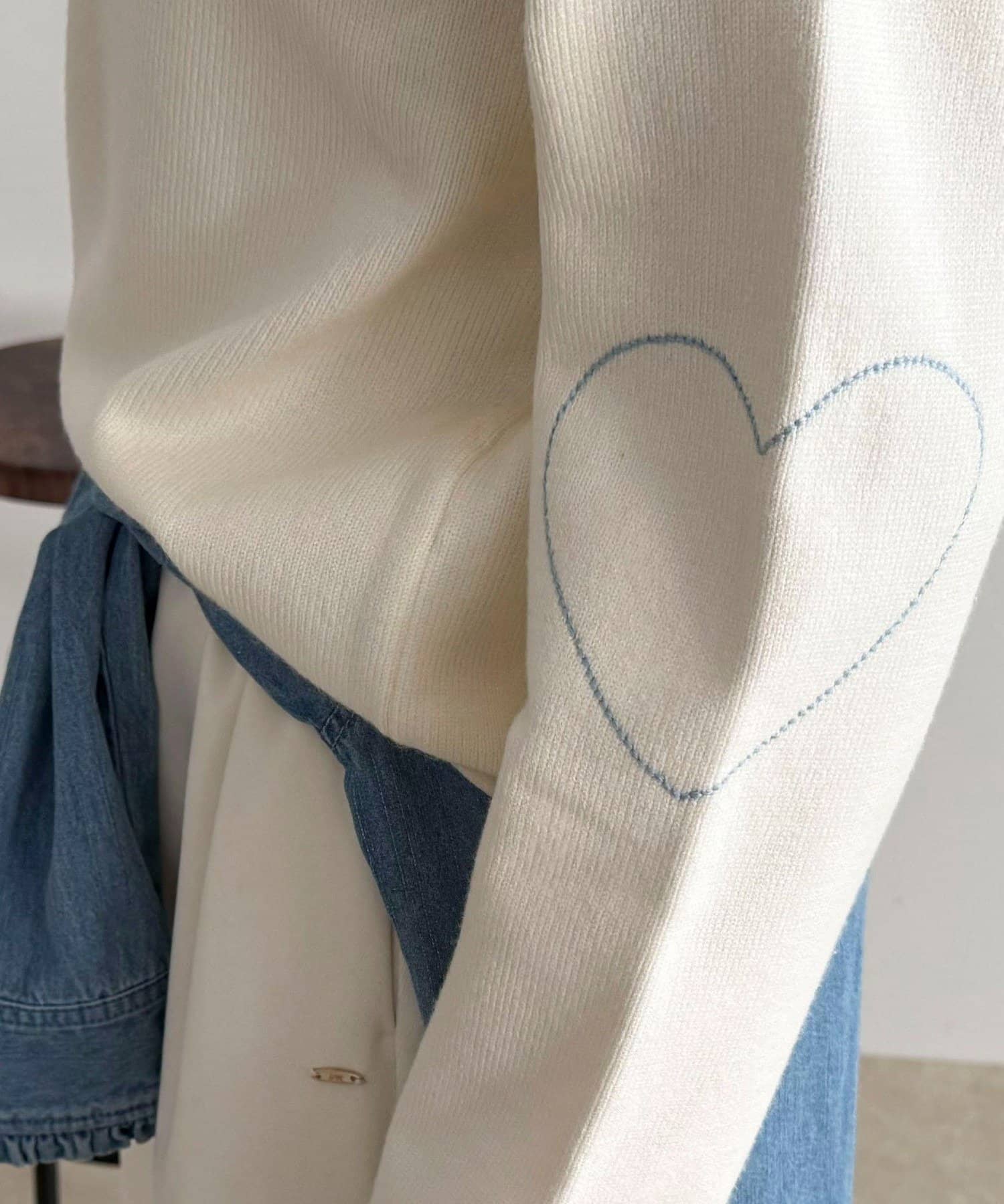 ・袖に入った配色ハートステッチがさりげないアクセント