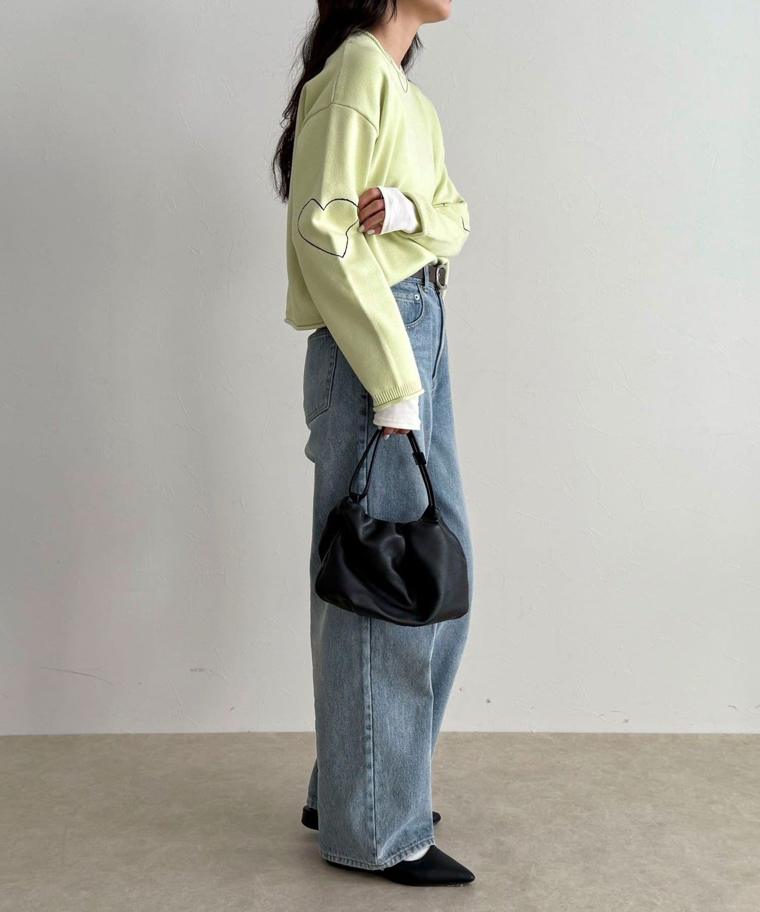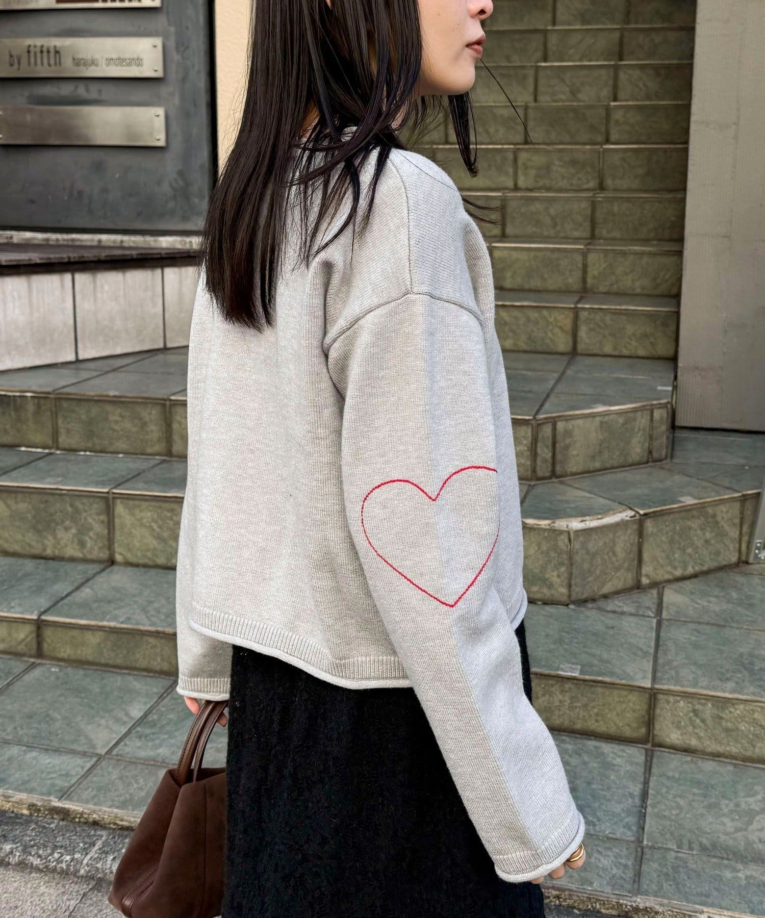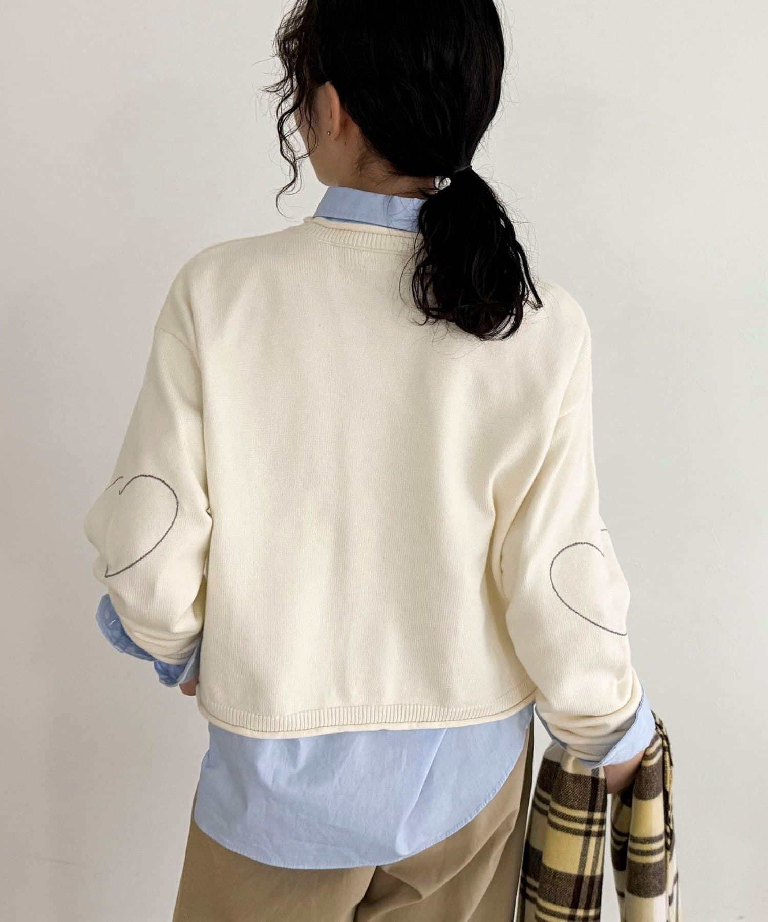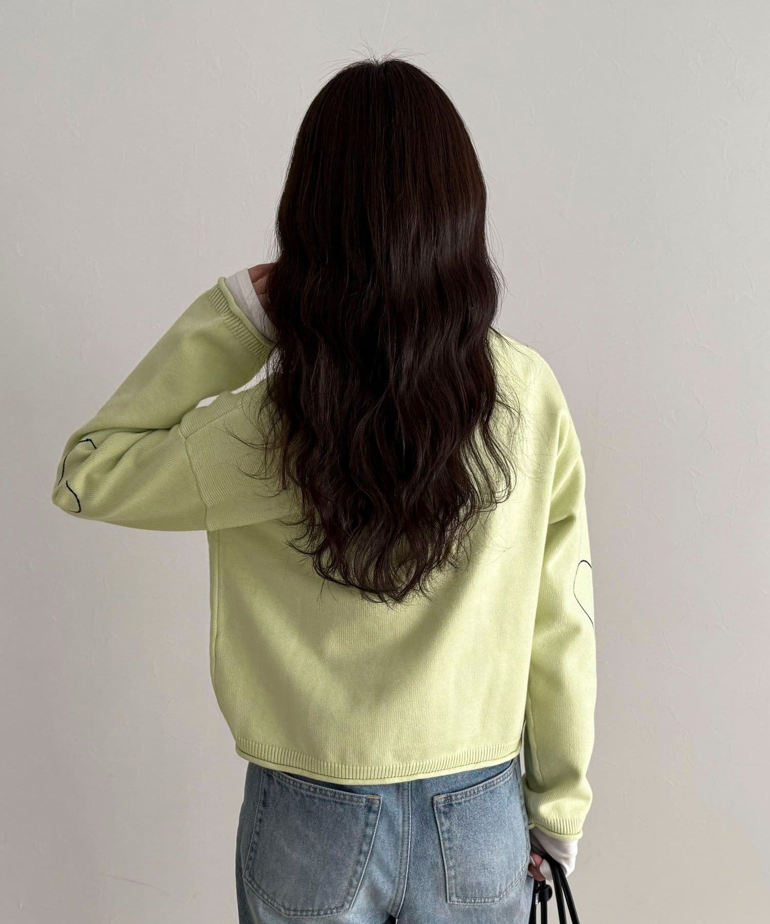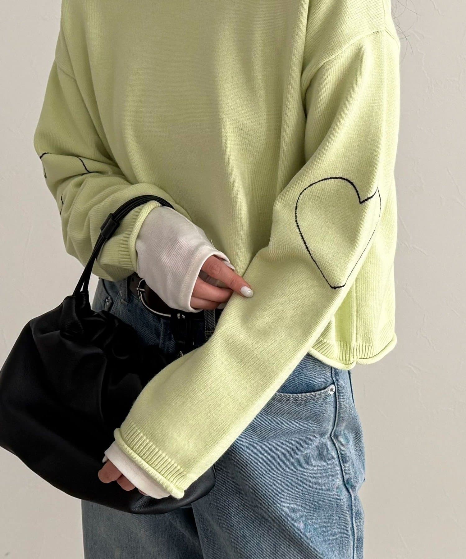 ・袖に入った配色ハートステッチがさりげないアクセント