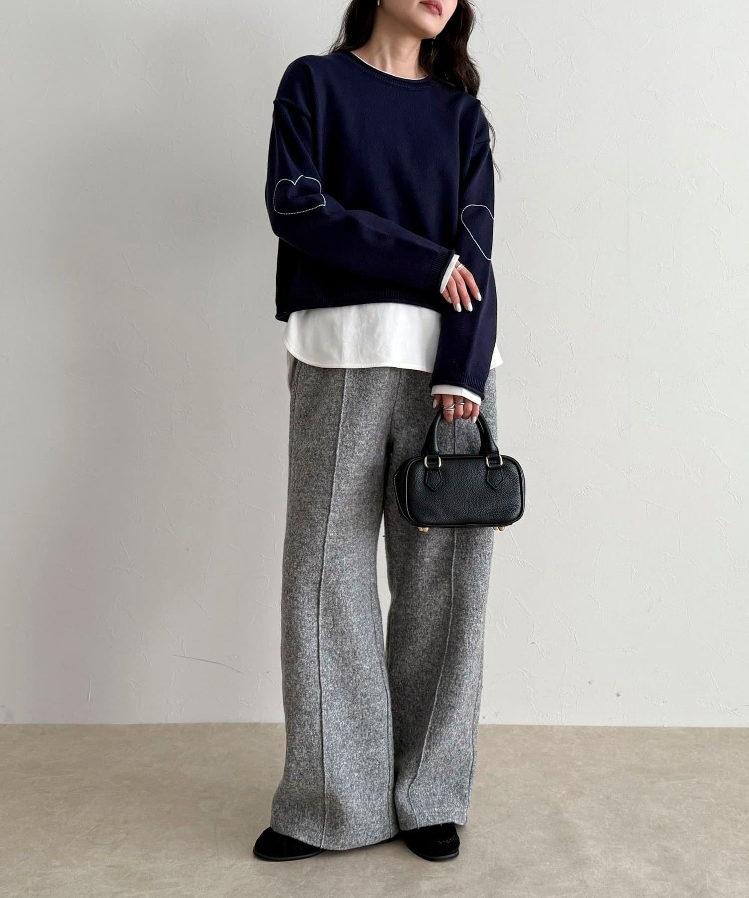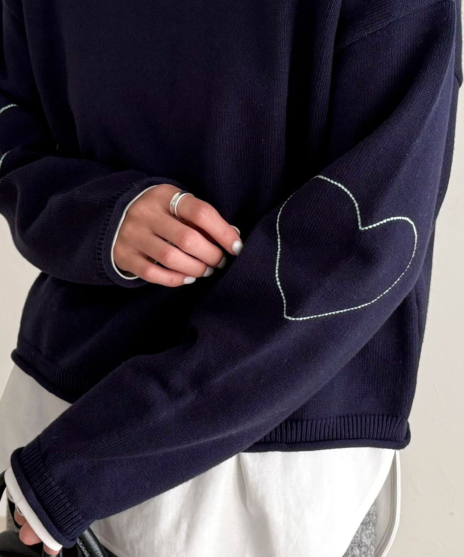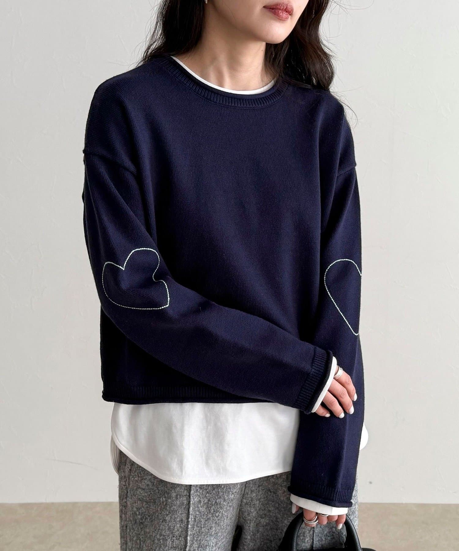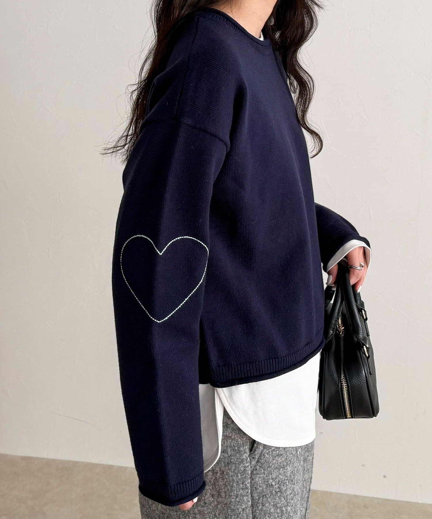 大人可愛いハートステッチニットプルオーバー