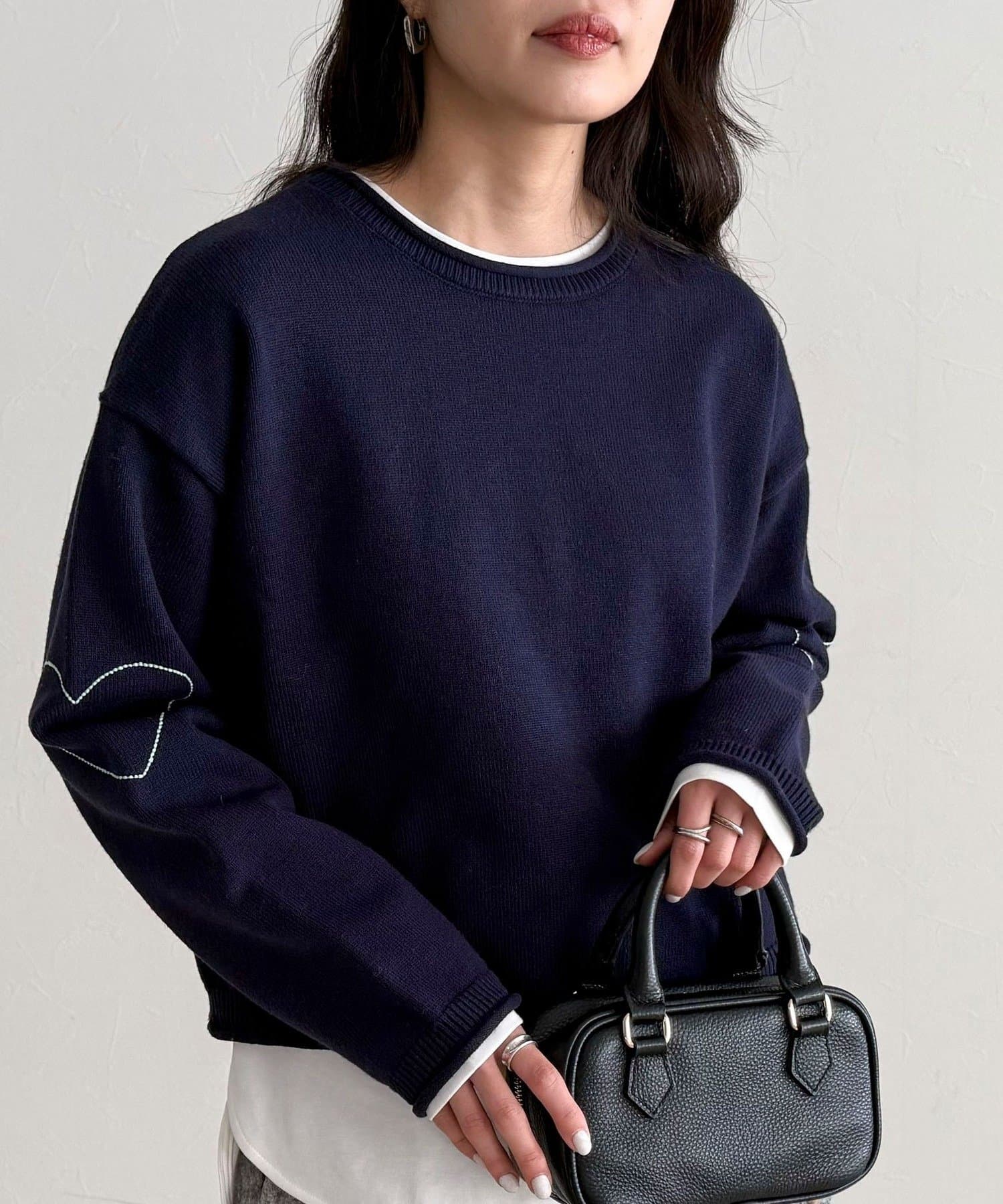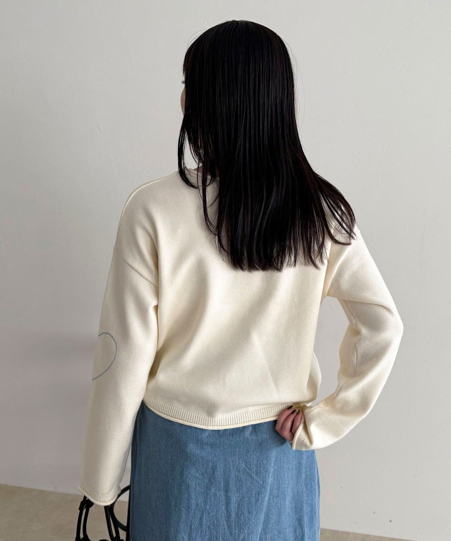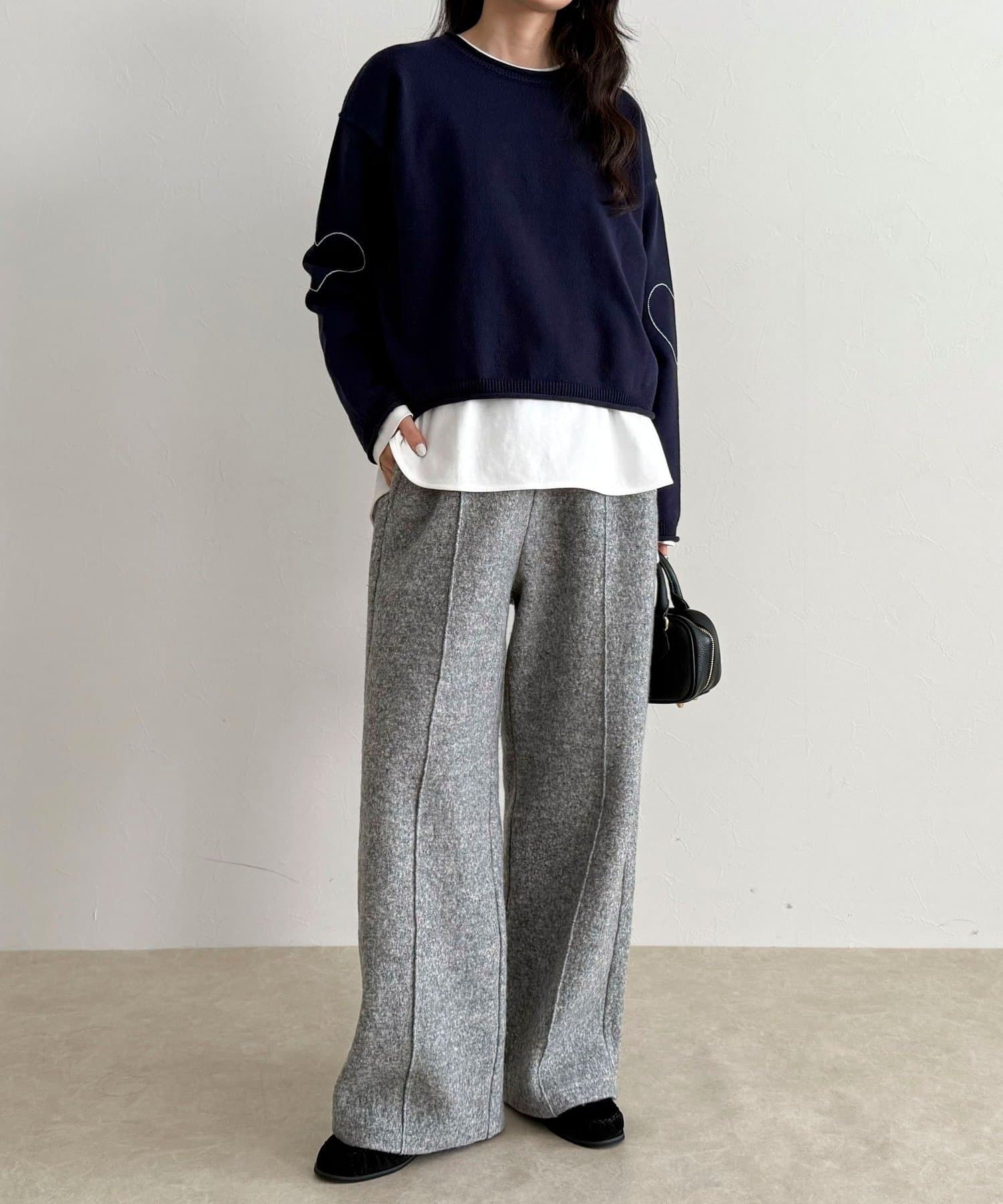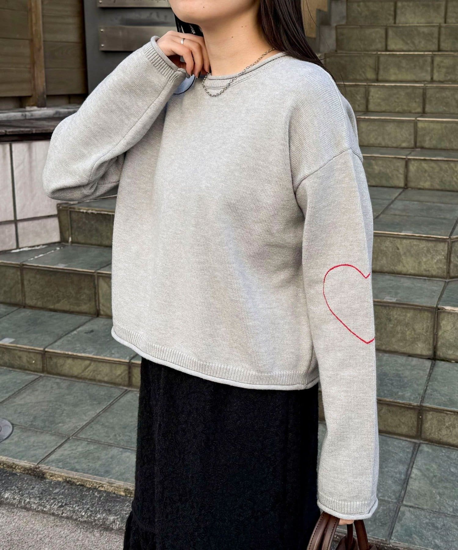 大人可愛いハートステッチニットプルオーバー