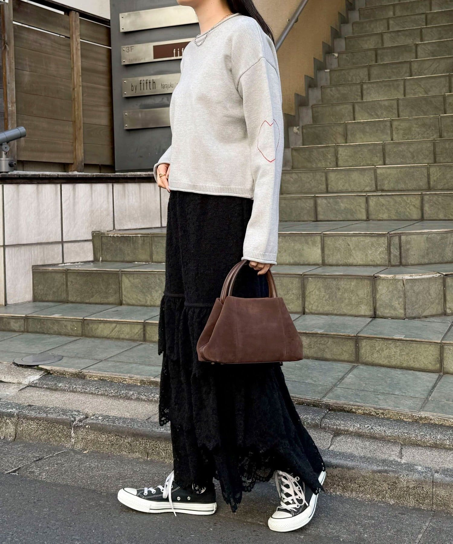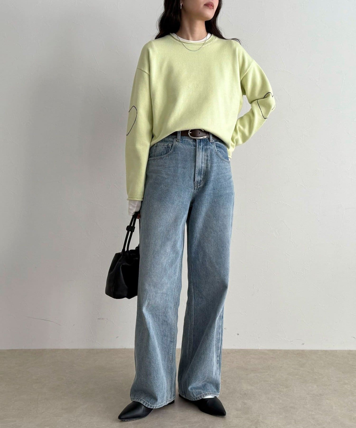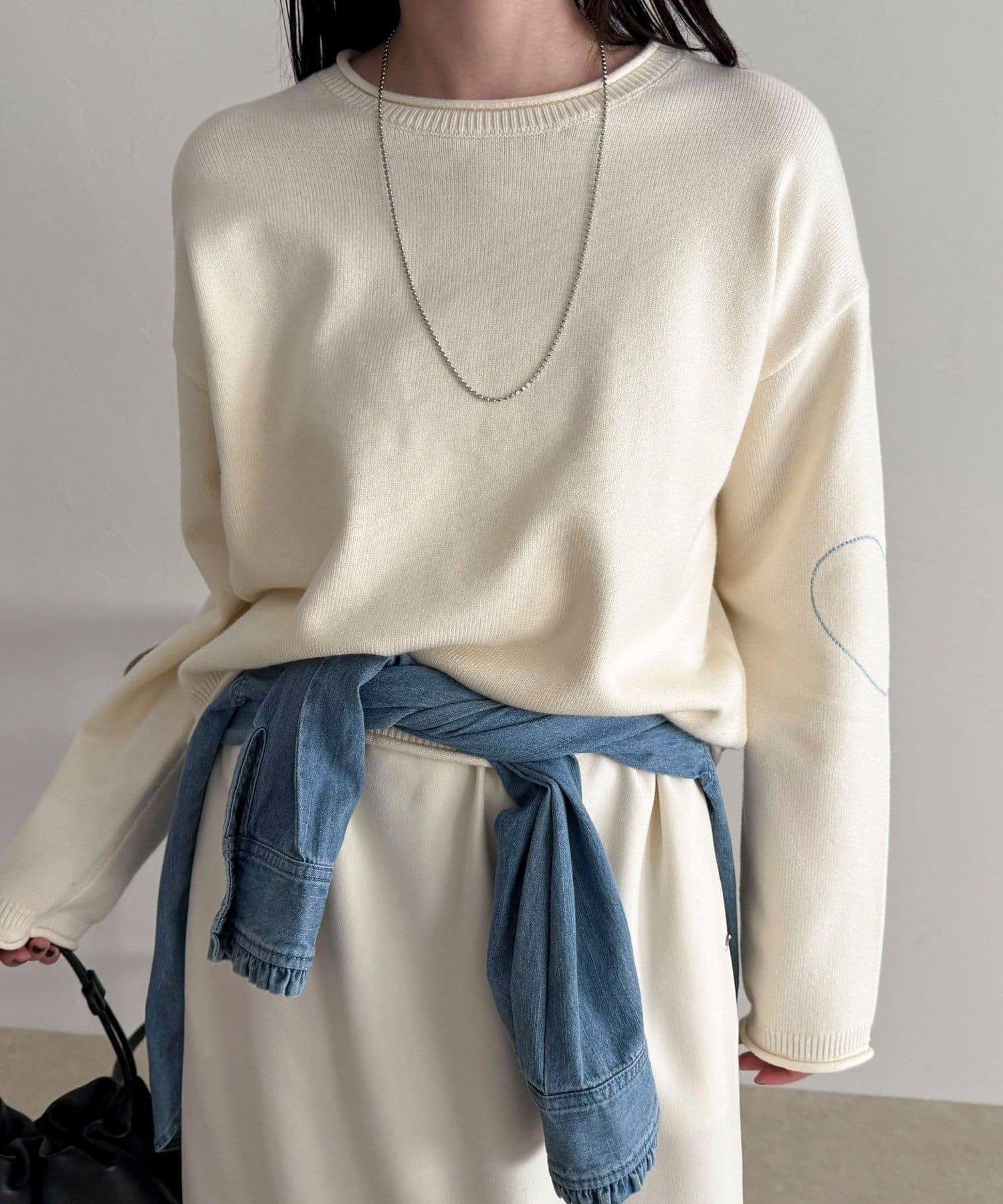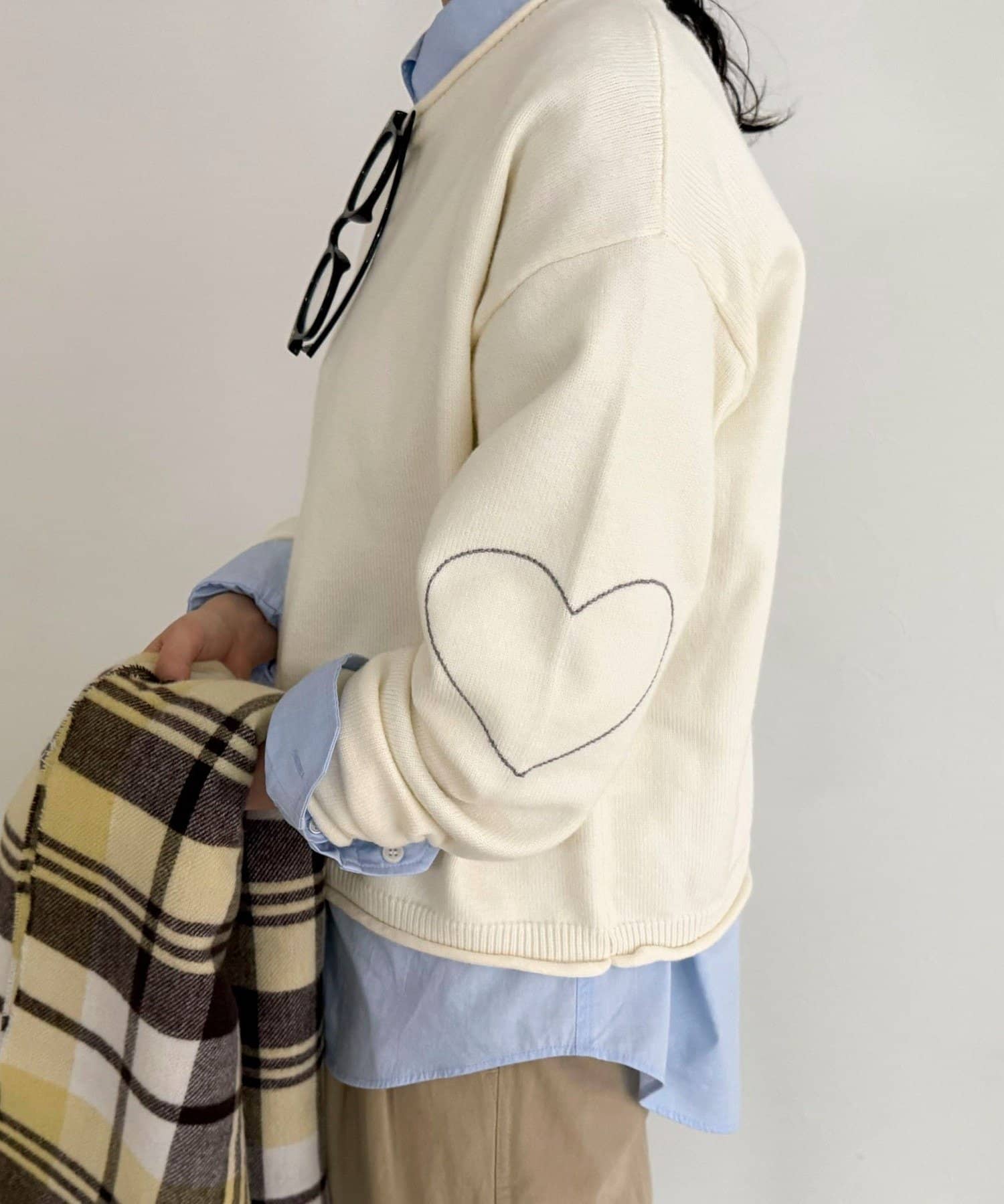 大人可愛いハートステッチニットプルオーバー
