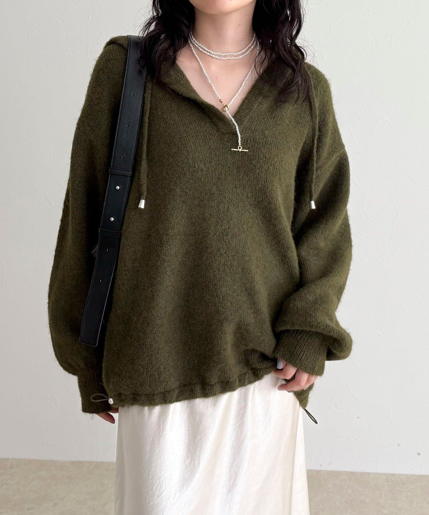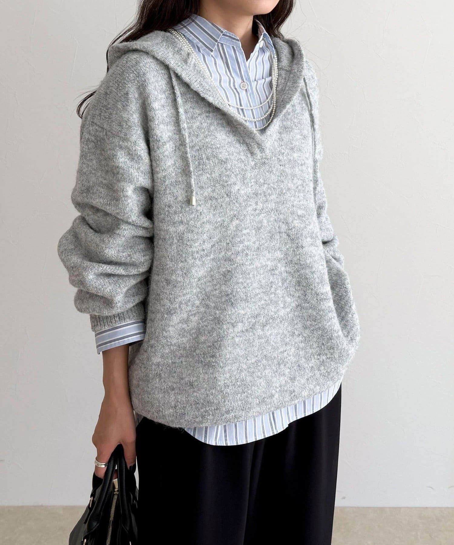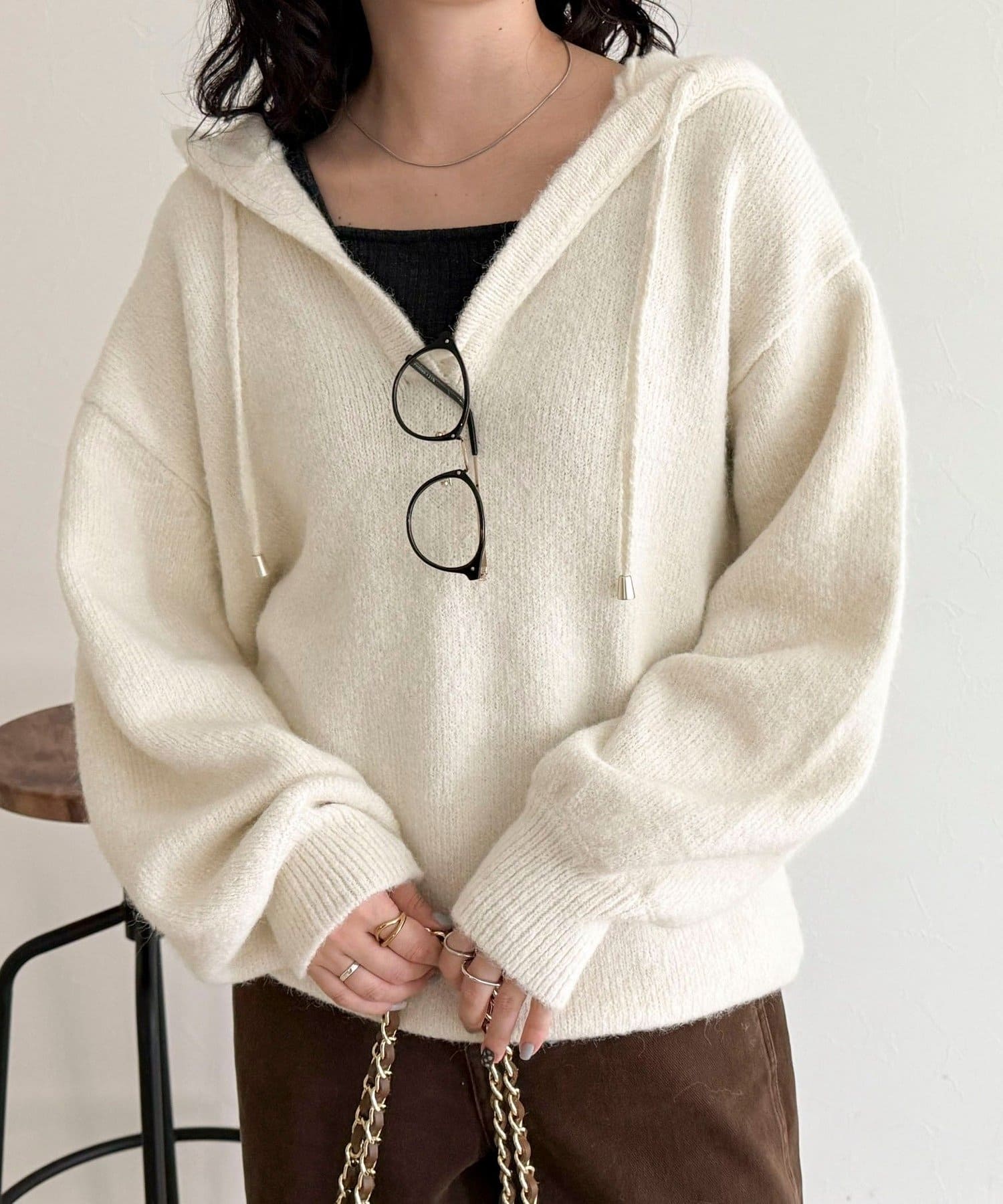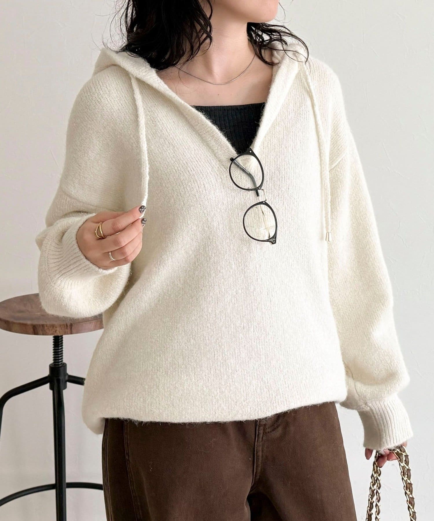 ゆるっとこなれる、着回し自在なフード付きニットプルオーバー