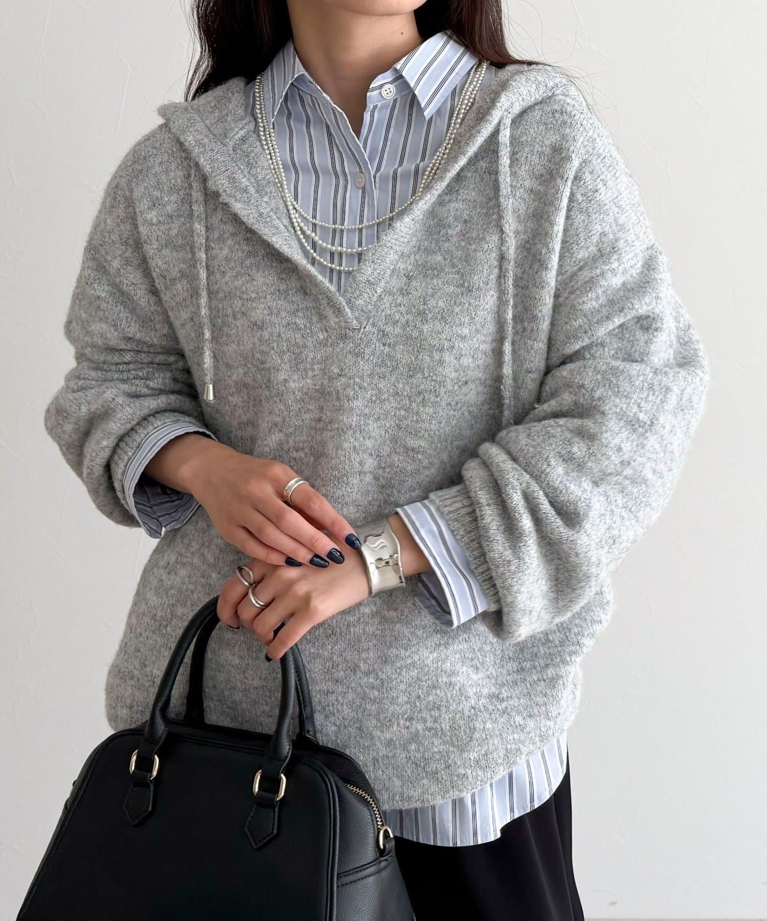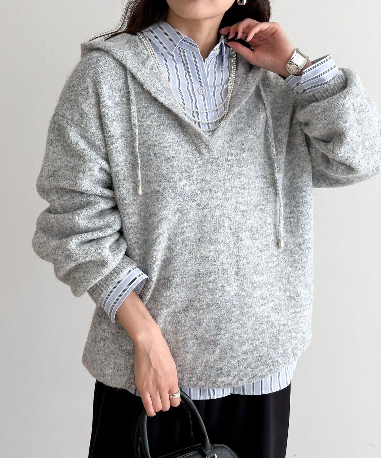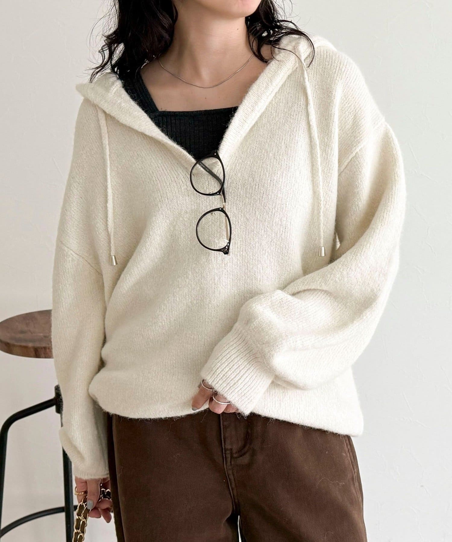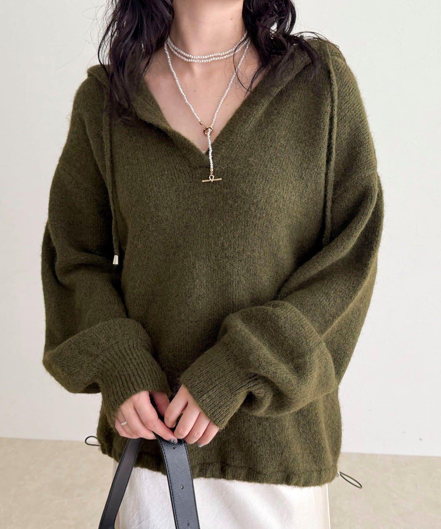 ゆるっとこなれる、着回し自在なフード付きニットプルオーバー