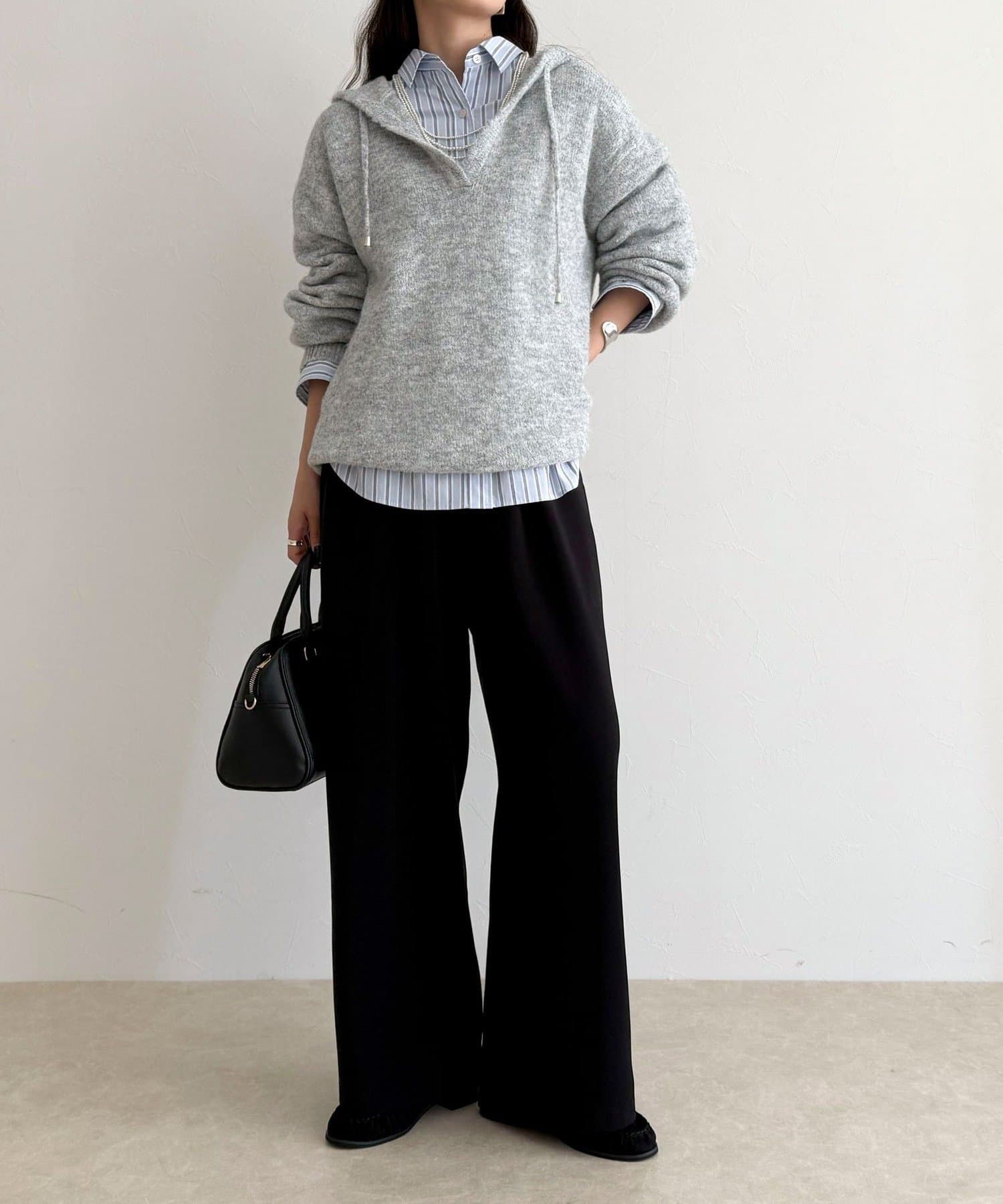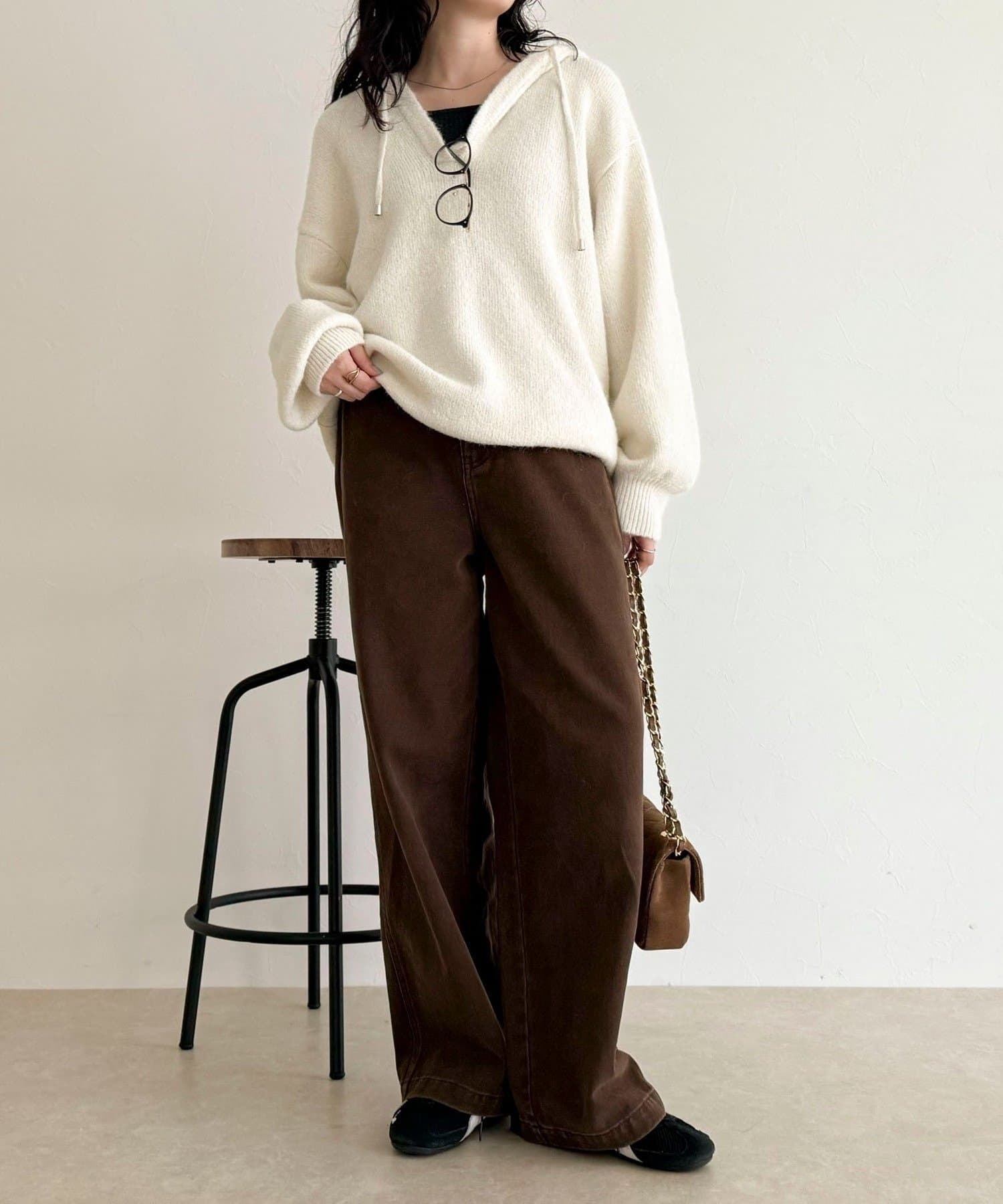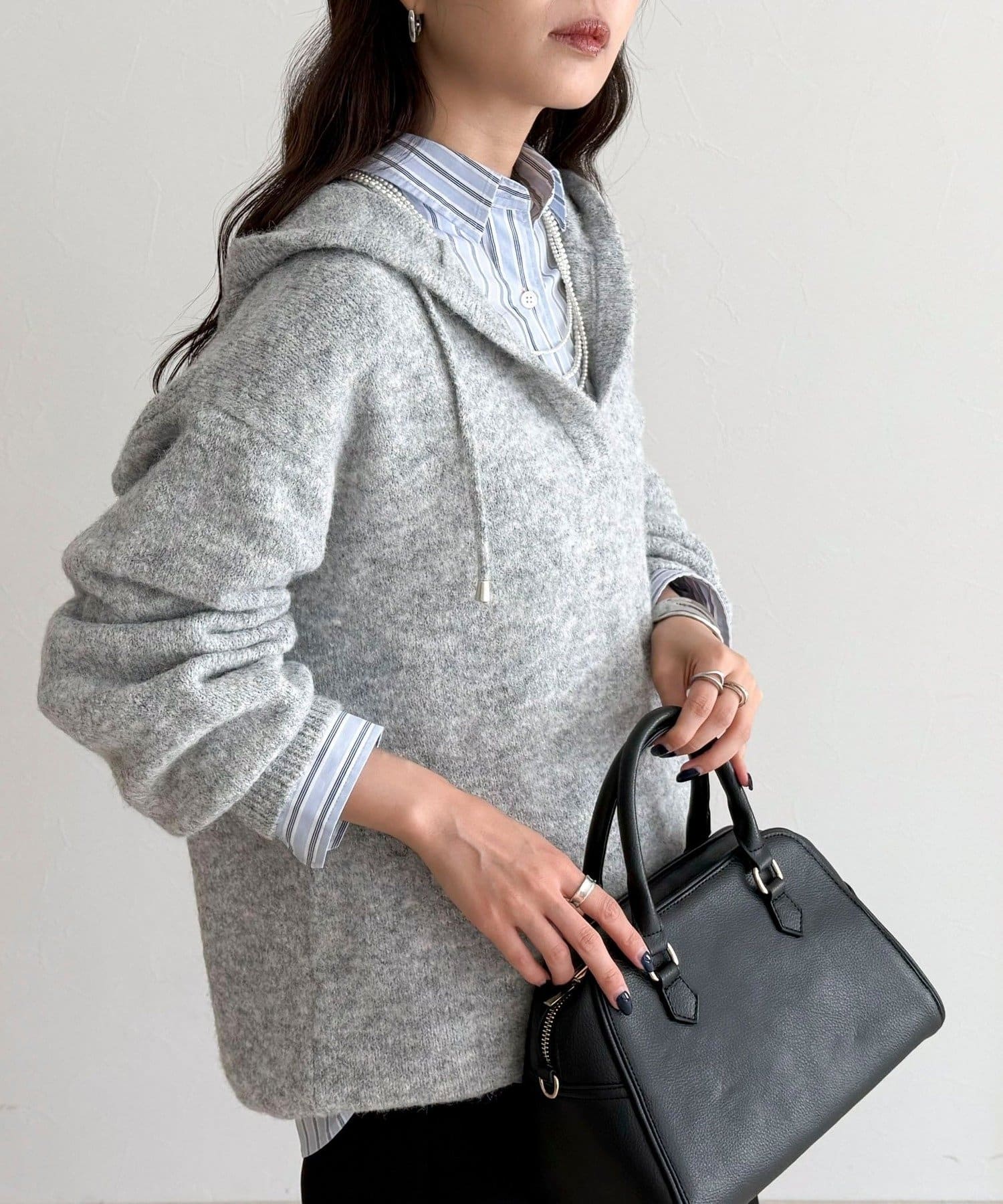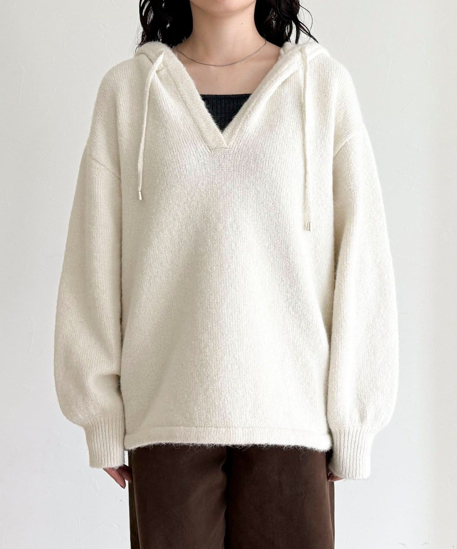 ゆるっとこなれる、着回し自在なフード付きニットプルオーバー