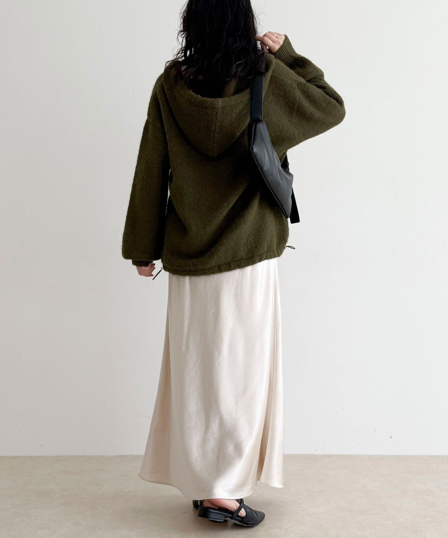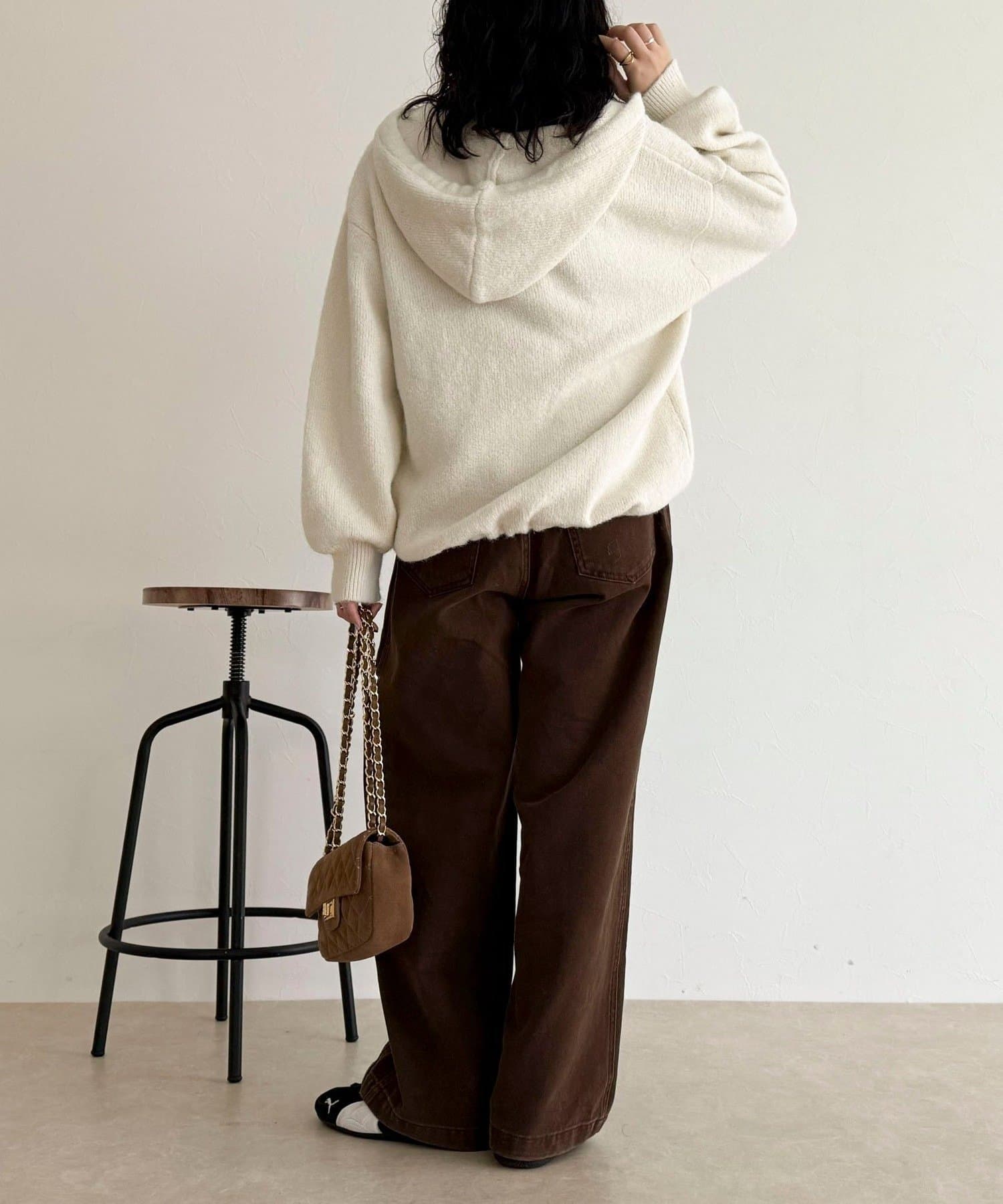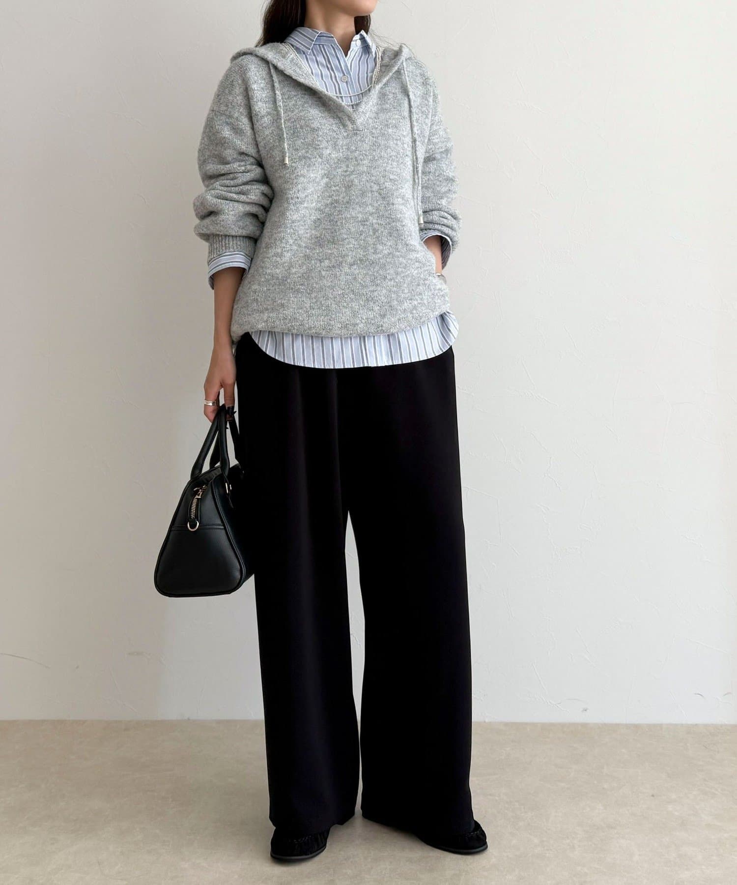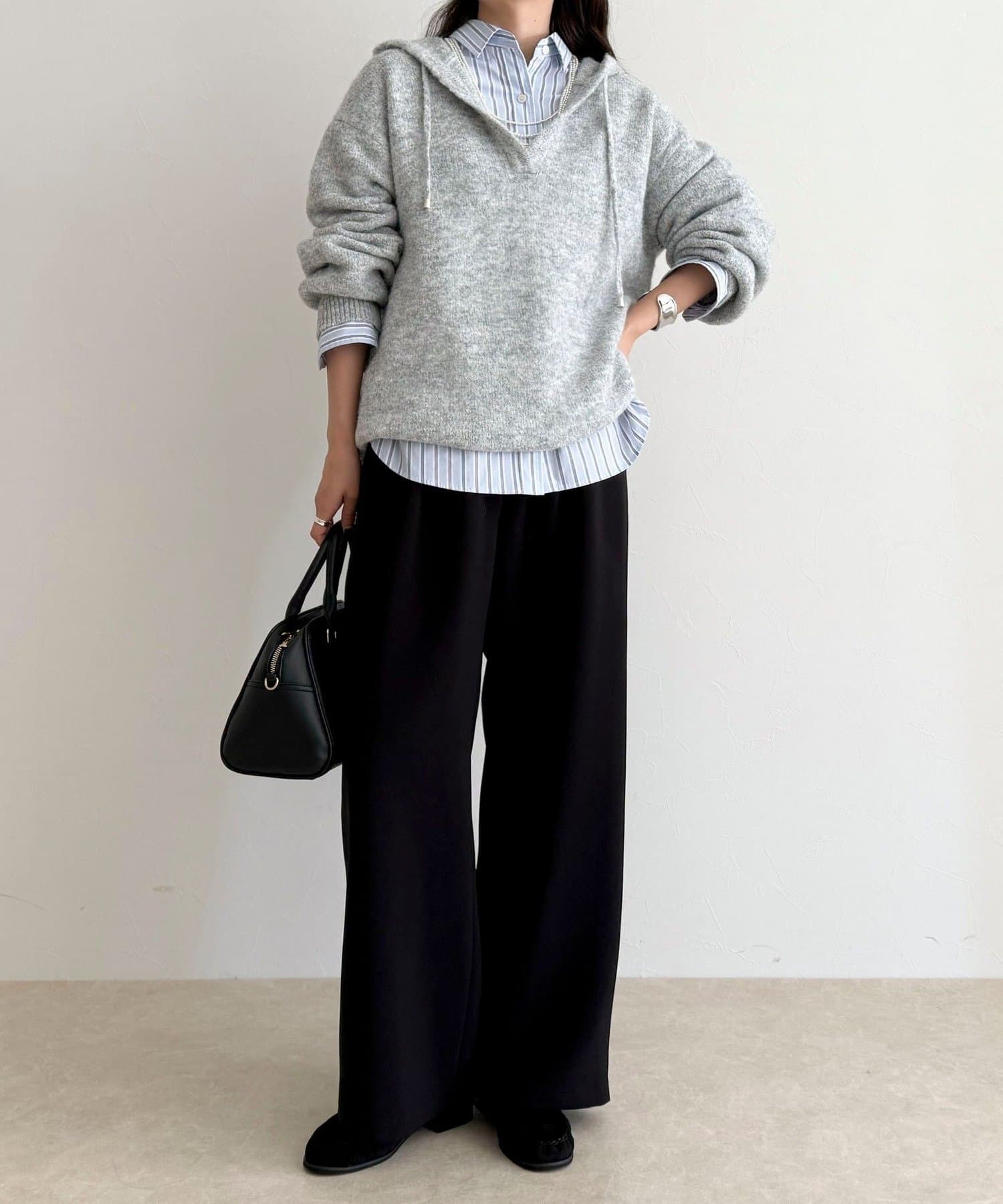 ゆるっとこなれる、着回し自在なフード付きニットプルオーバー