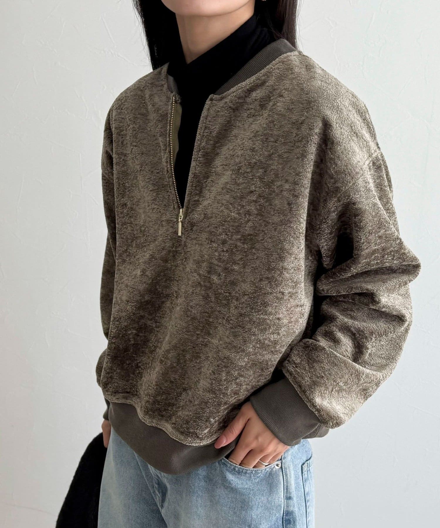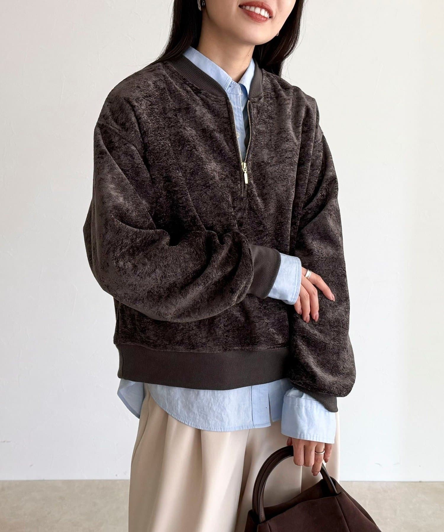 ・毛足のあるモール素材が暖かく、ふんわりとした着心地が魅力