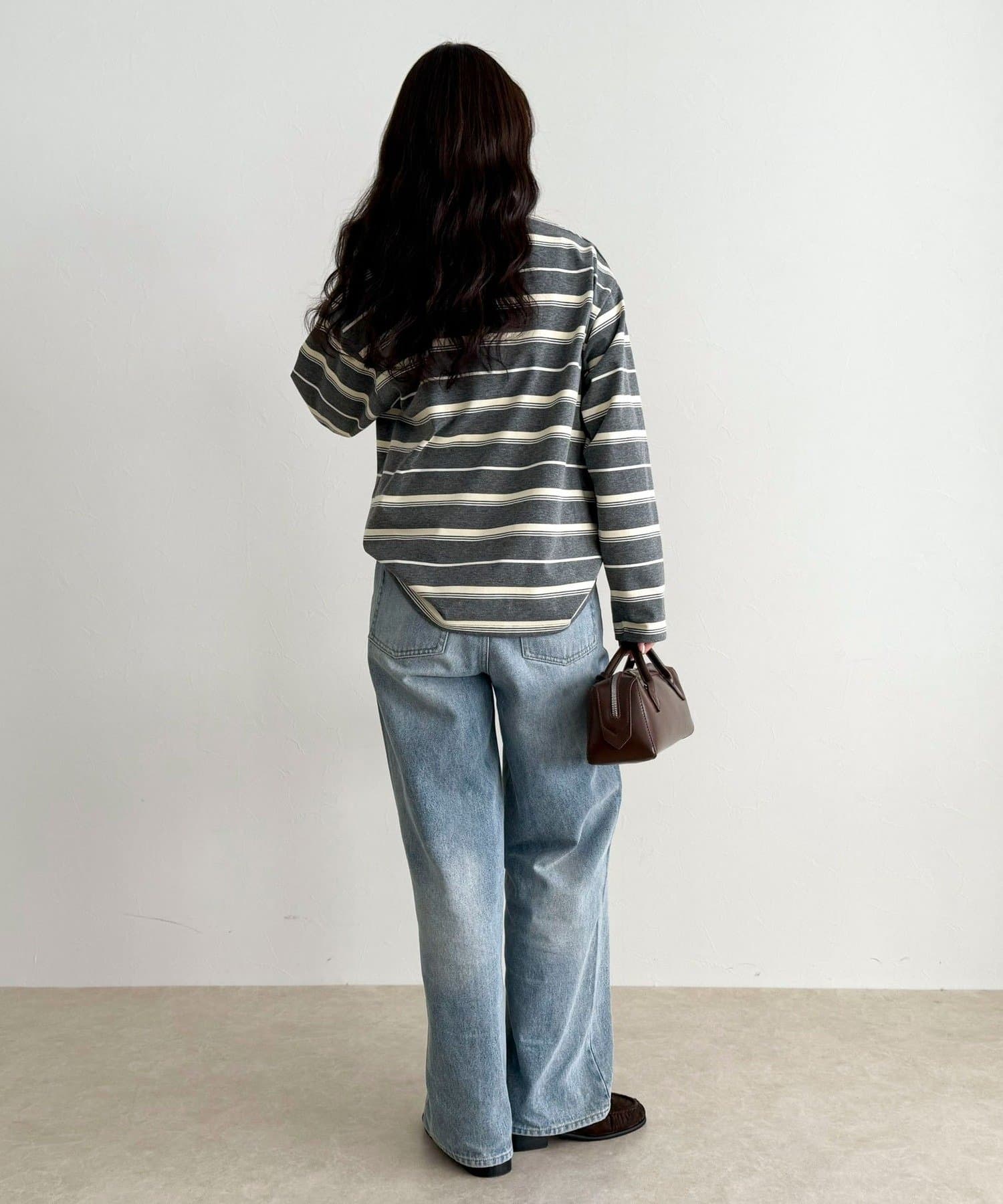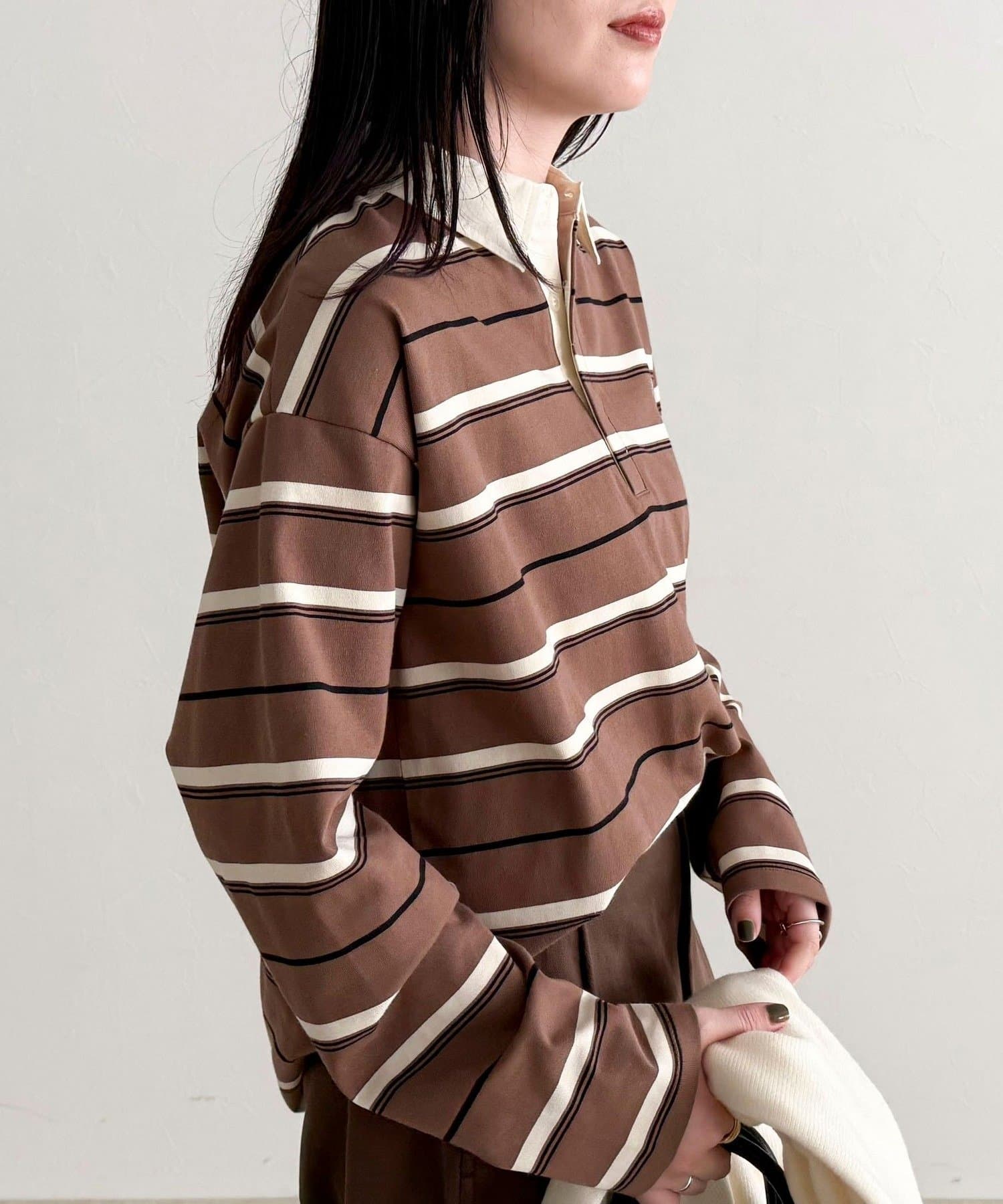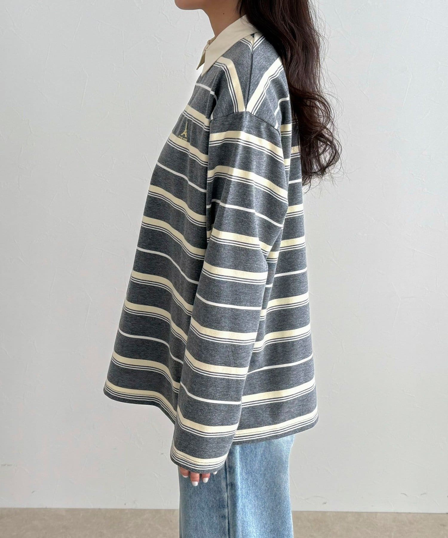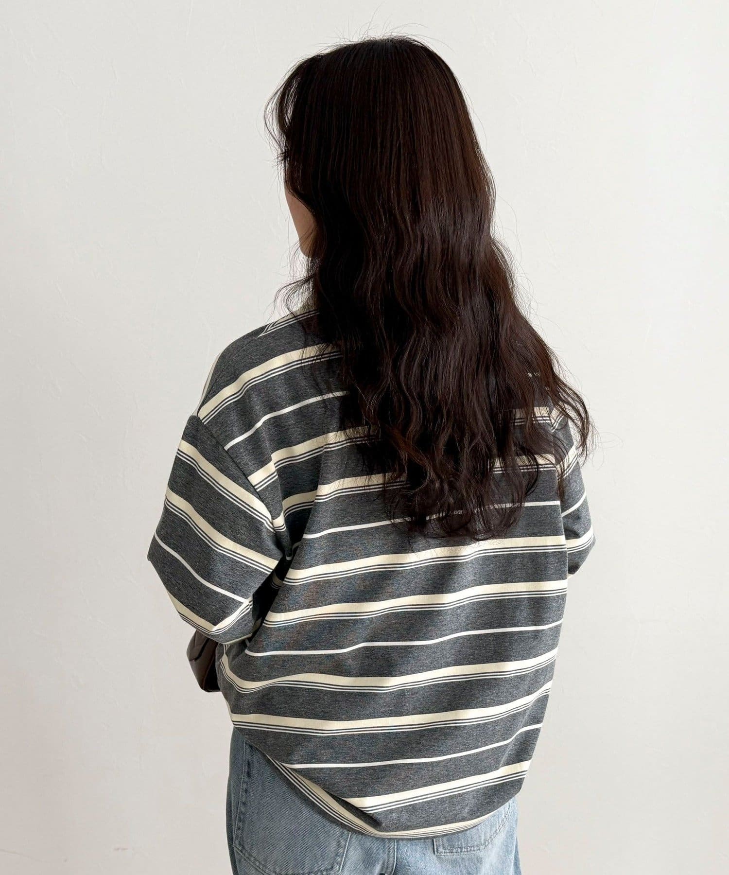 ・存在感のあるマルチボーダー柄が着るだけでコーデの主役になるラガーロンT