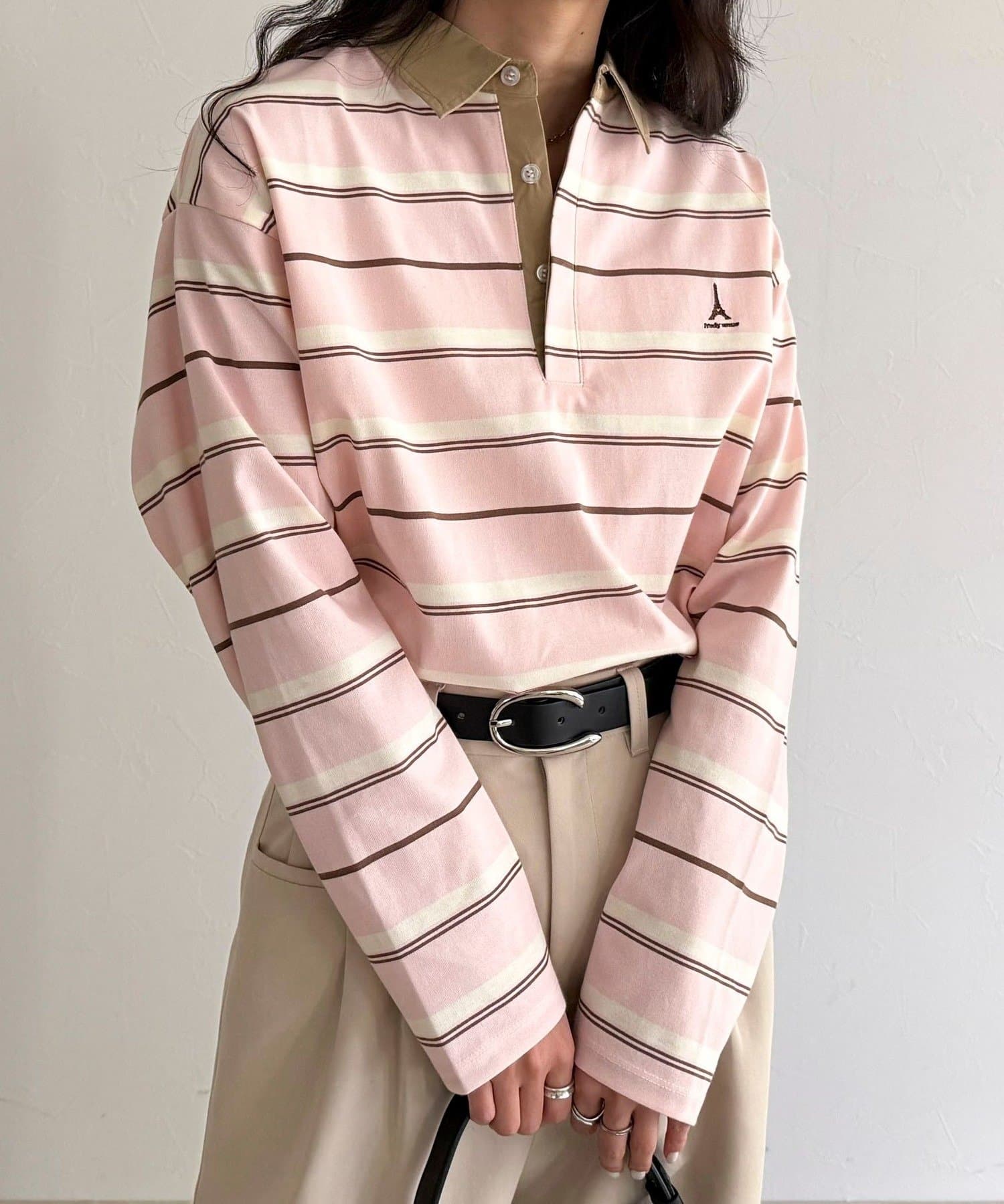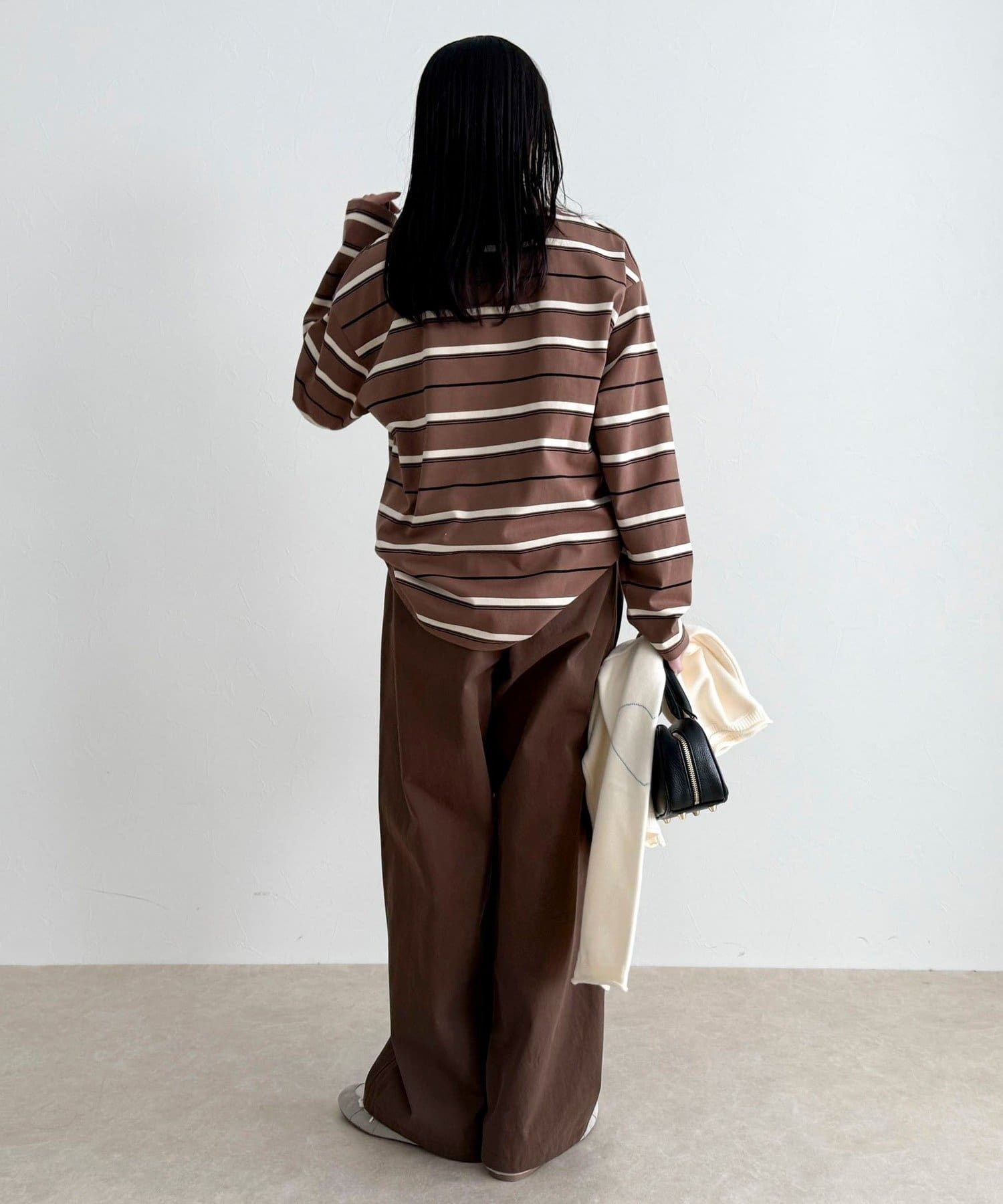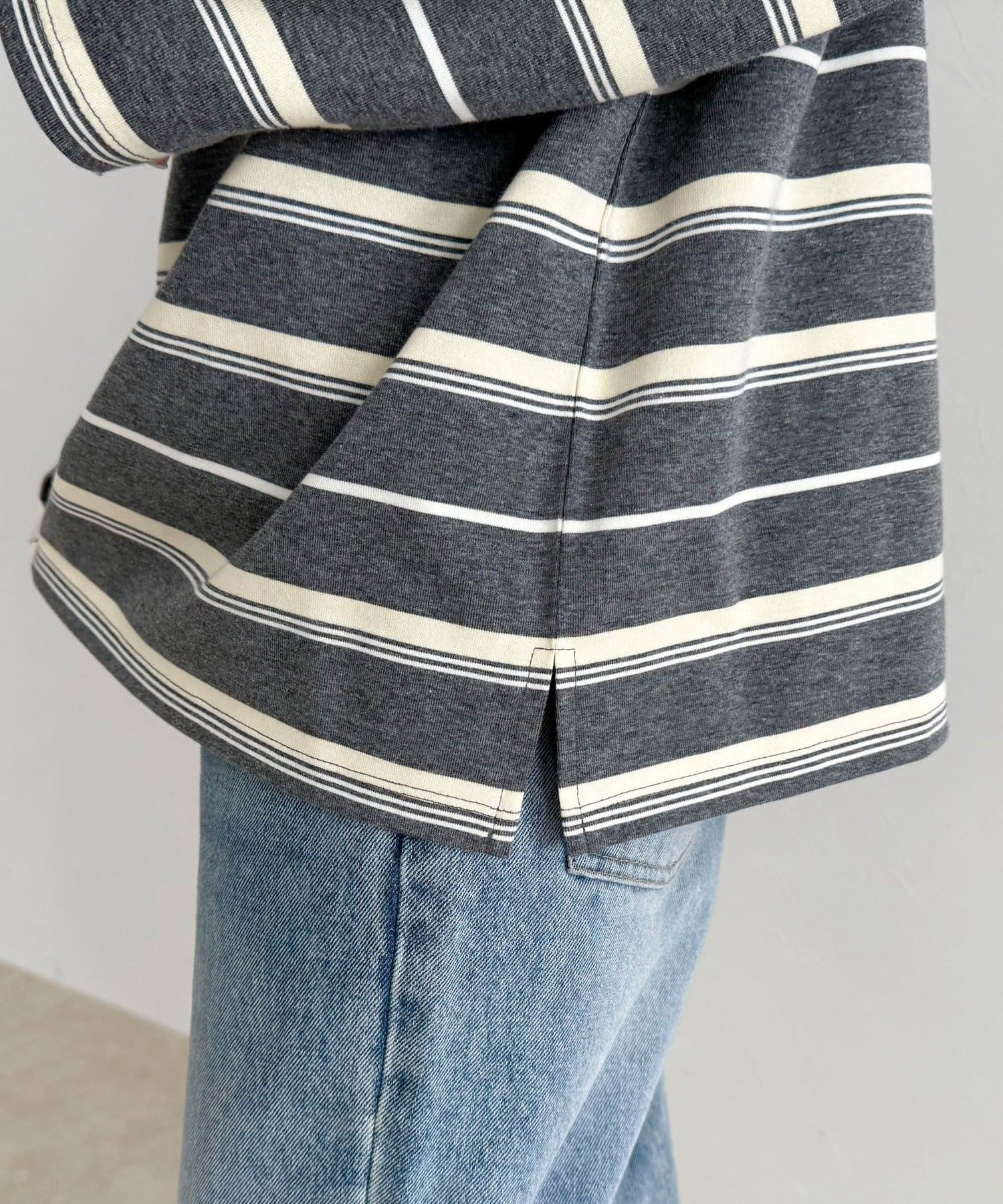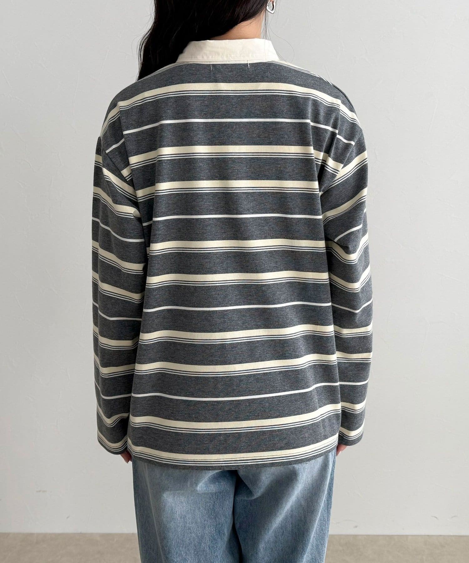・存在感のあるマルチボーダー柄が着るだけでコーデの主役になるラガーロンT