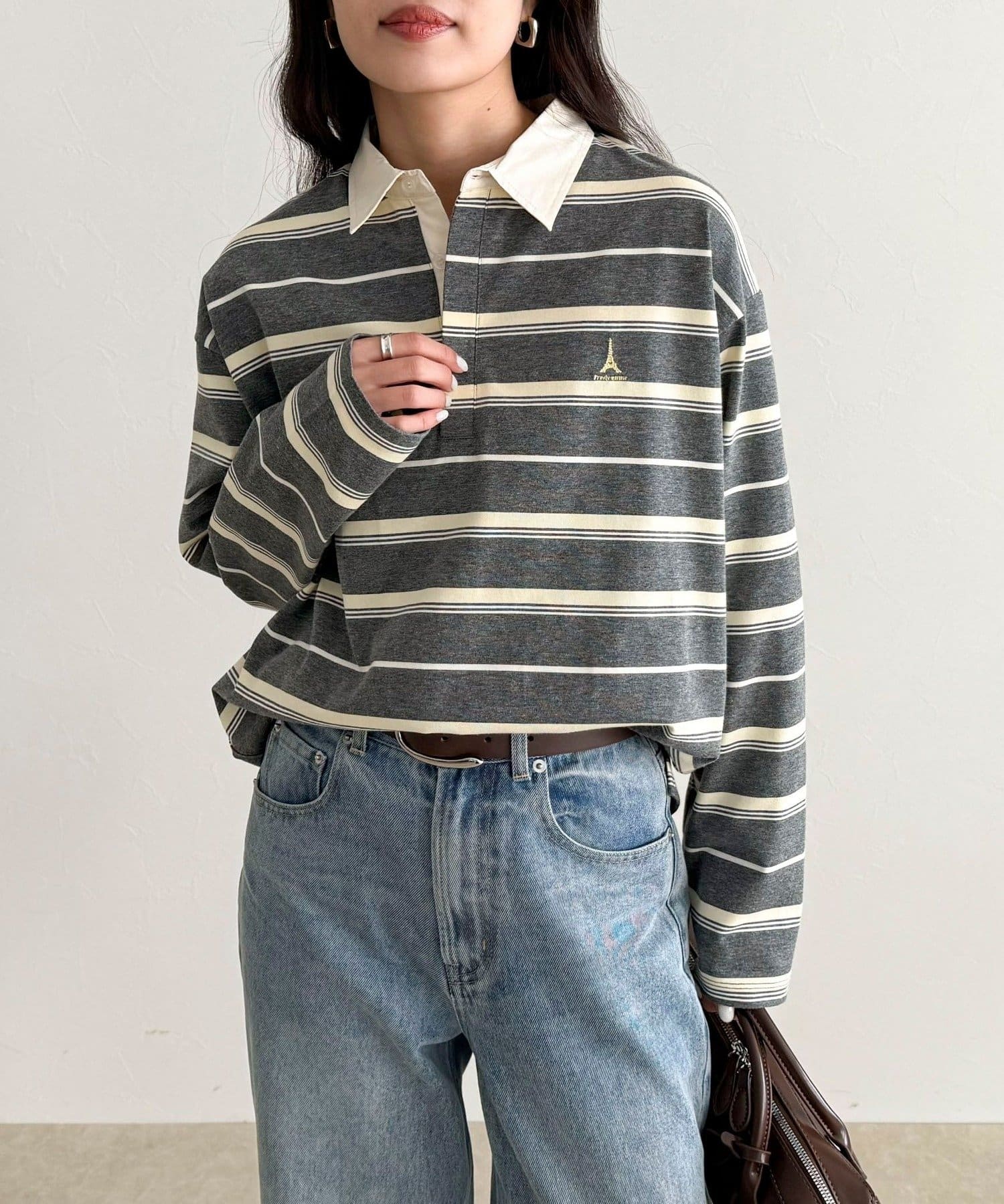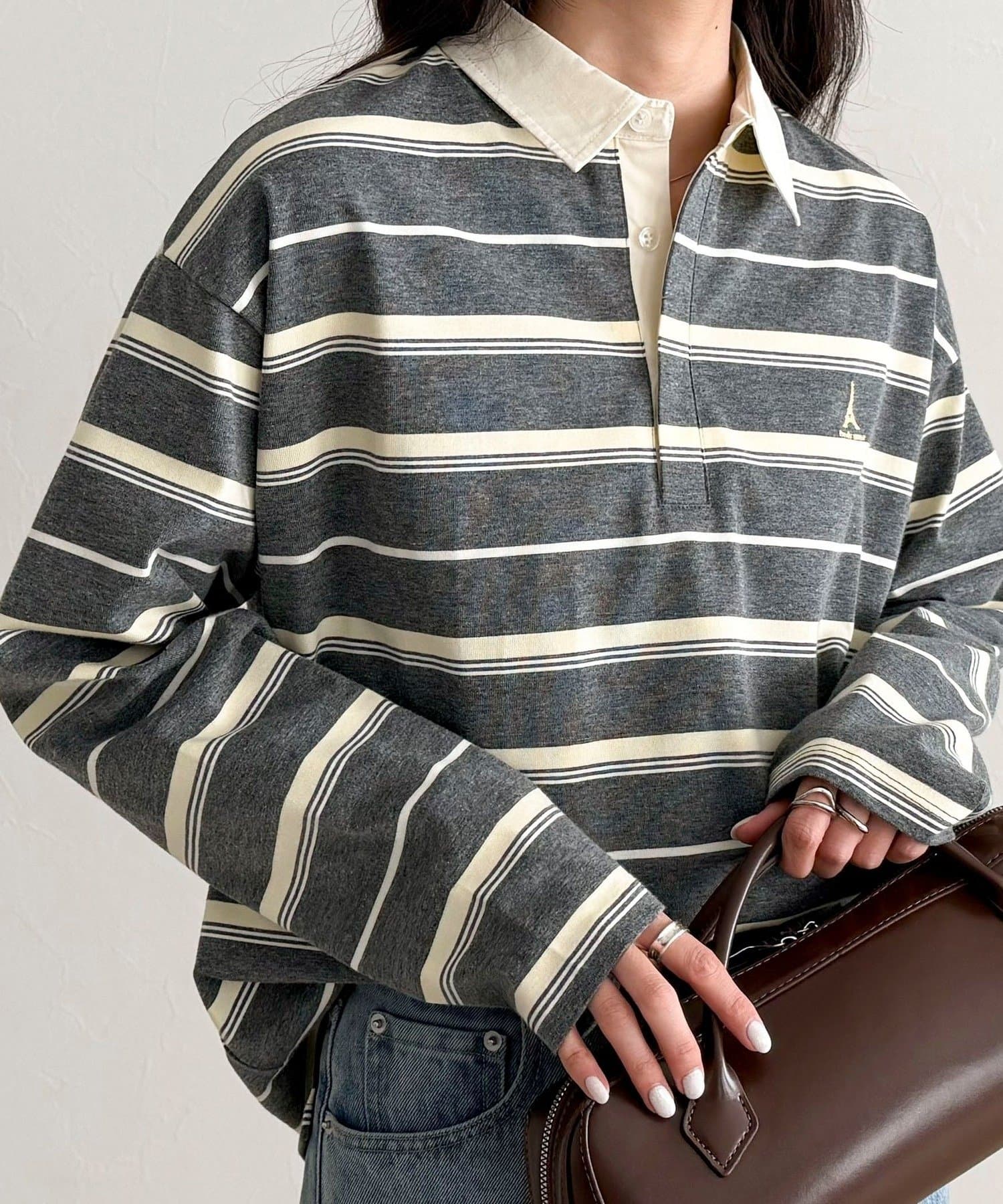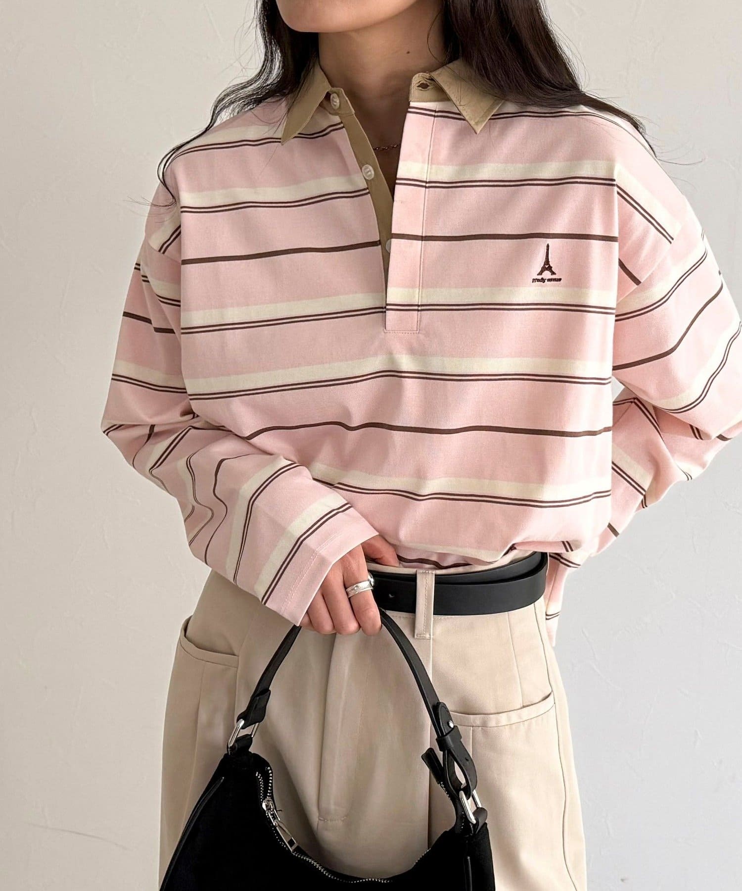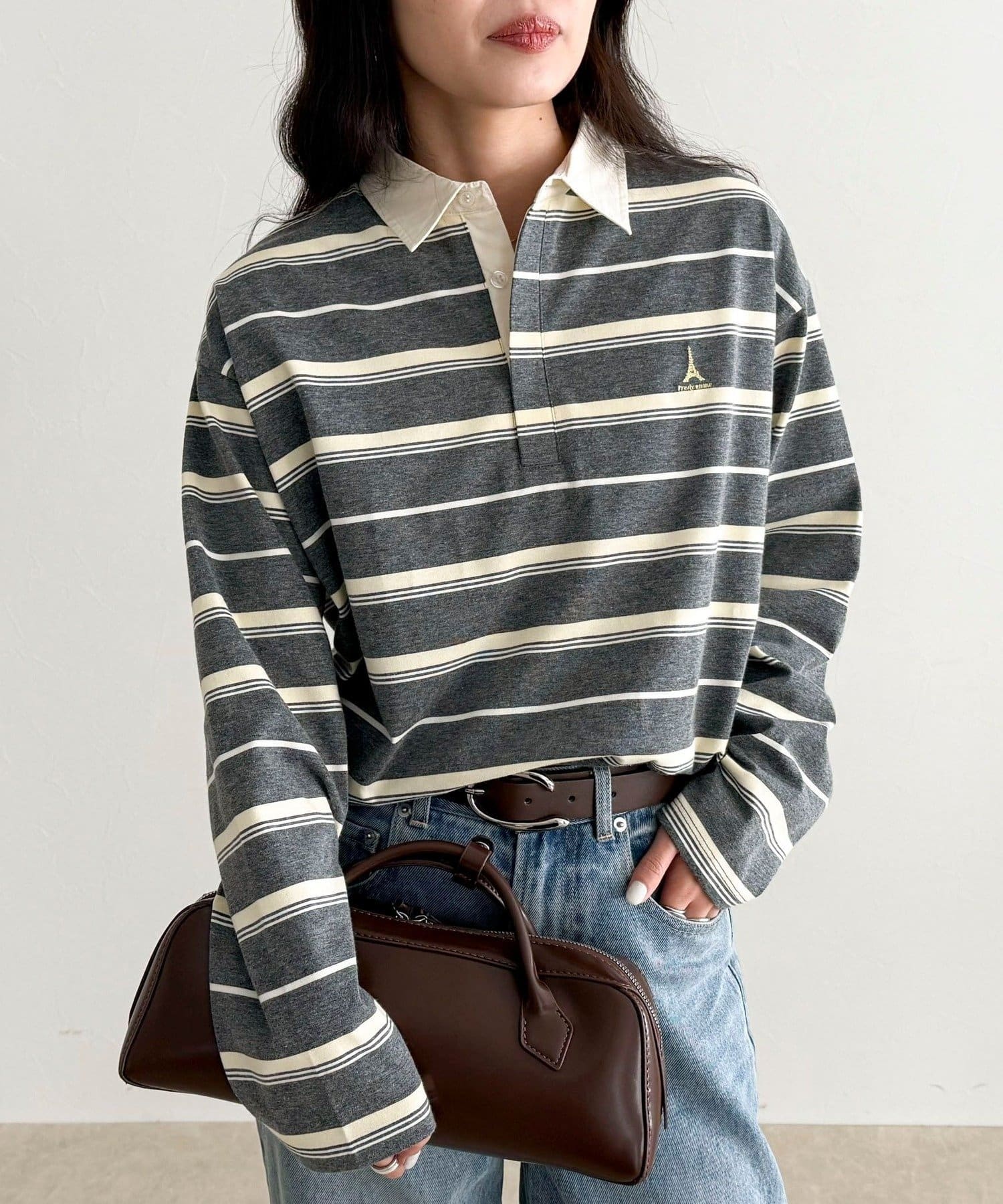 ・ラガーシャツならではの襟デザインがカジュアルスタイルに品の良さをプラス