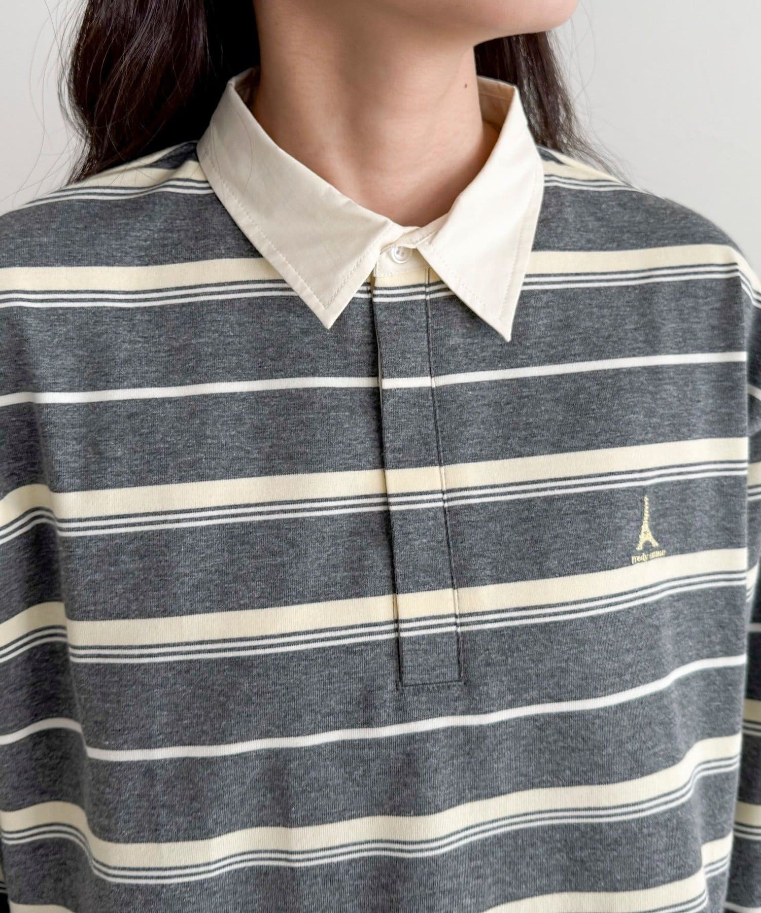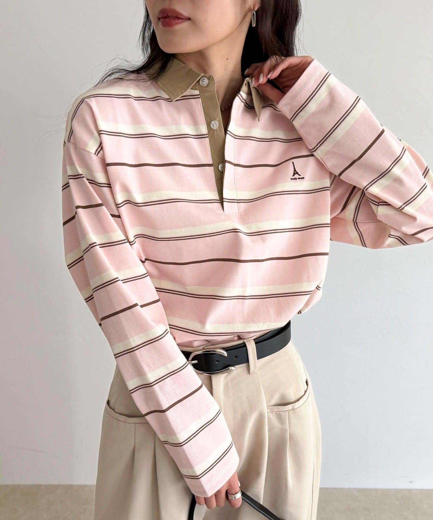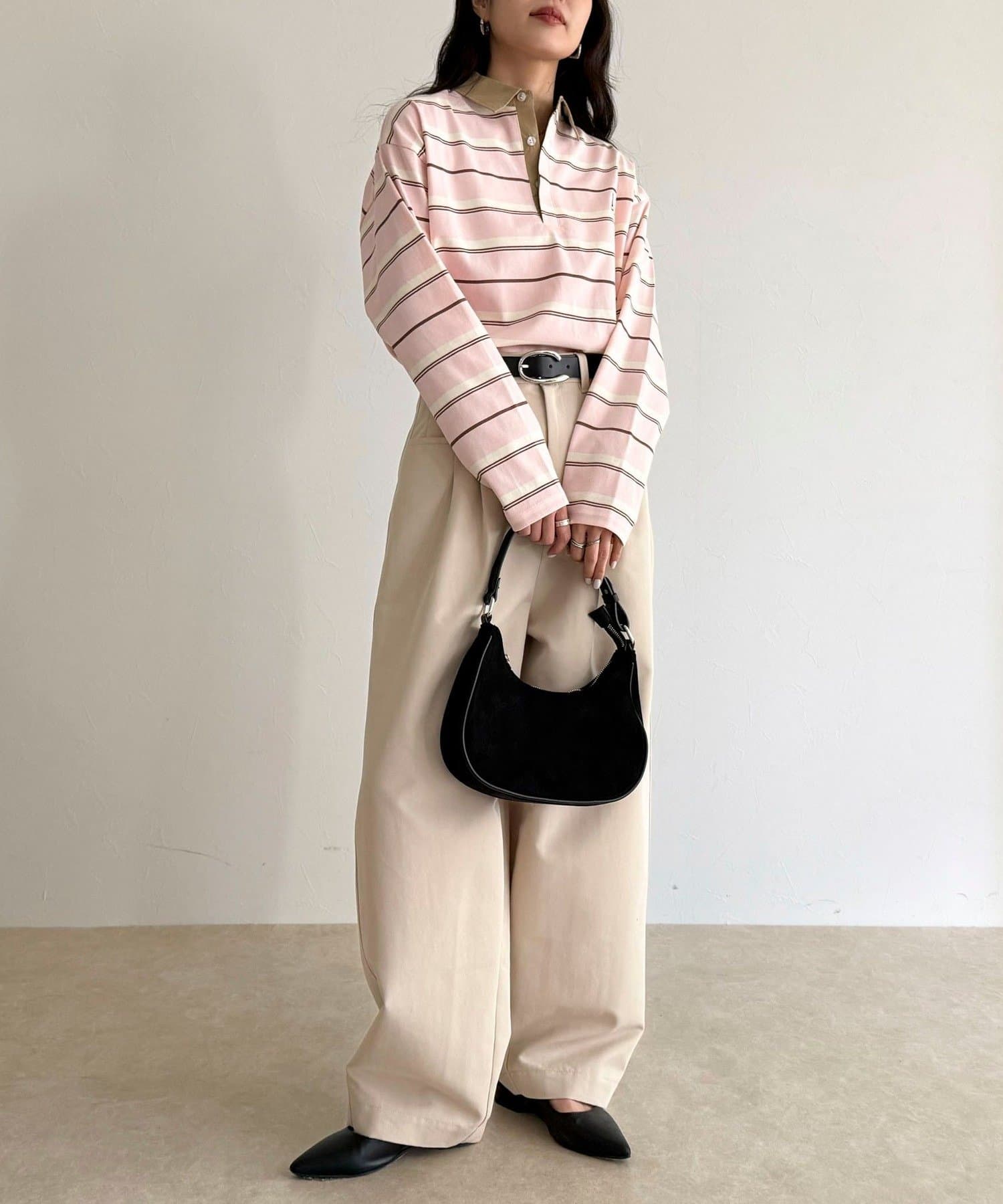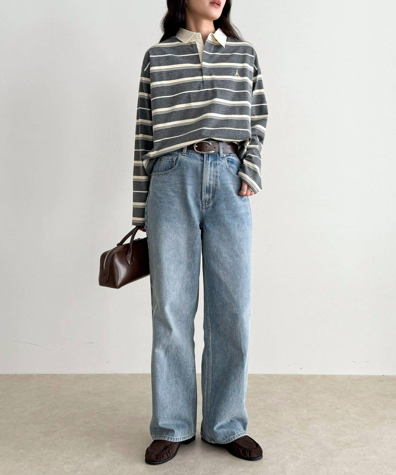 ・ラガーシャツならではの襟デザインがカジュアルスタイルに品の良さをプラス