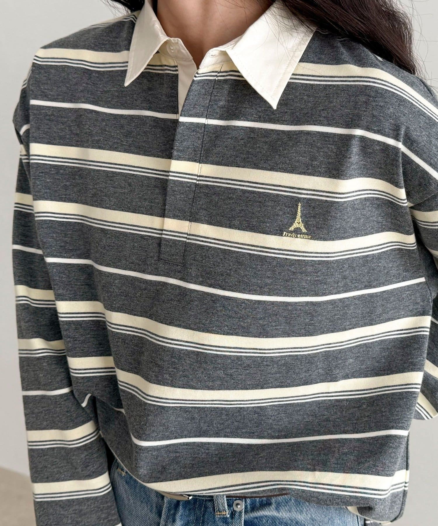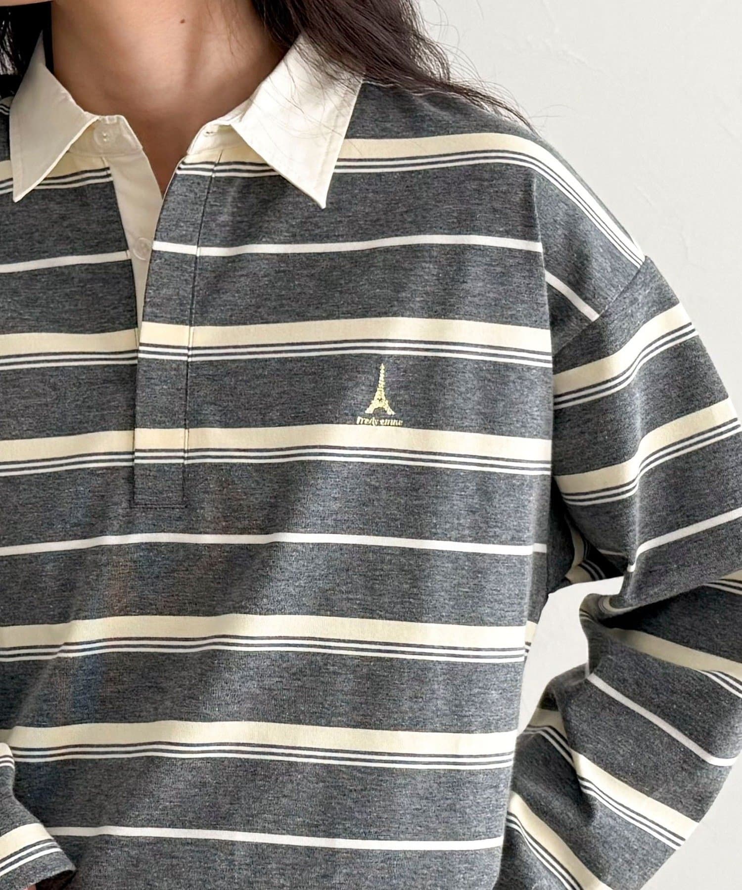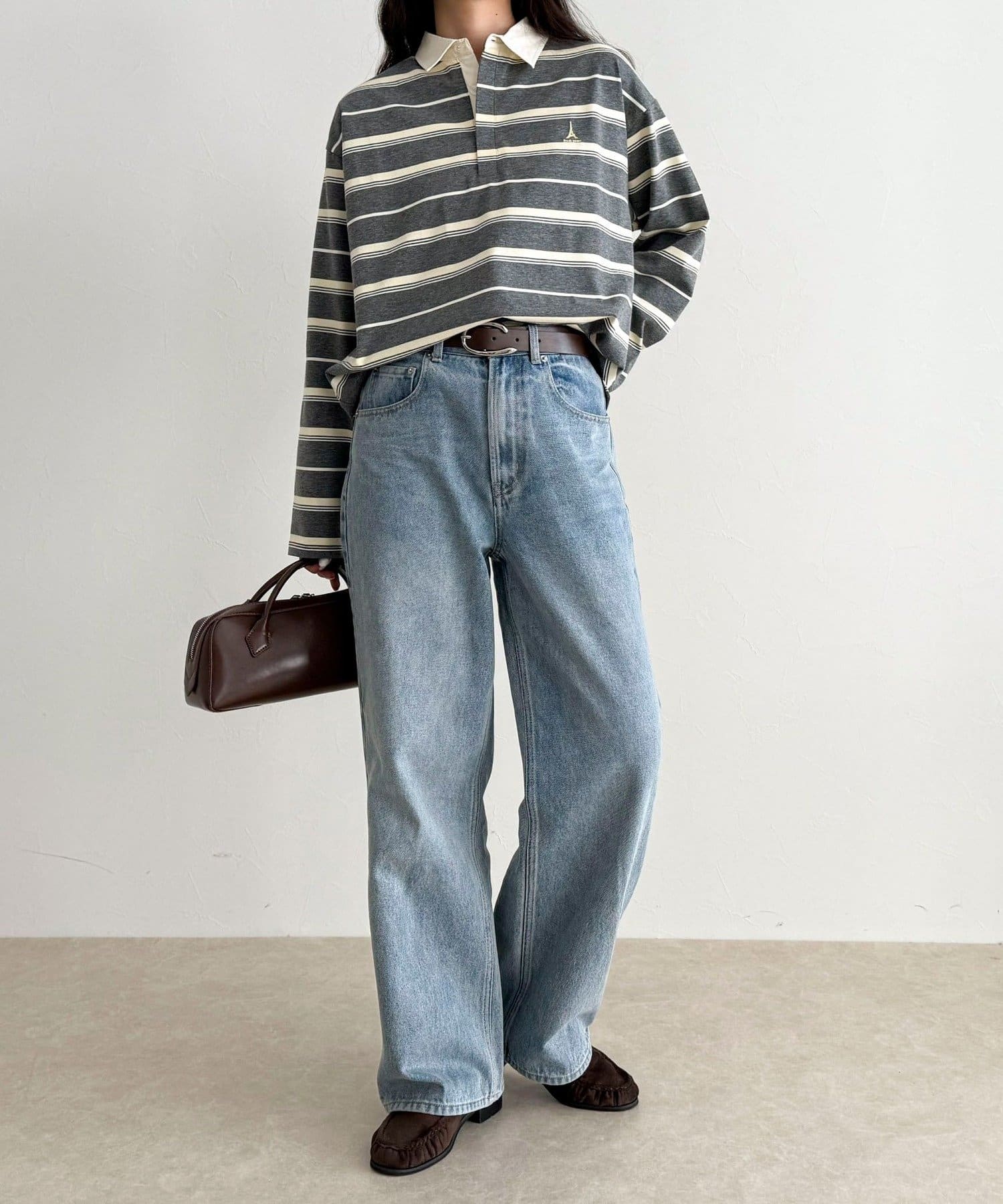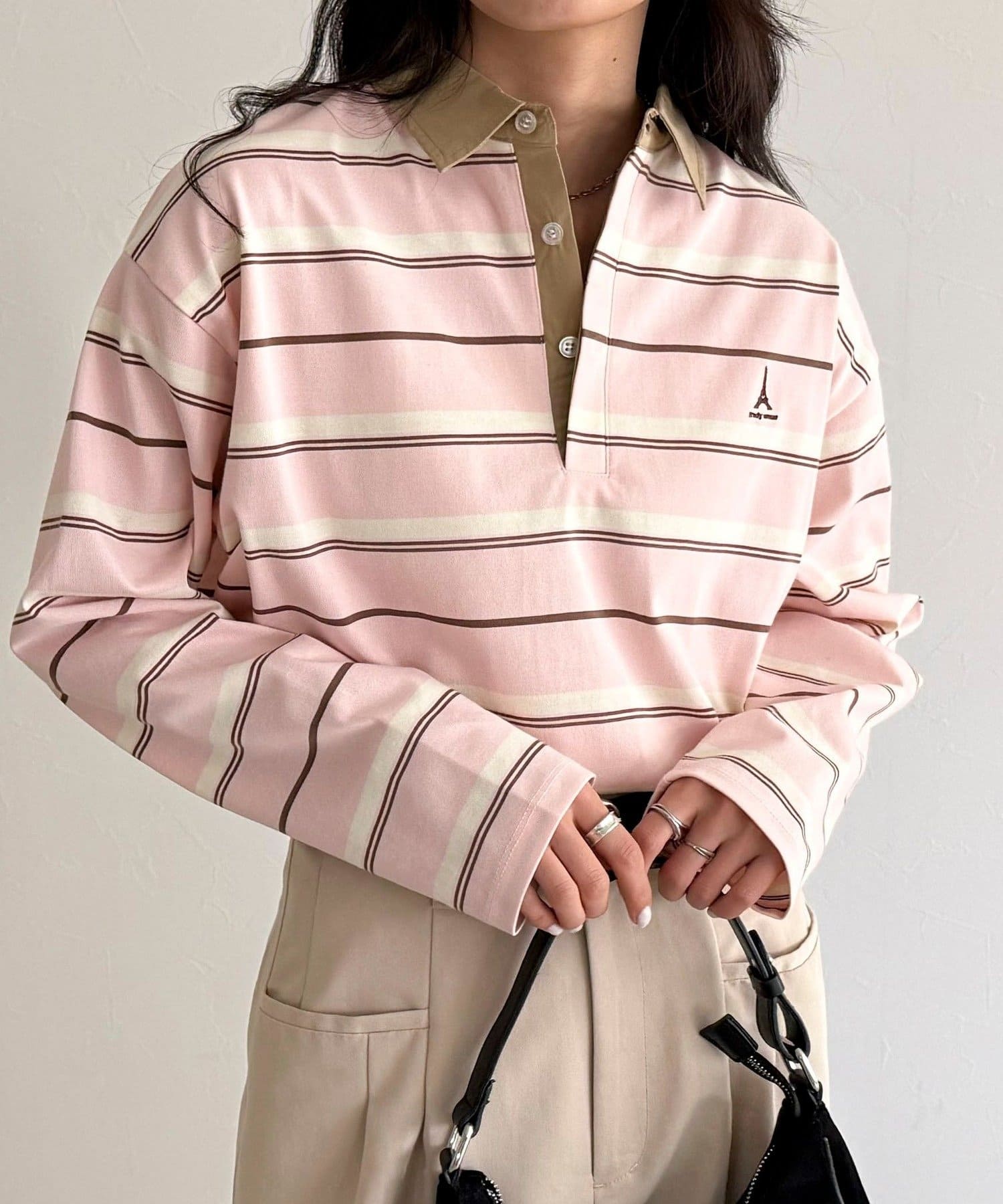 ・ラガーシャツならではの襟デザインがカジュアルスタイルに品の良さをプラス