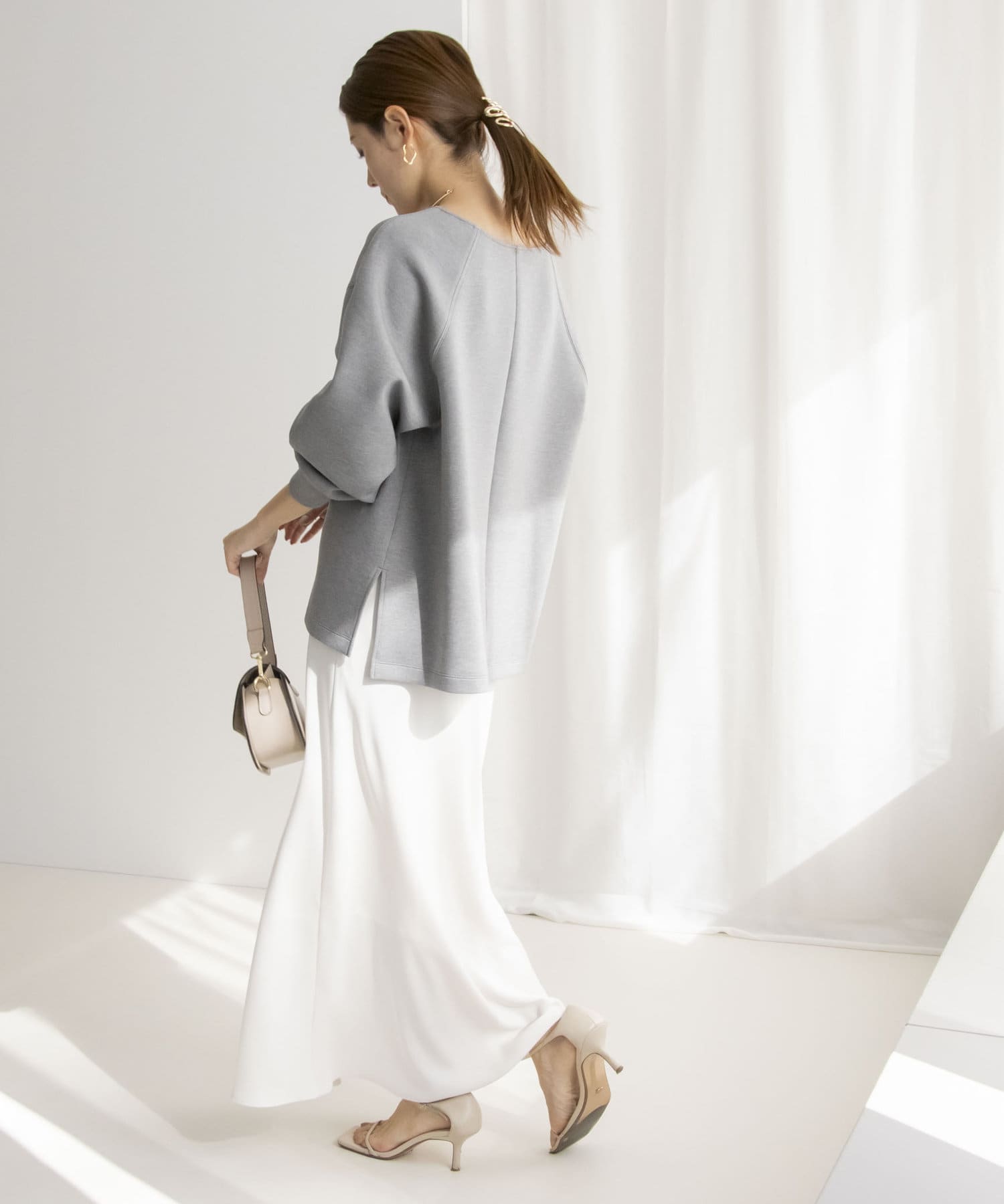・エレガントなシルエットながら、後ろのゴム仕様とバイヤスの伸縮性が快適な着心地