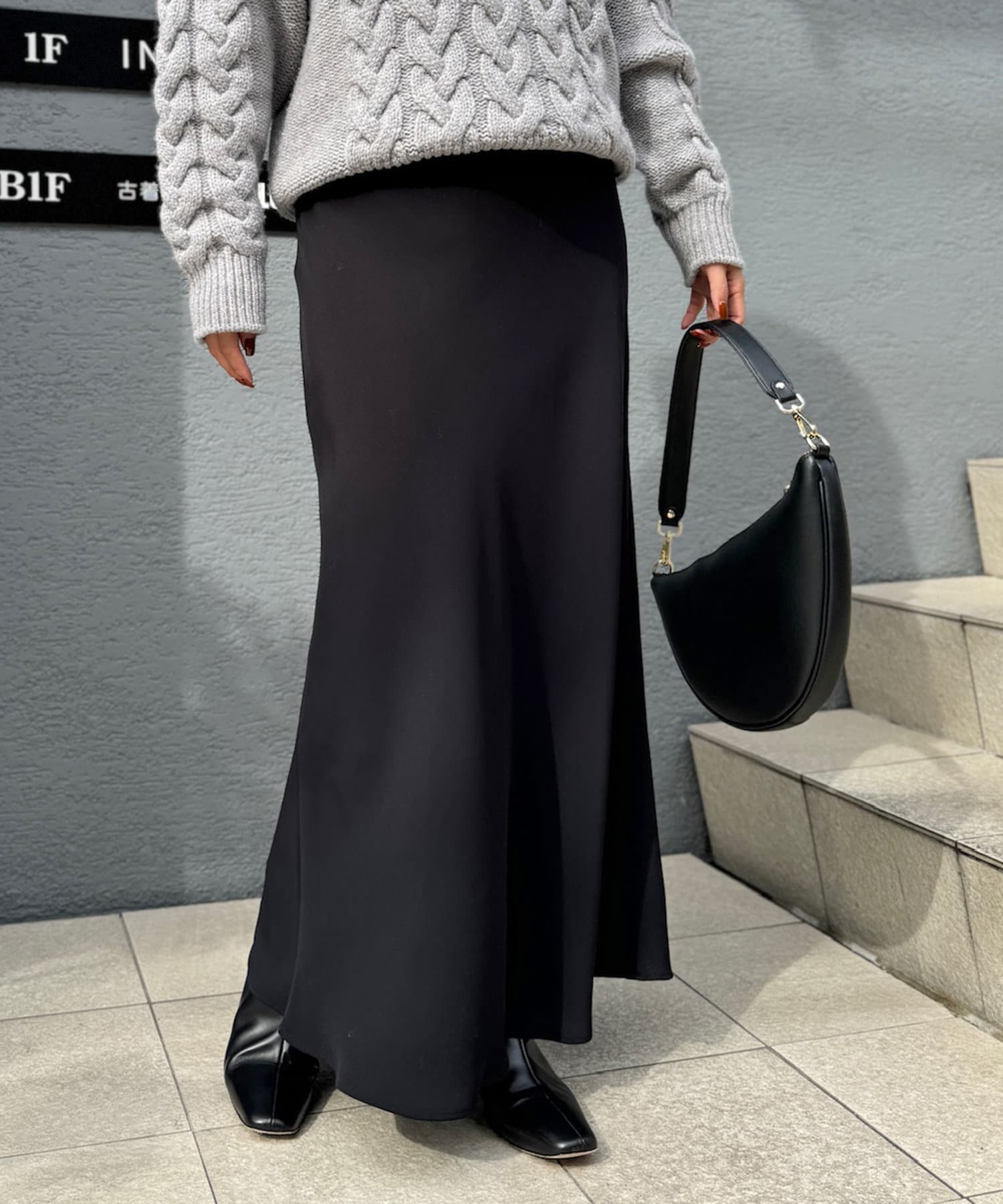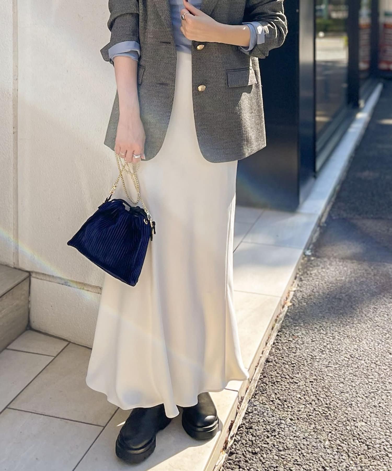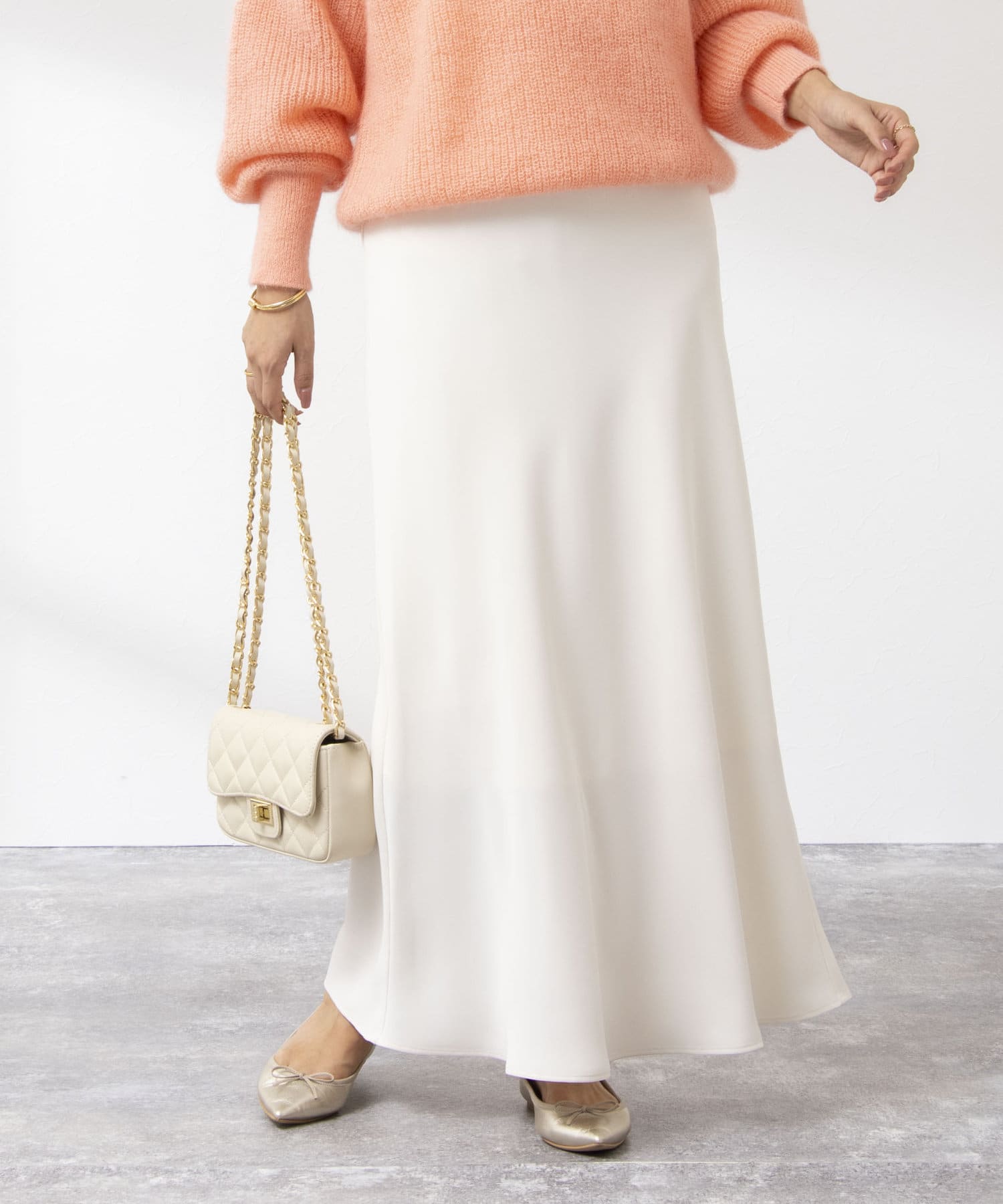 ・マットでしなやかな落ち感のあるサテン素材を使用したロングスカート