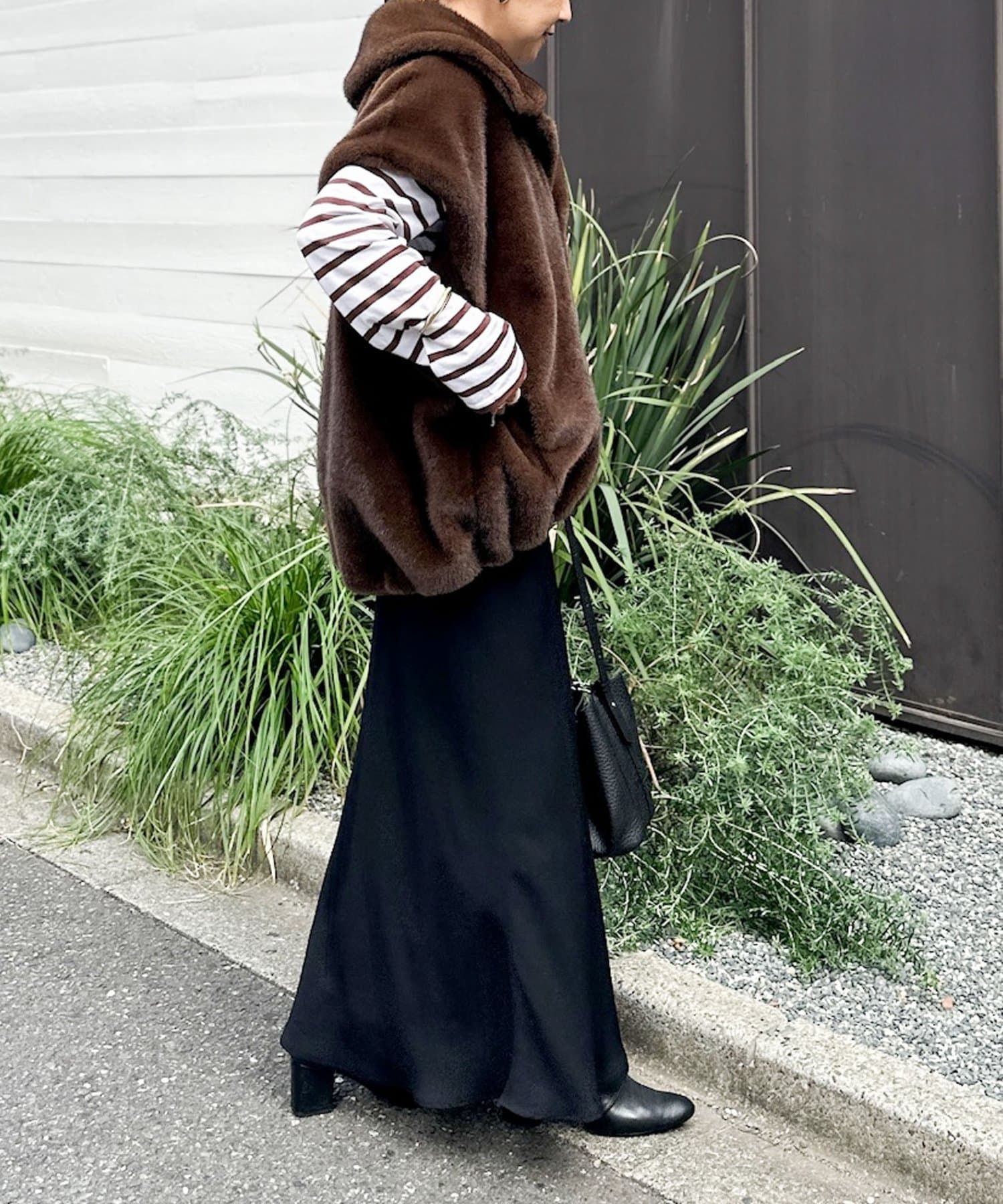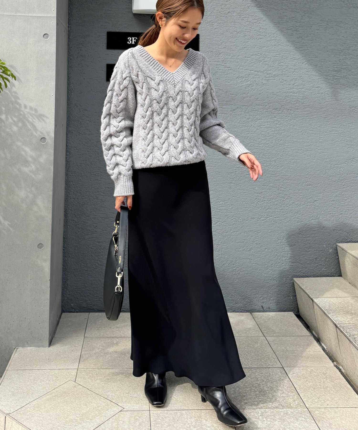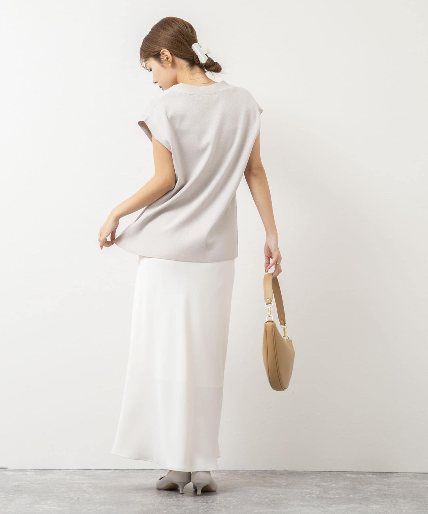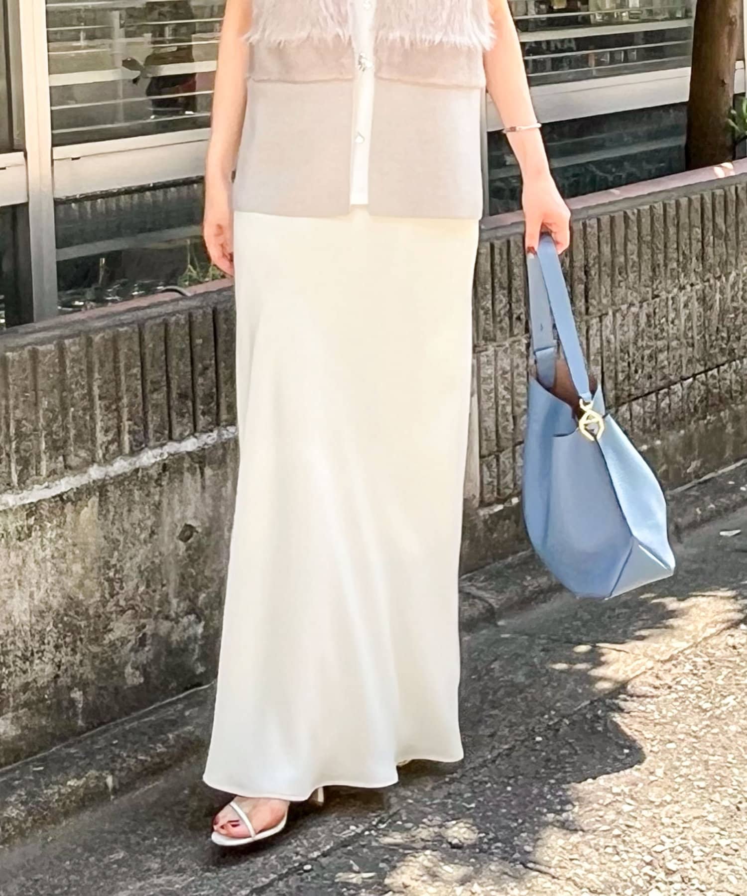 ・マットでしなやかな落ち感のあるサテン素材を使用したロングスカート