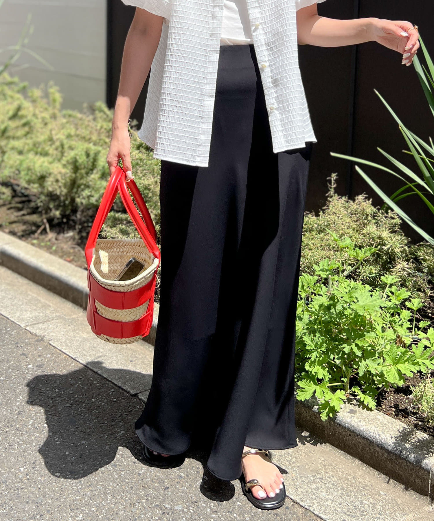 ・春夏はブラウスやシャツ、Tシャツなどとさらっと合わせるだけでお出かけスタイルが完成