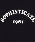 プリントロゴの【SOPHISTICATE(ソフィスティケート)】はSophiのブランド名の由来で、意味は【洗練された、都会的な】などの意味。1981は弊社の設立年。