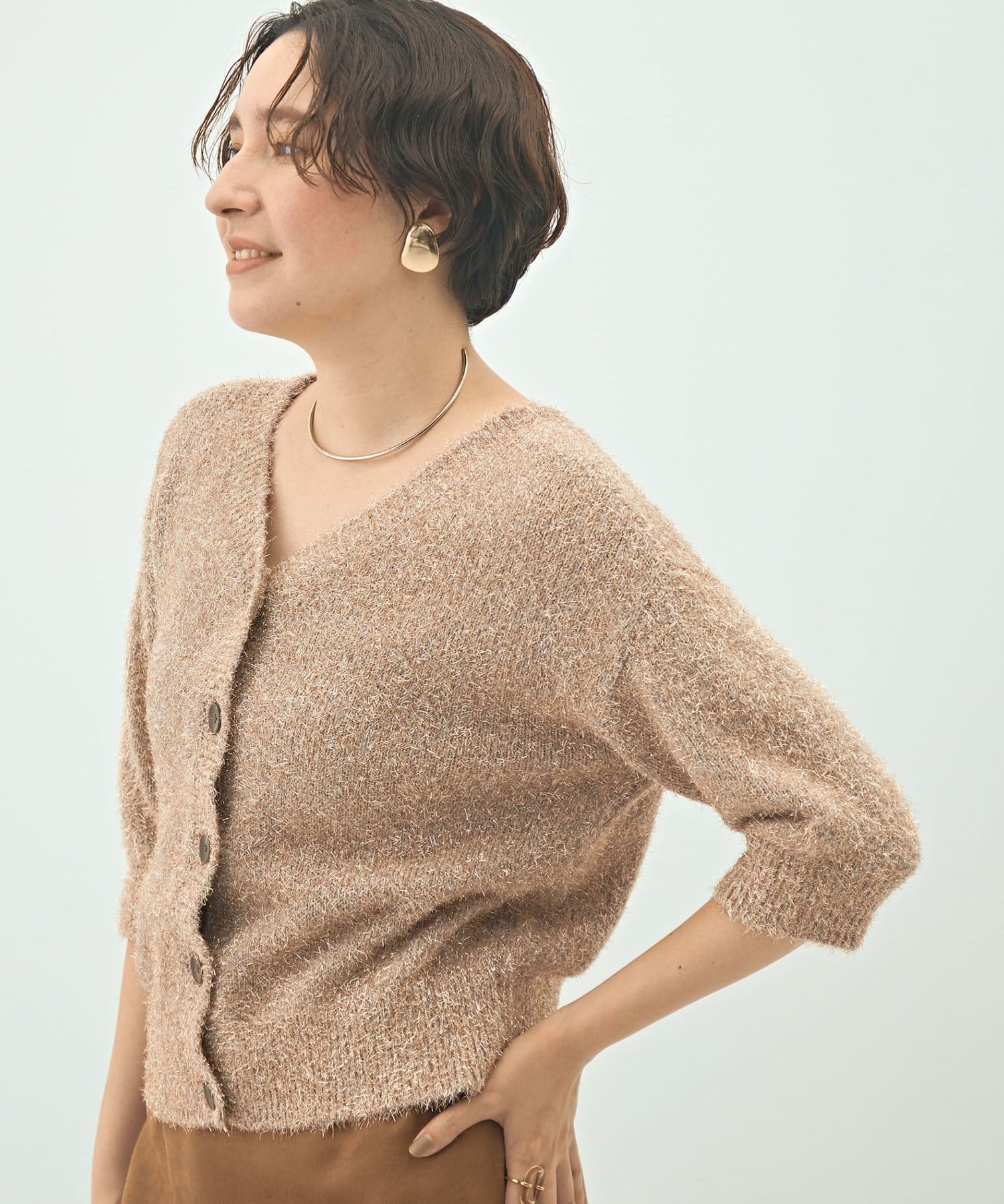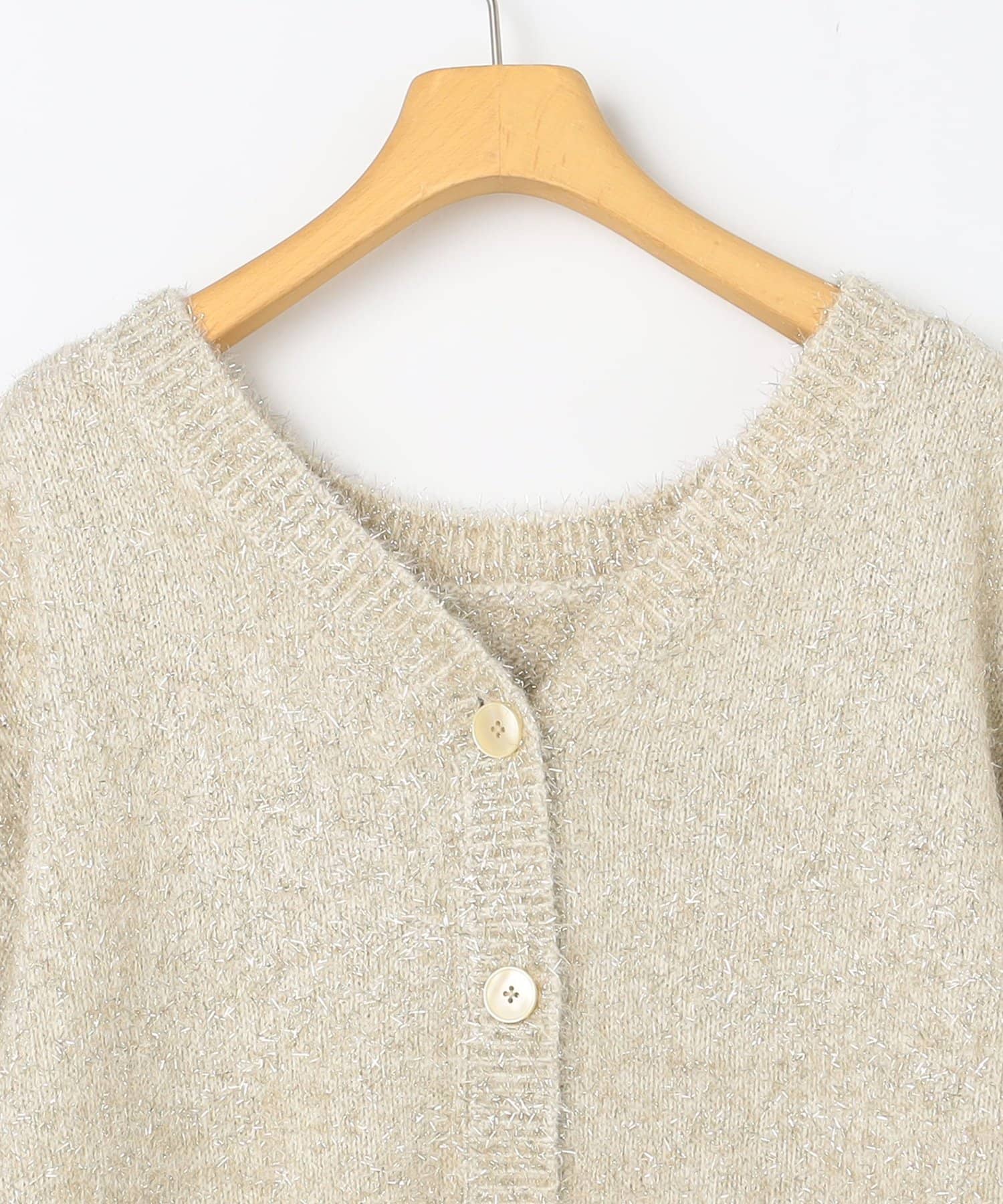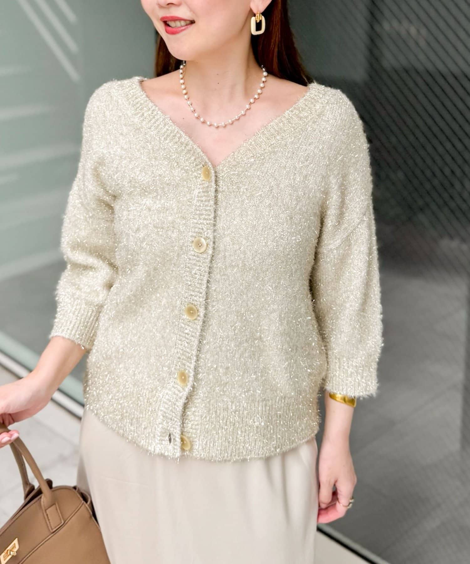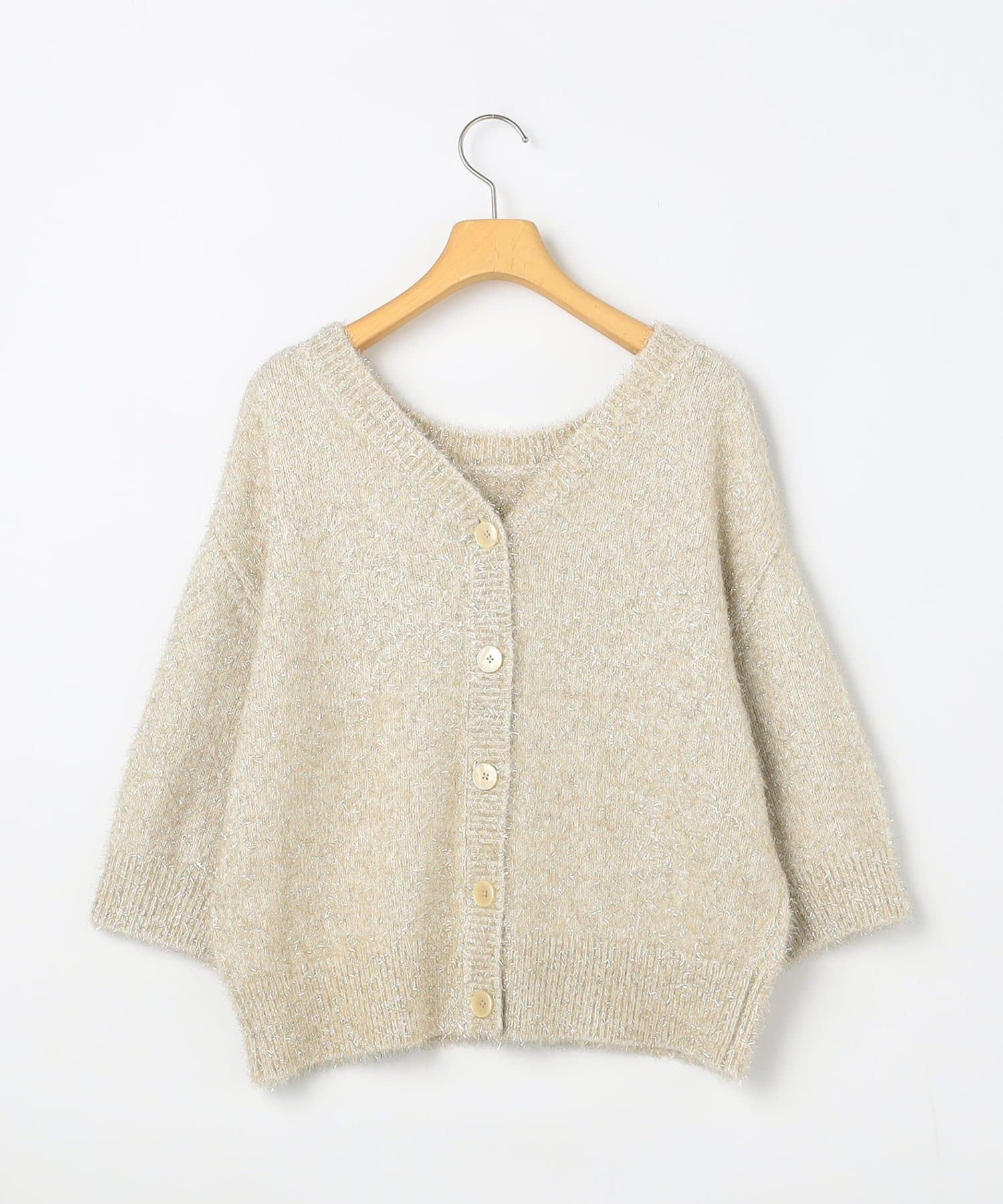 ・カシミヤ混のキラキラ素材のニットカーディガン
