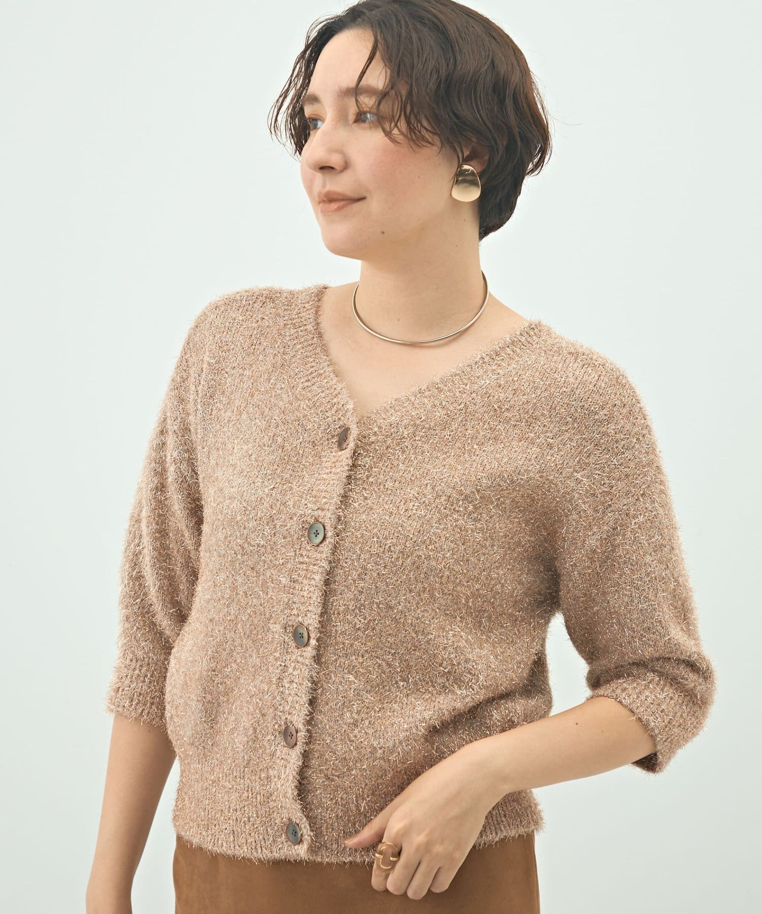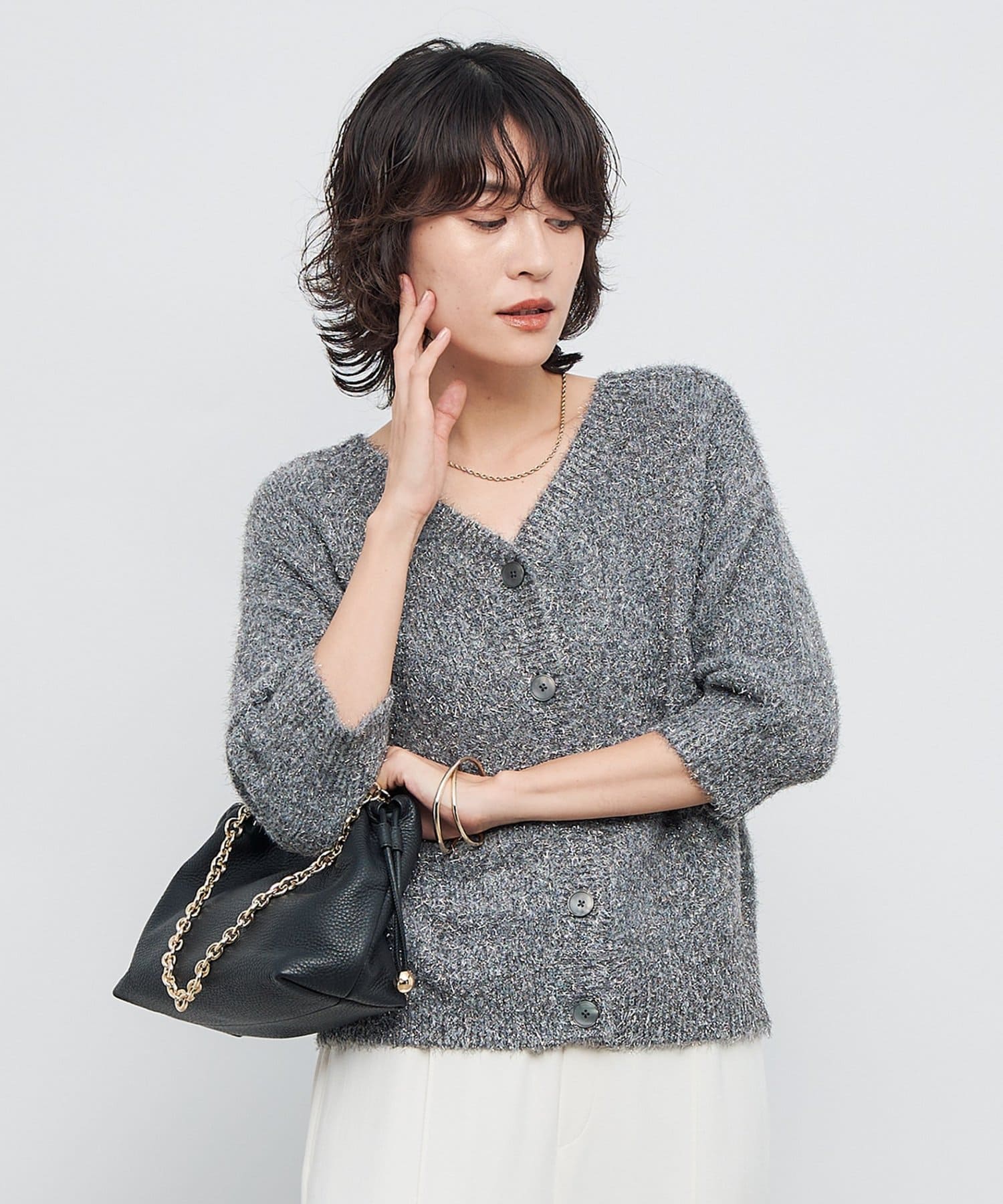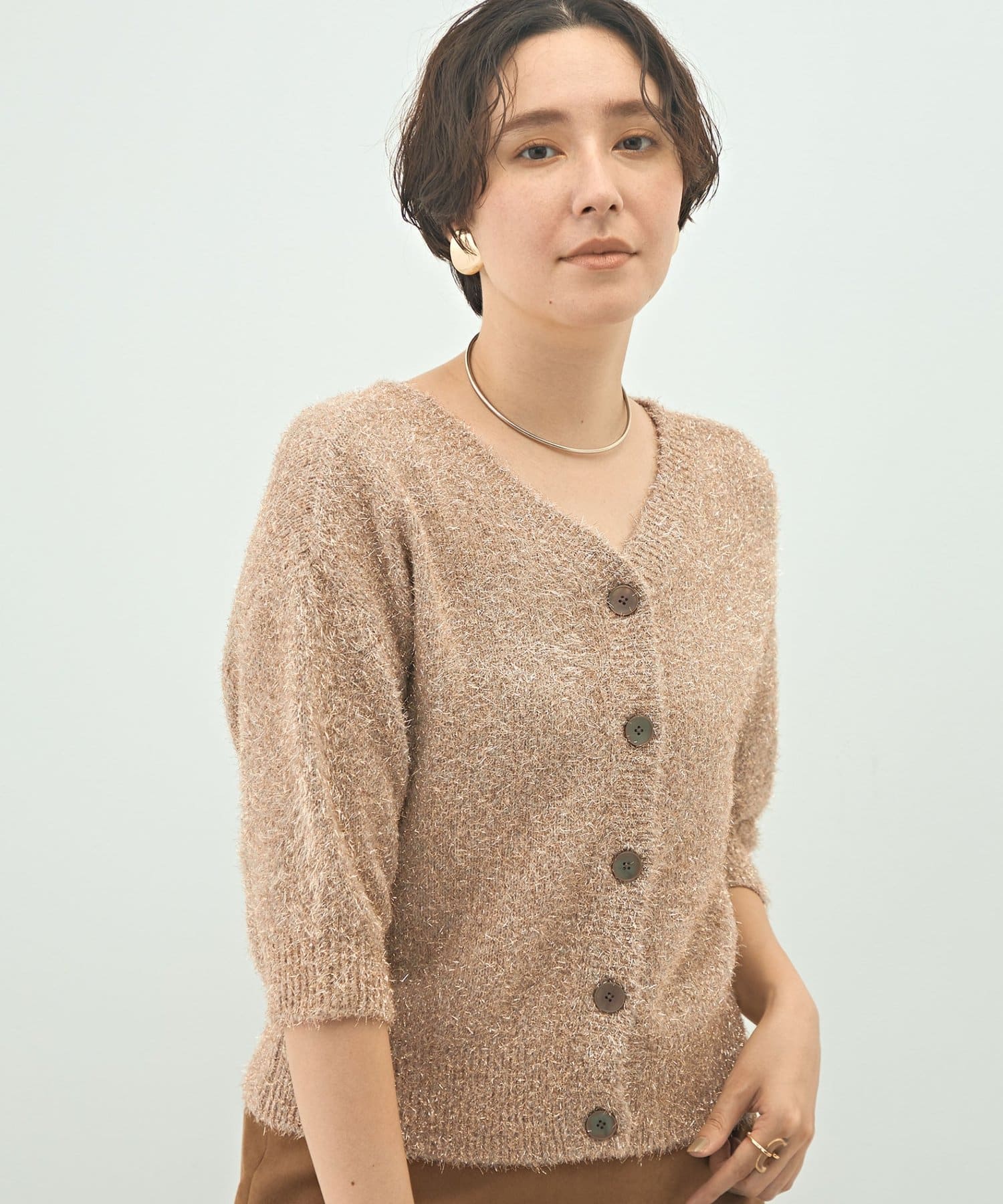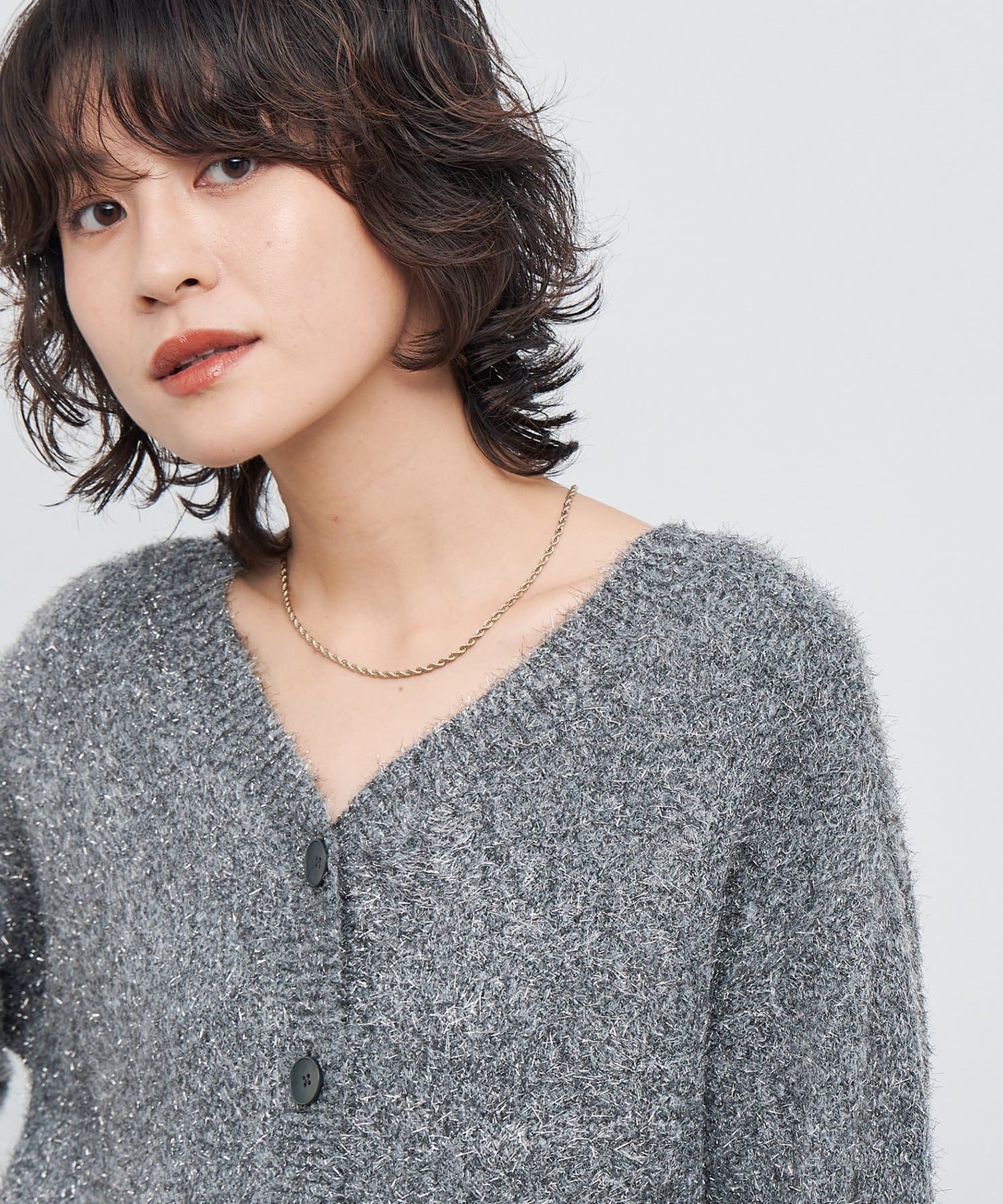 ・カシミヤ混のキラキラ素材のニットカーディガン