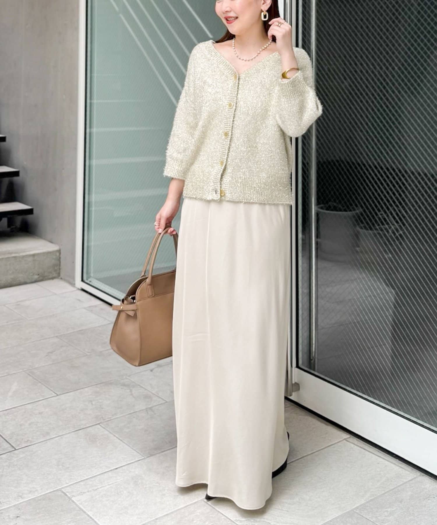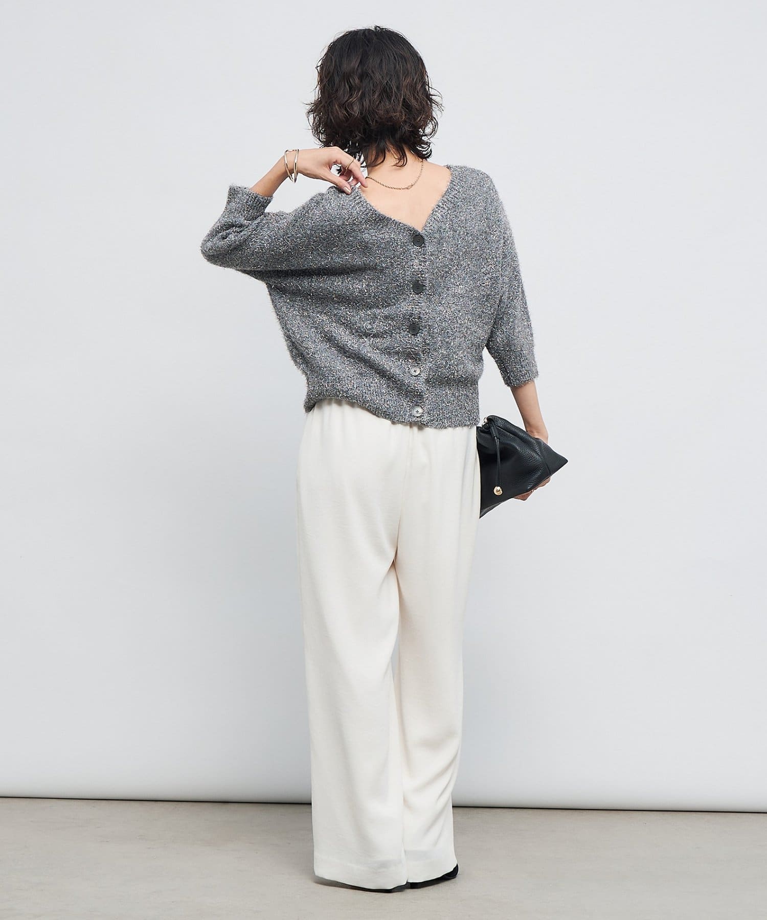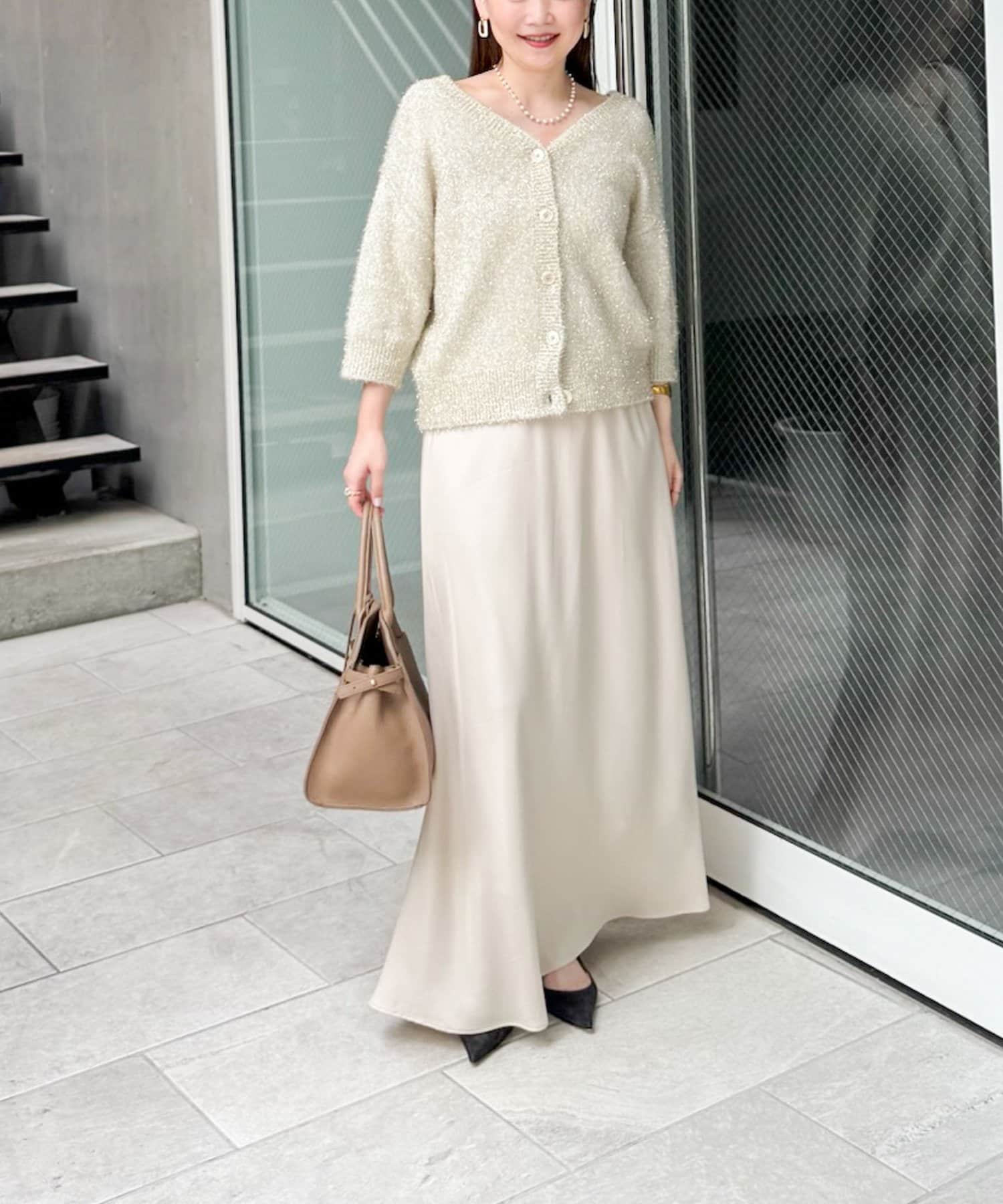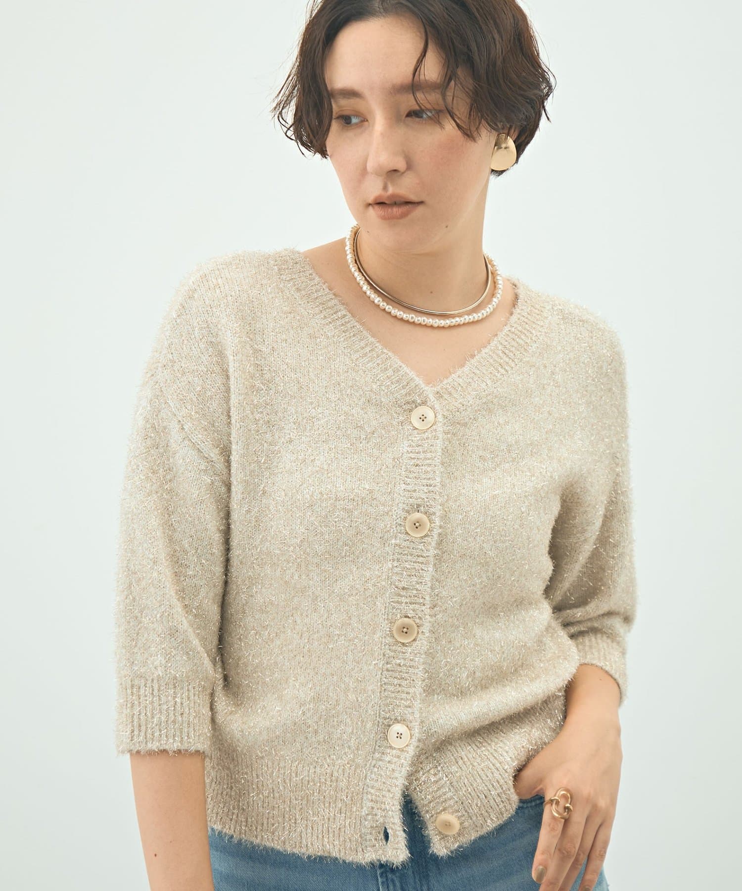 ・カシミヤ混のキラキラ素材のニットカーディガン
