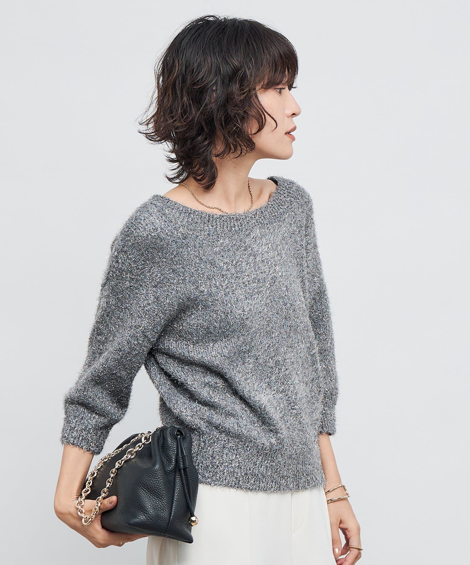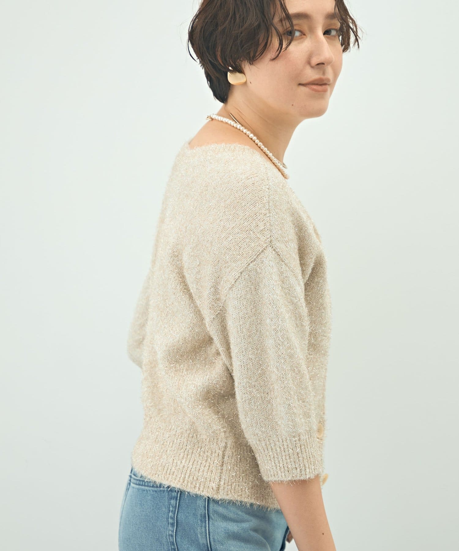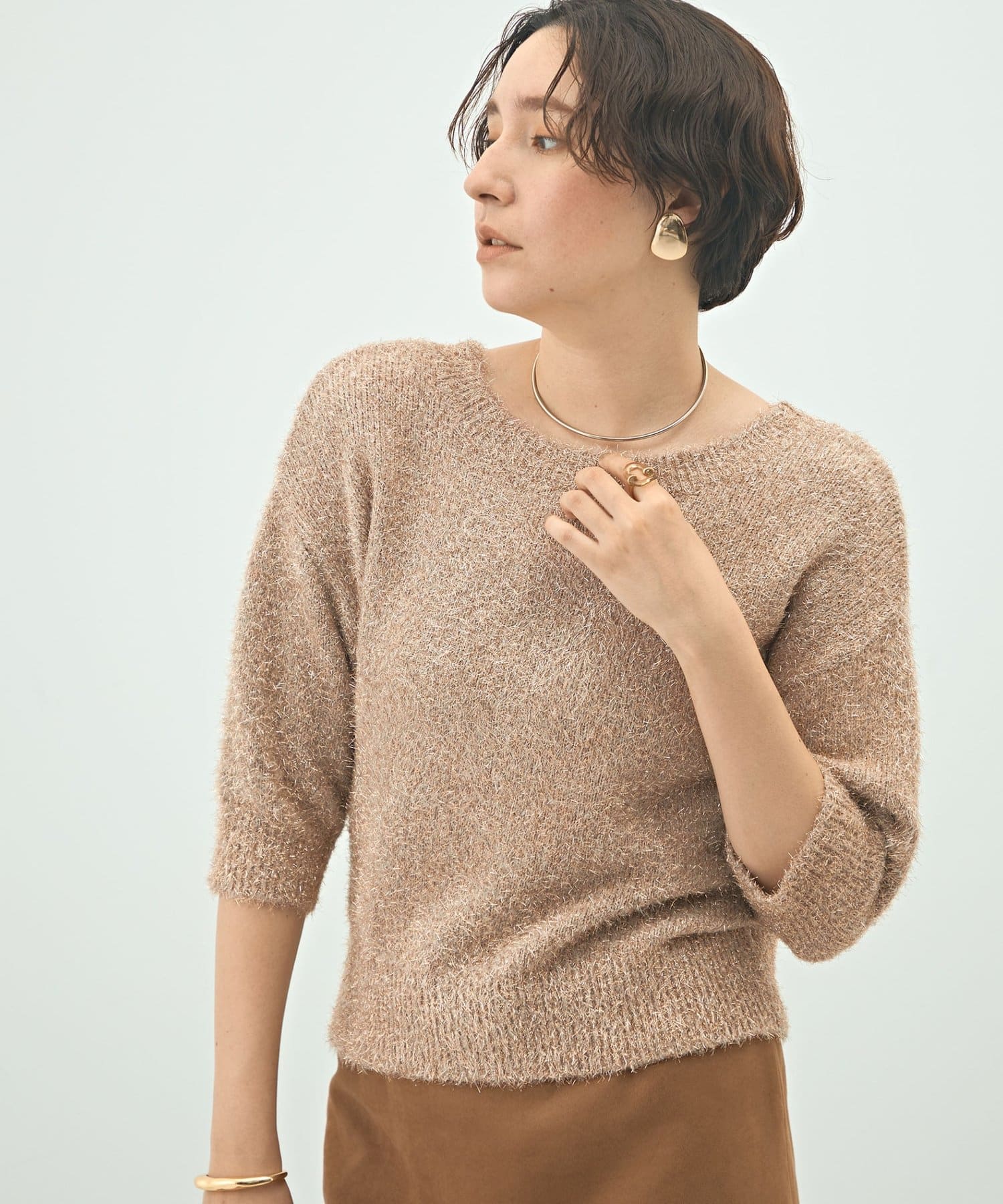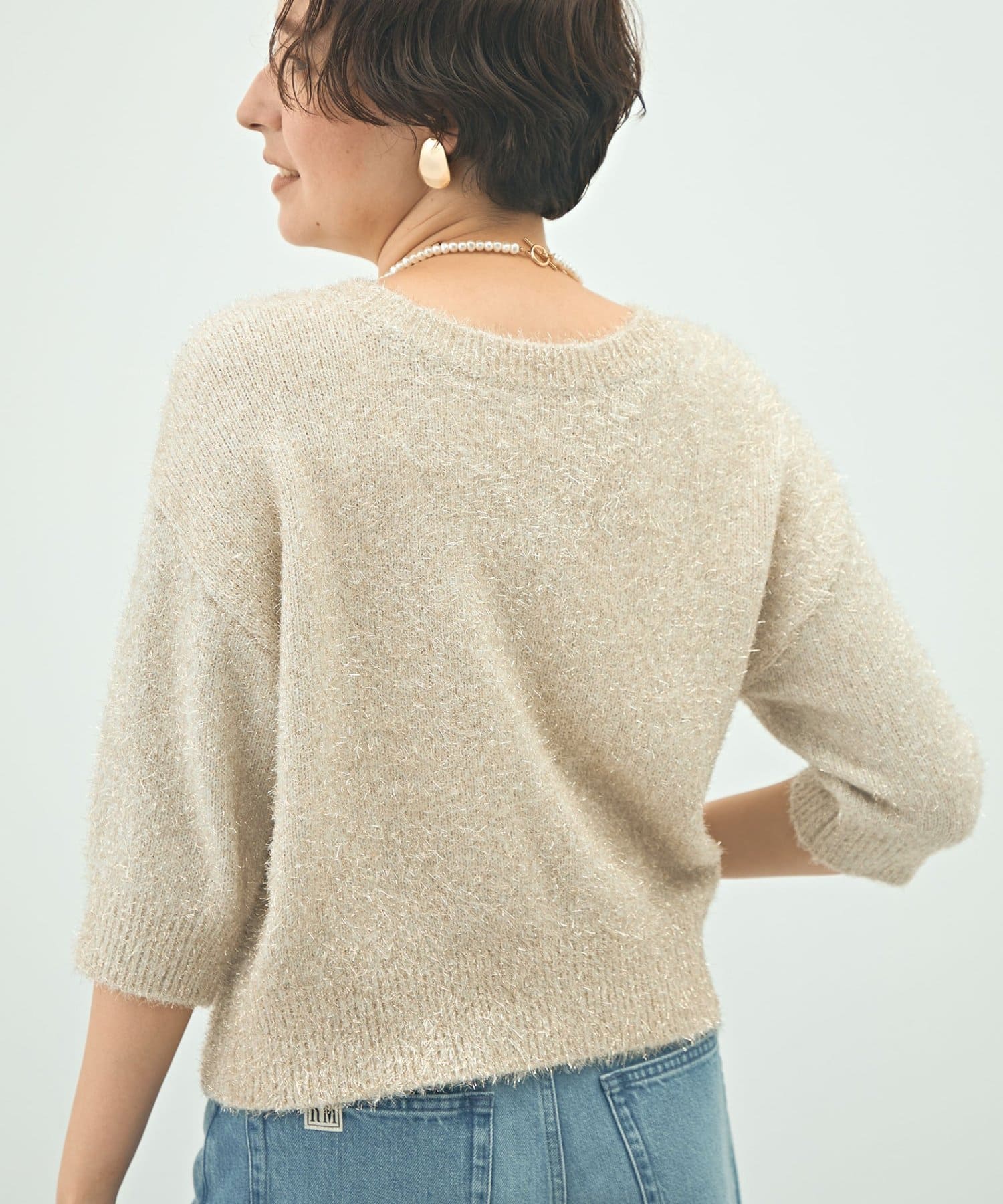 キラキラフェザー2WAY5分袖プルオーバーニット