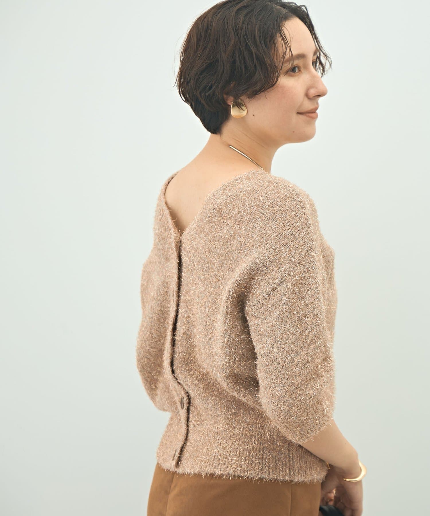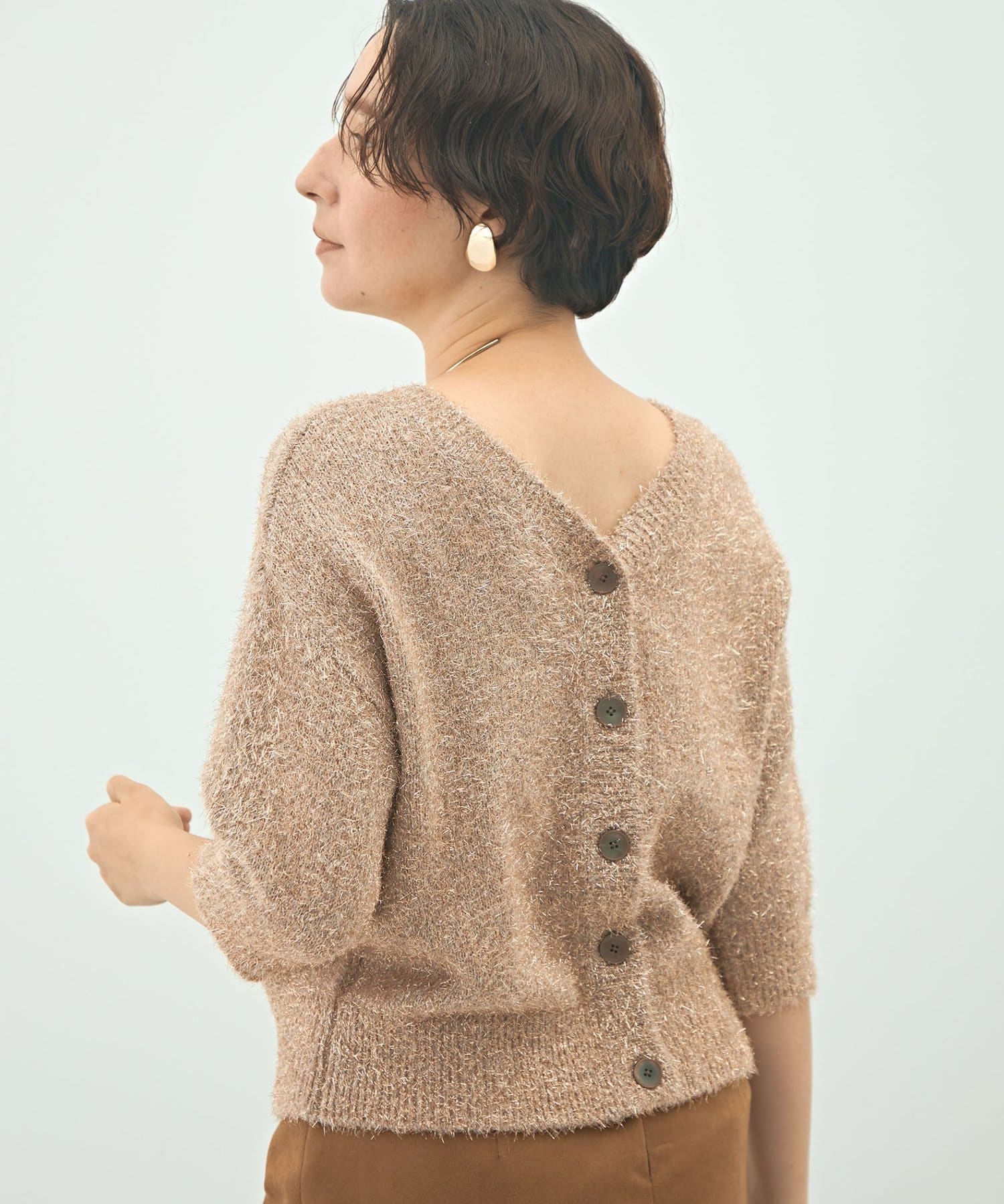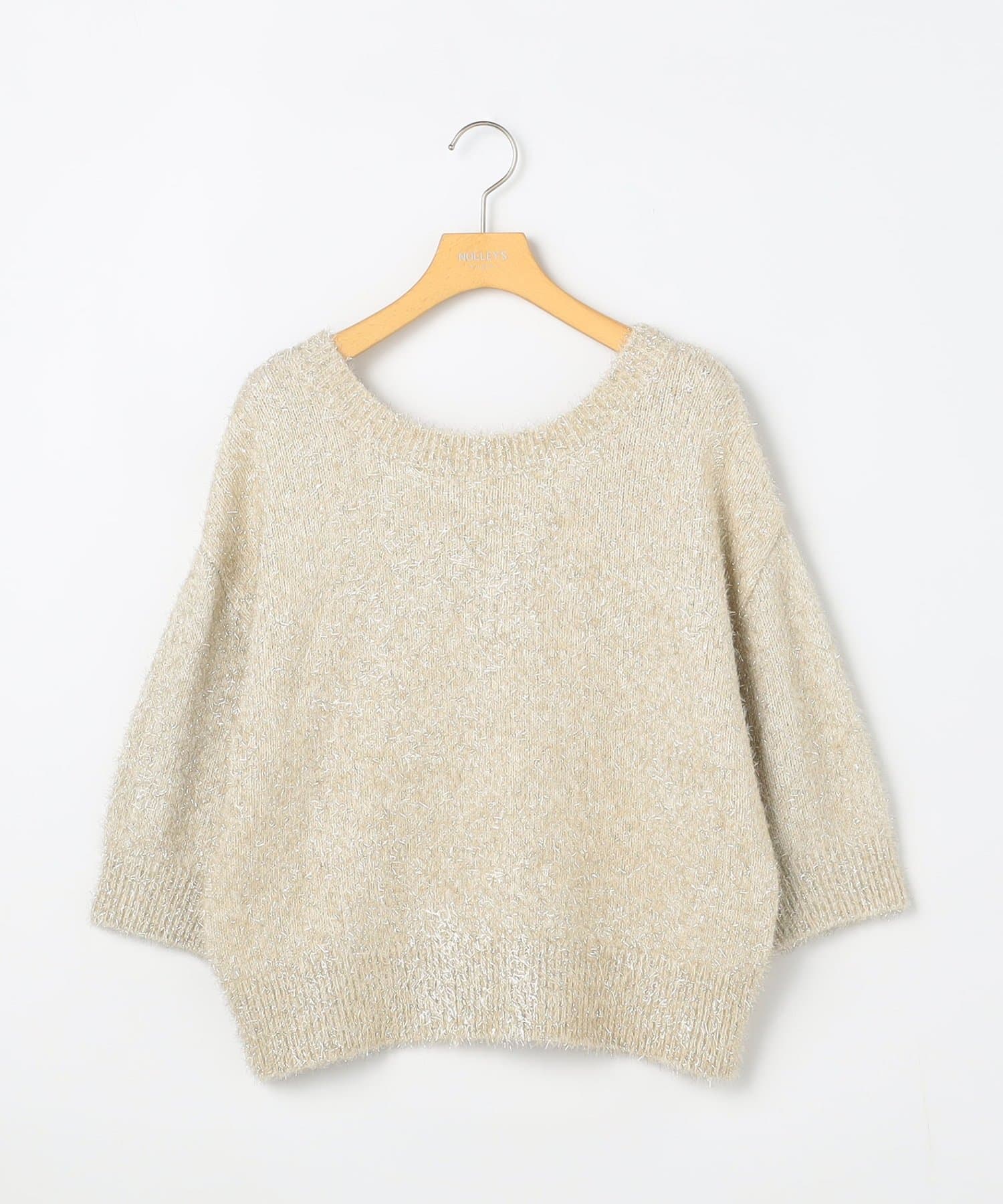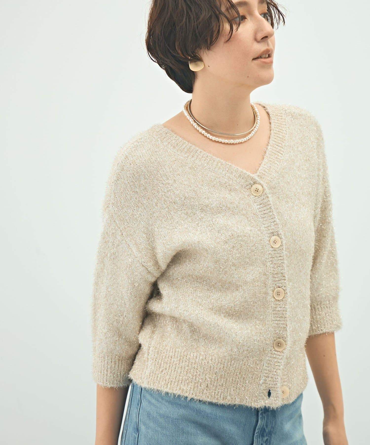 キラキラフェザー2WAY5分袖プルオーバーニット