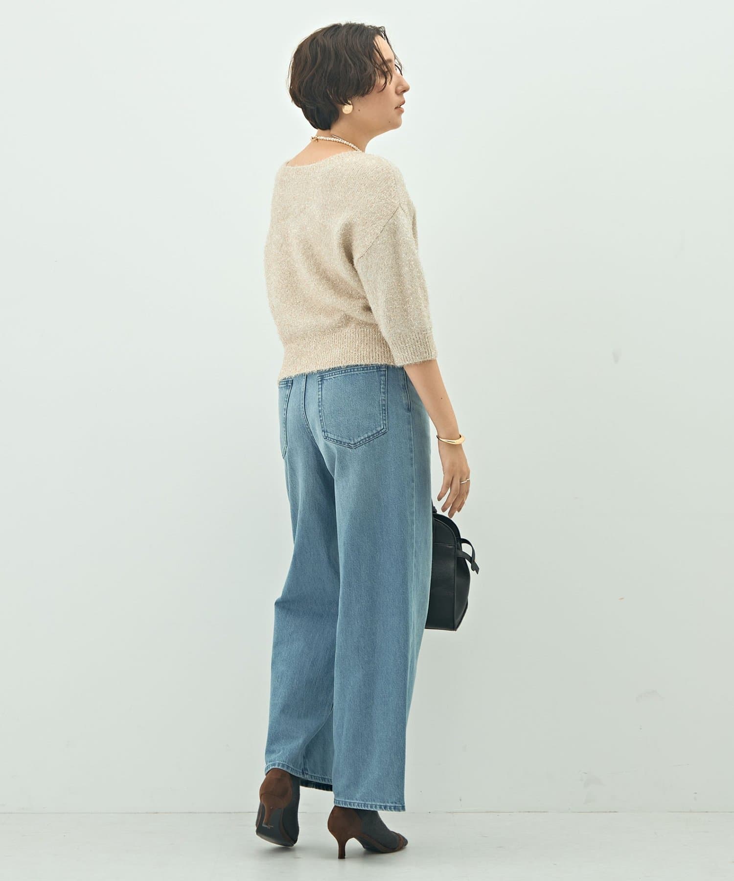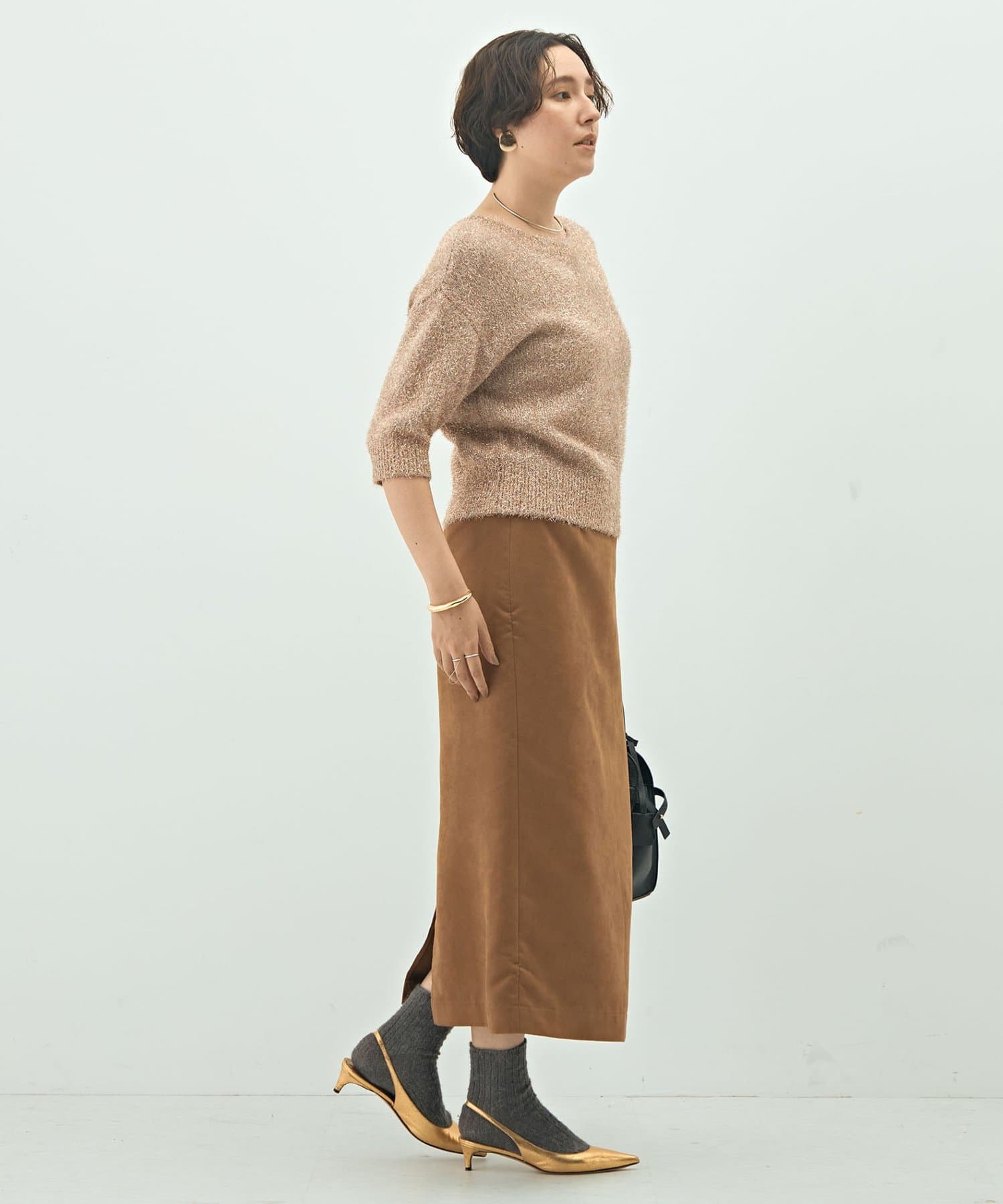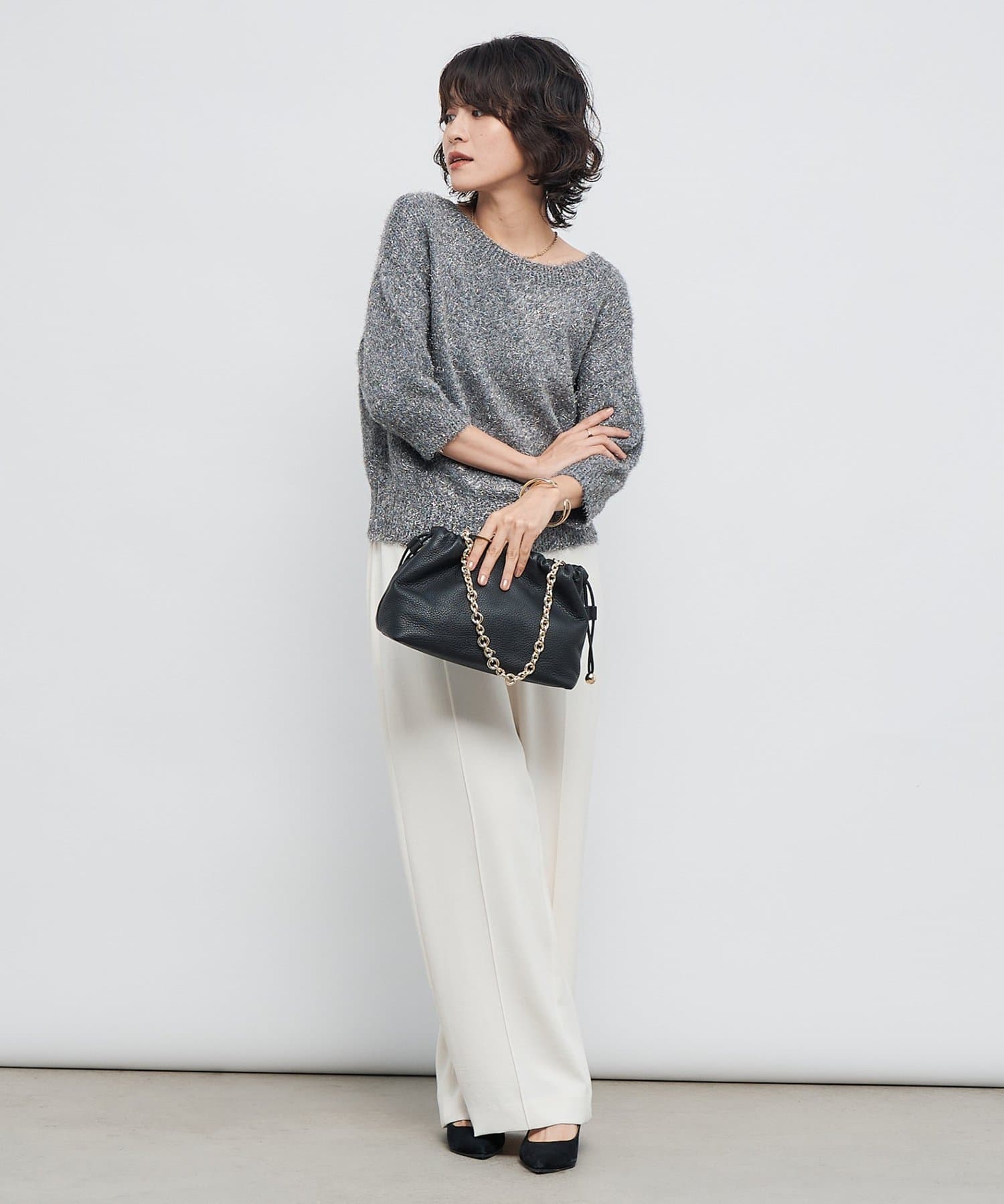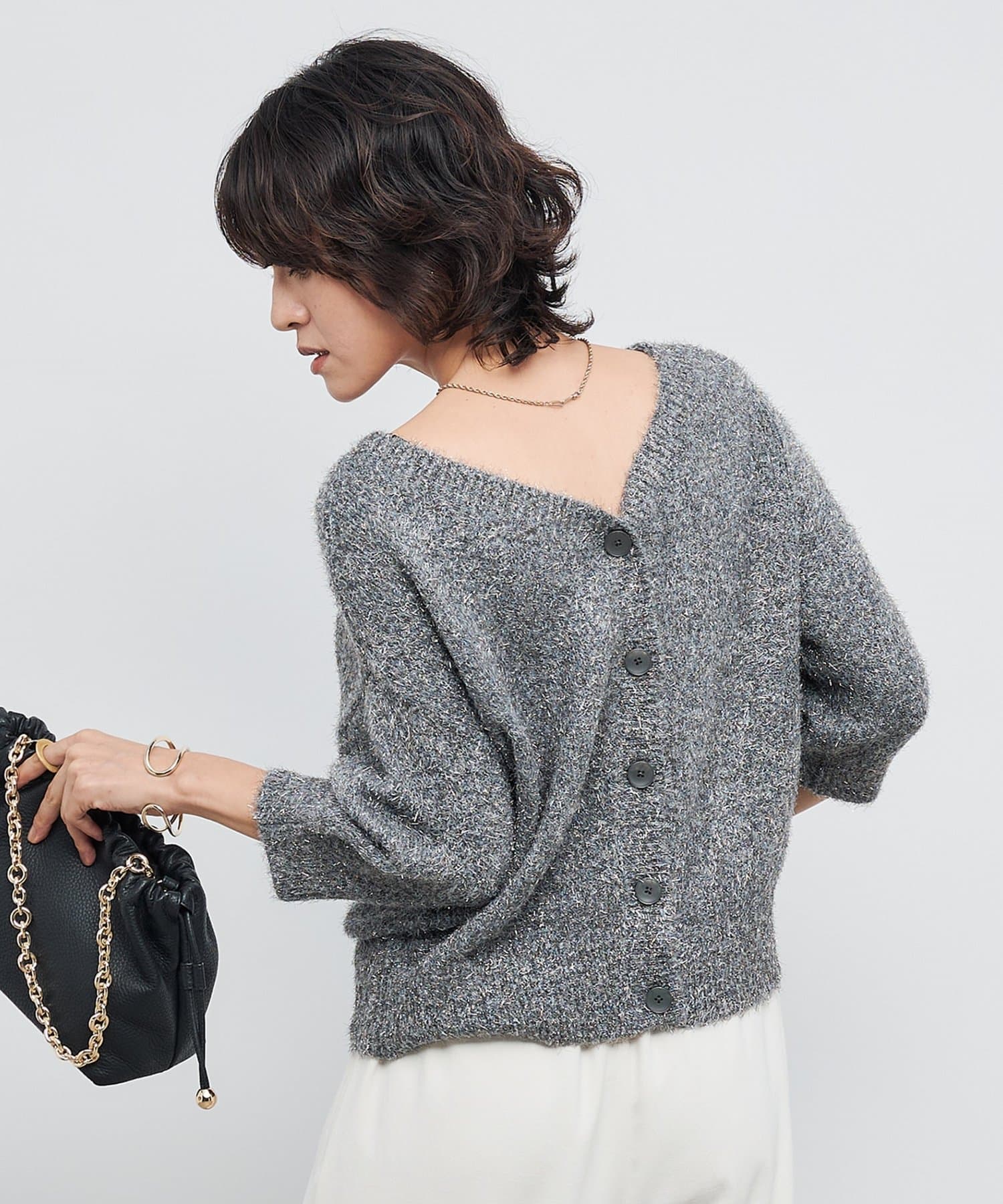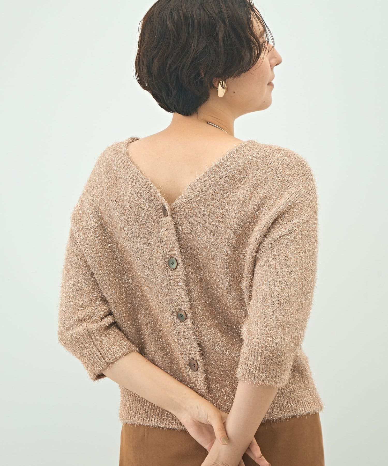 キラキラフェザー2WAY5分袖プルオーバーニット