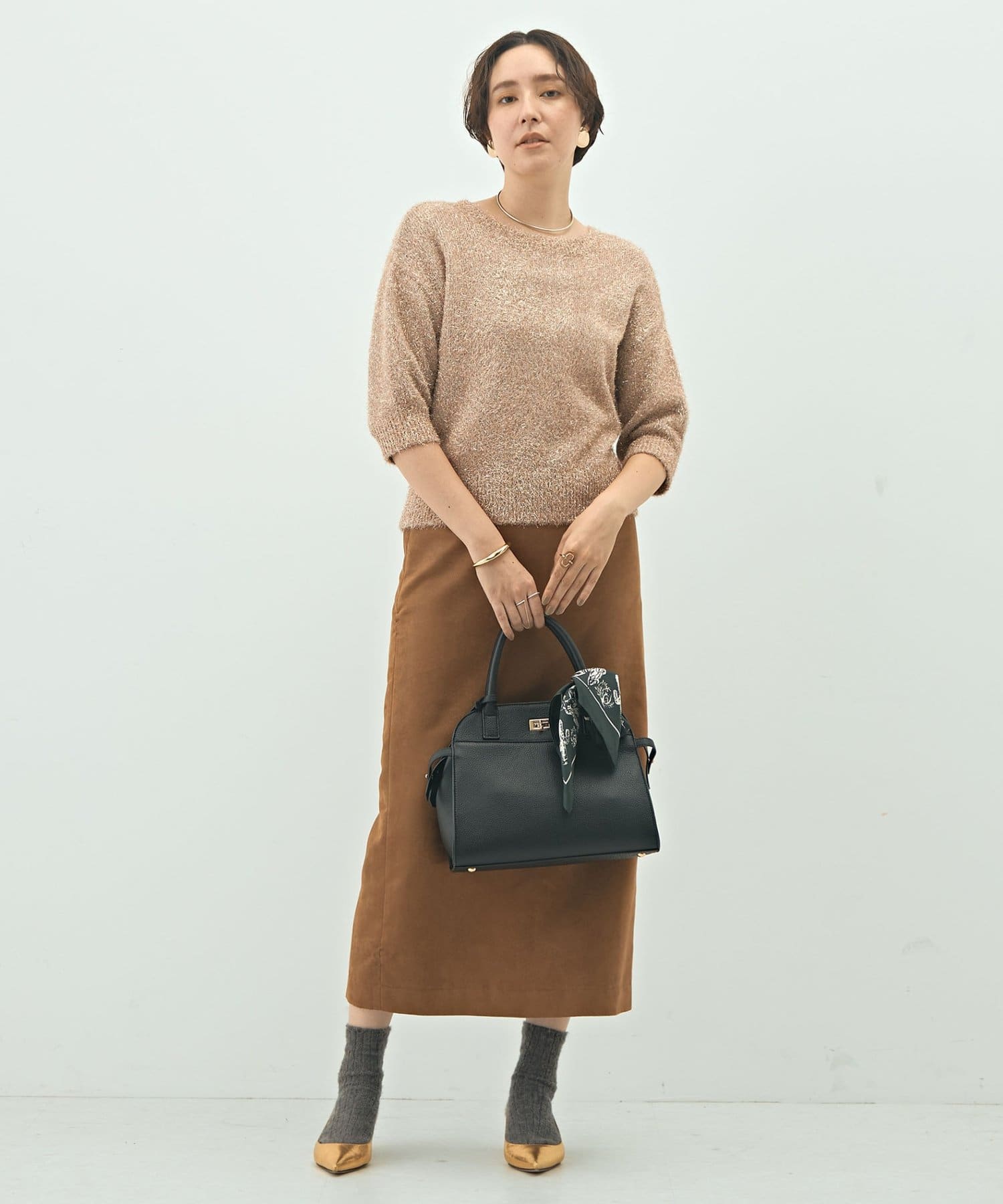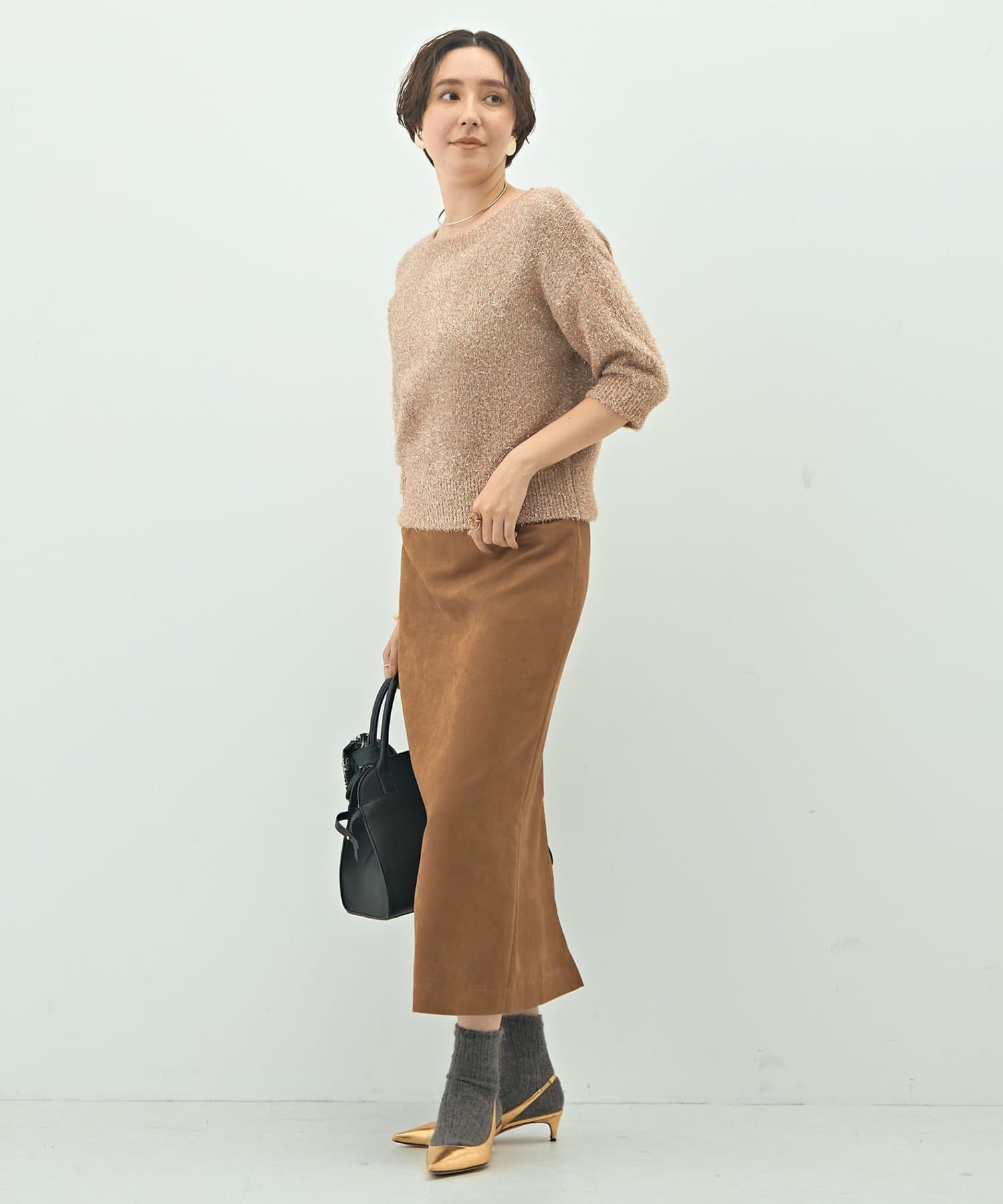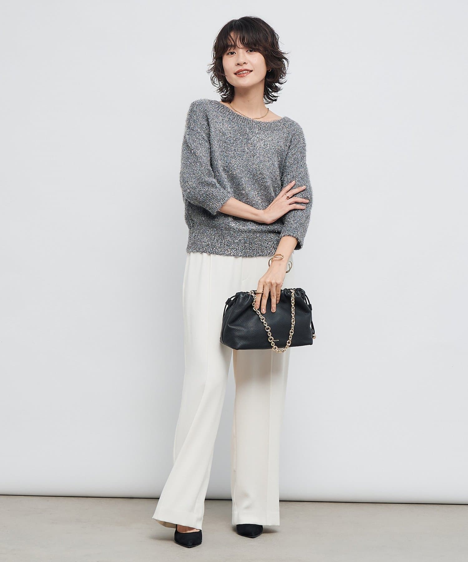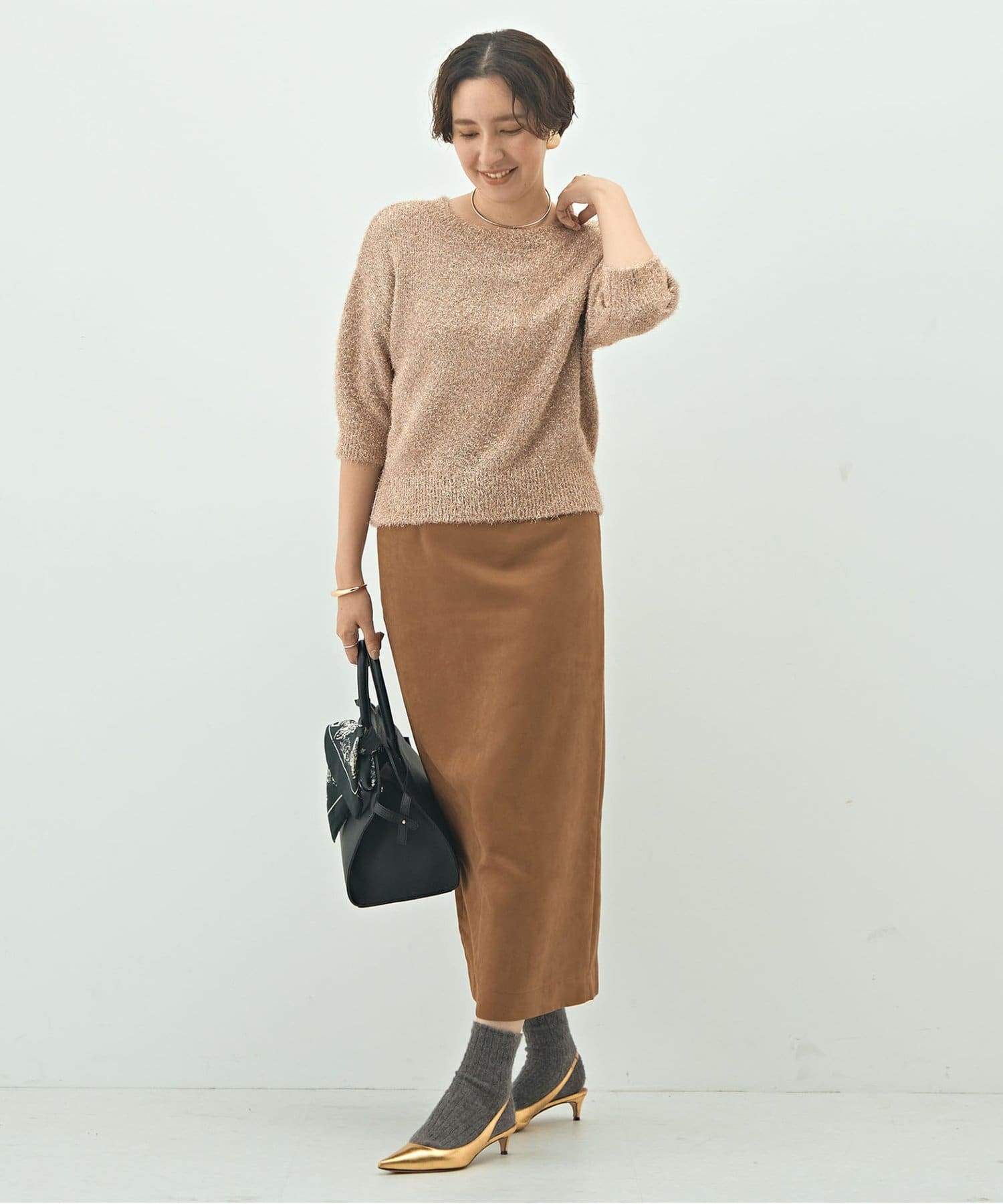キラキラフェザー2WAY5分袖プルオーバーニット