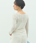 ・カシミヤ、シルクブレンドの柔らかくラグジュアリーな風合いのカットソー素材を使用したドレープデザインのロンT