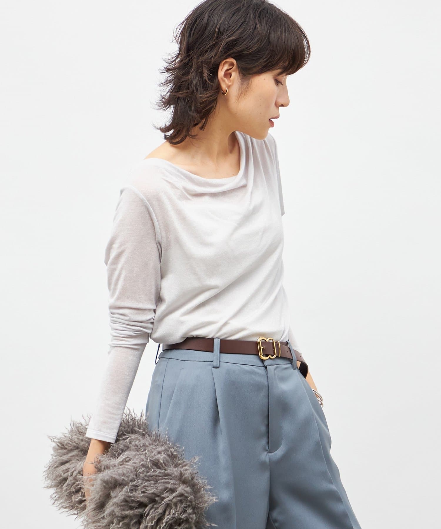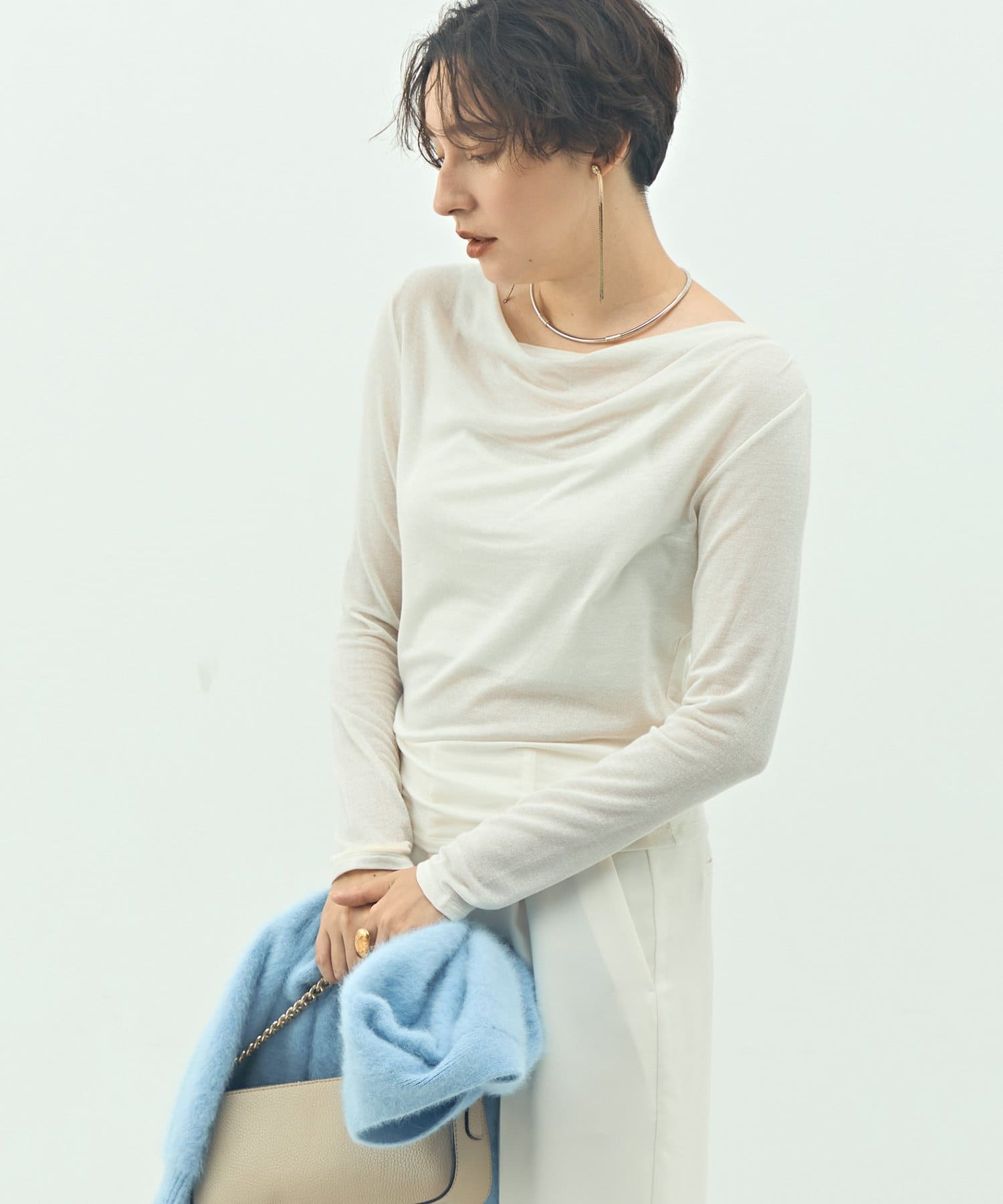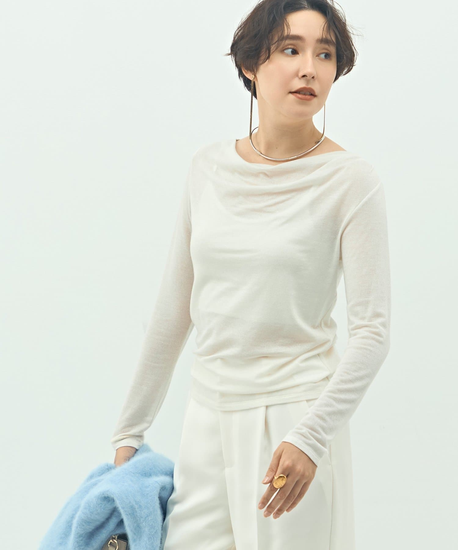 ・素材の落ち感を生かしたドレープがポイントの今年らしい1枚
