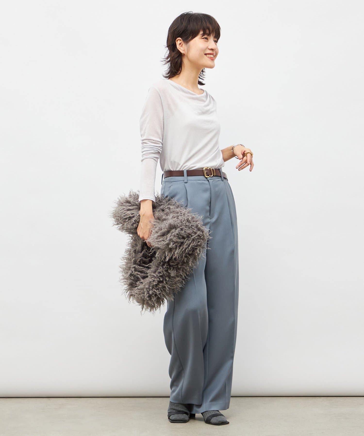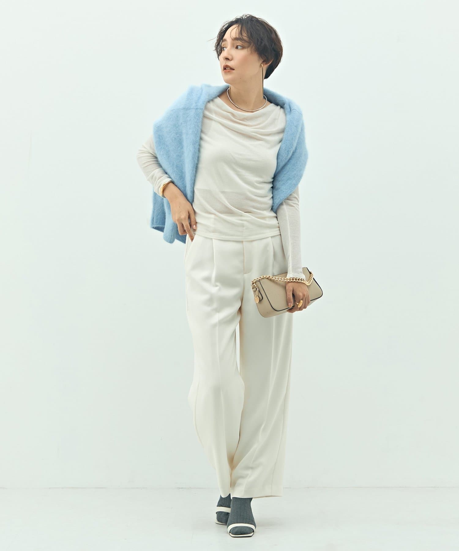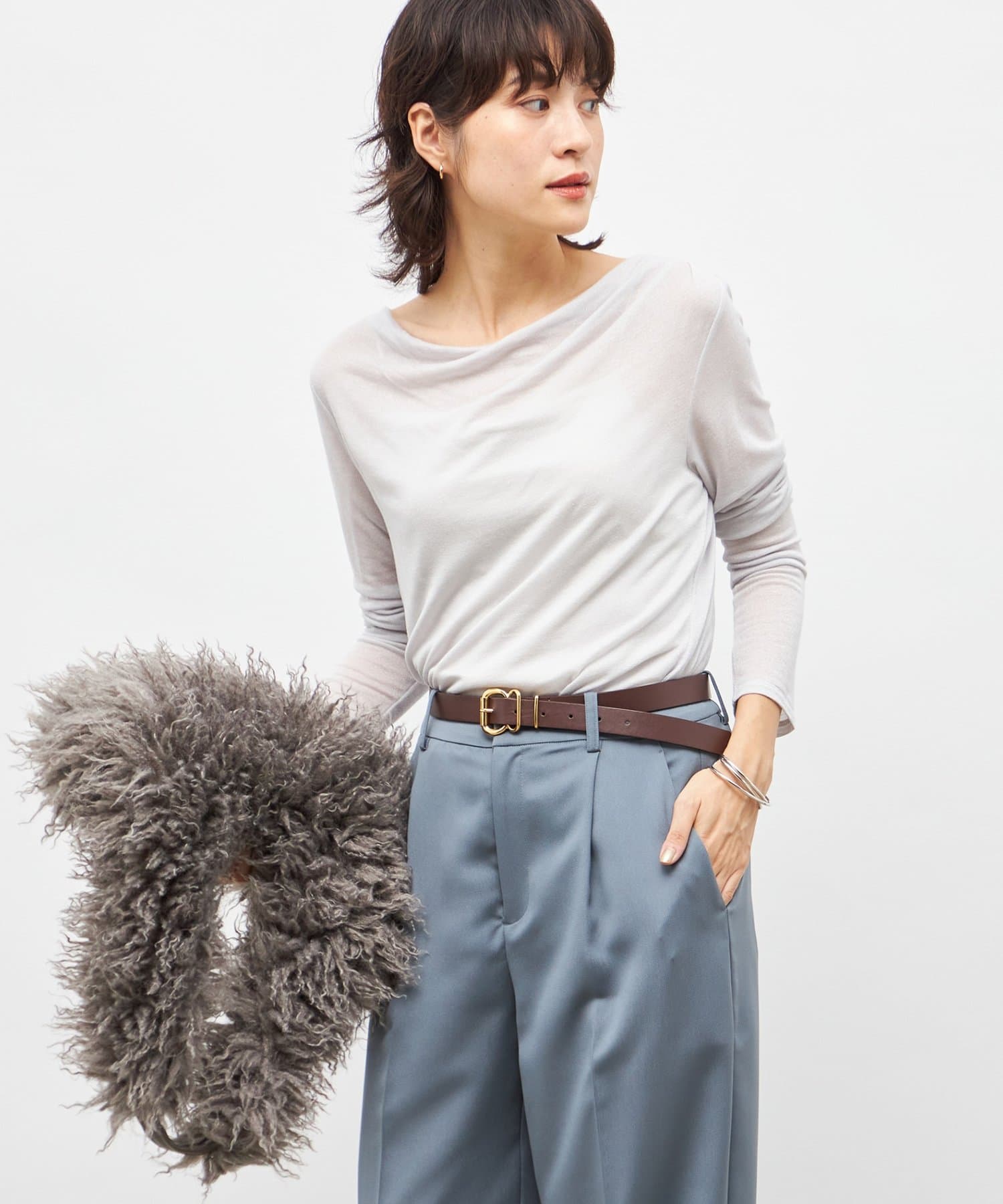 ・素材の落ち感を生かしたドレープがポイントの今年らしい1枚