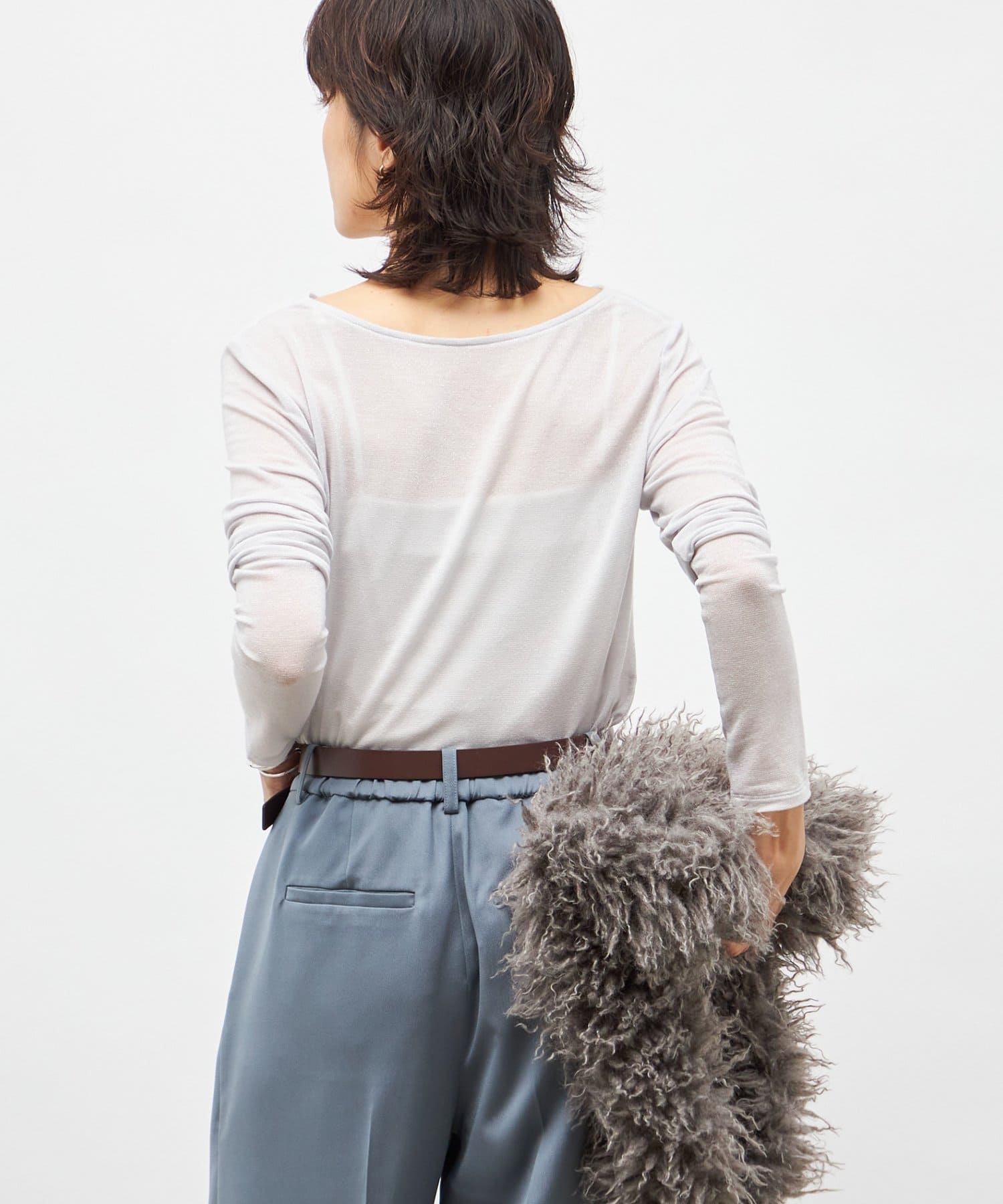 ウォッシャブルカシミヤシルクシアーラメドレープロンT
