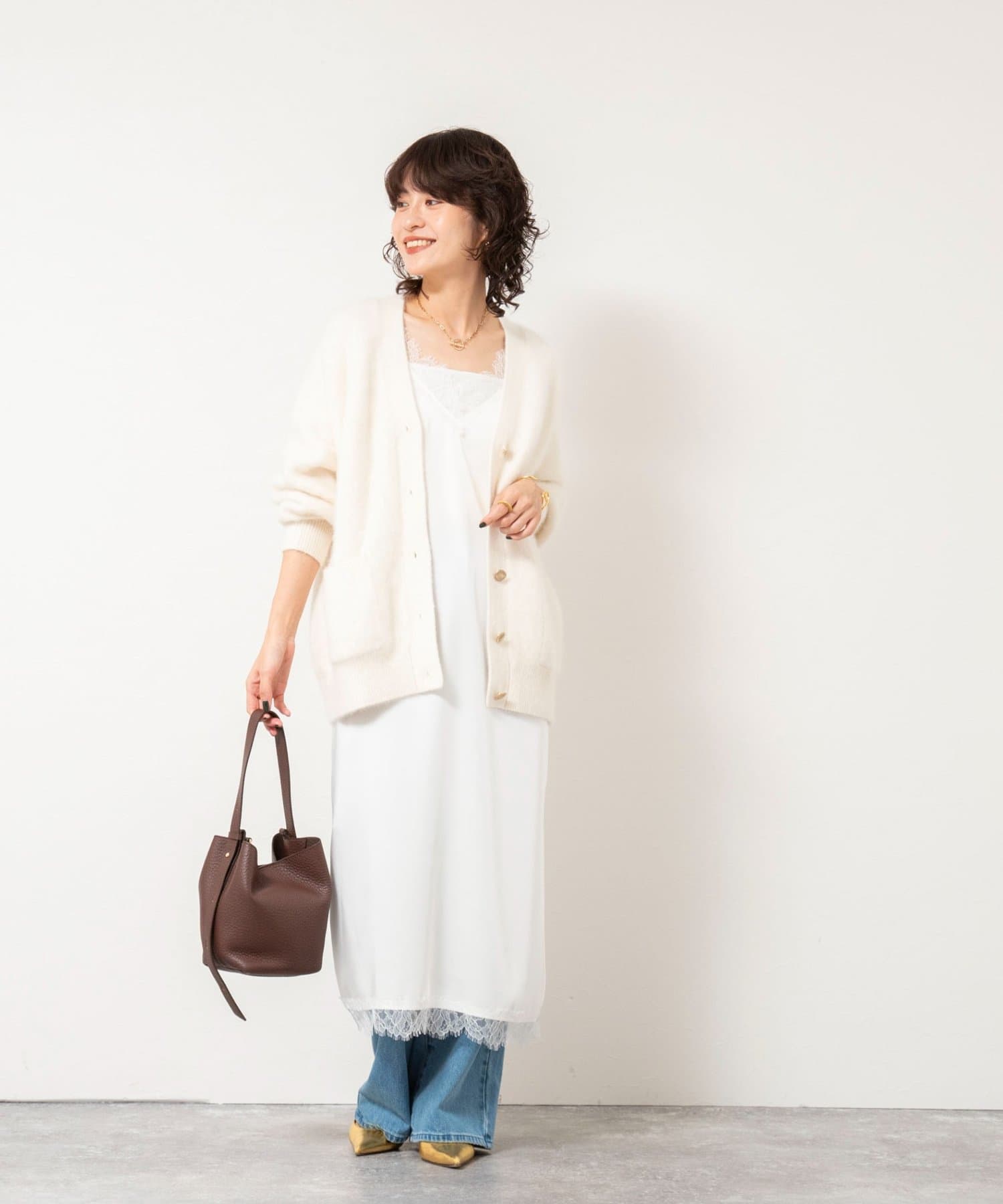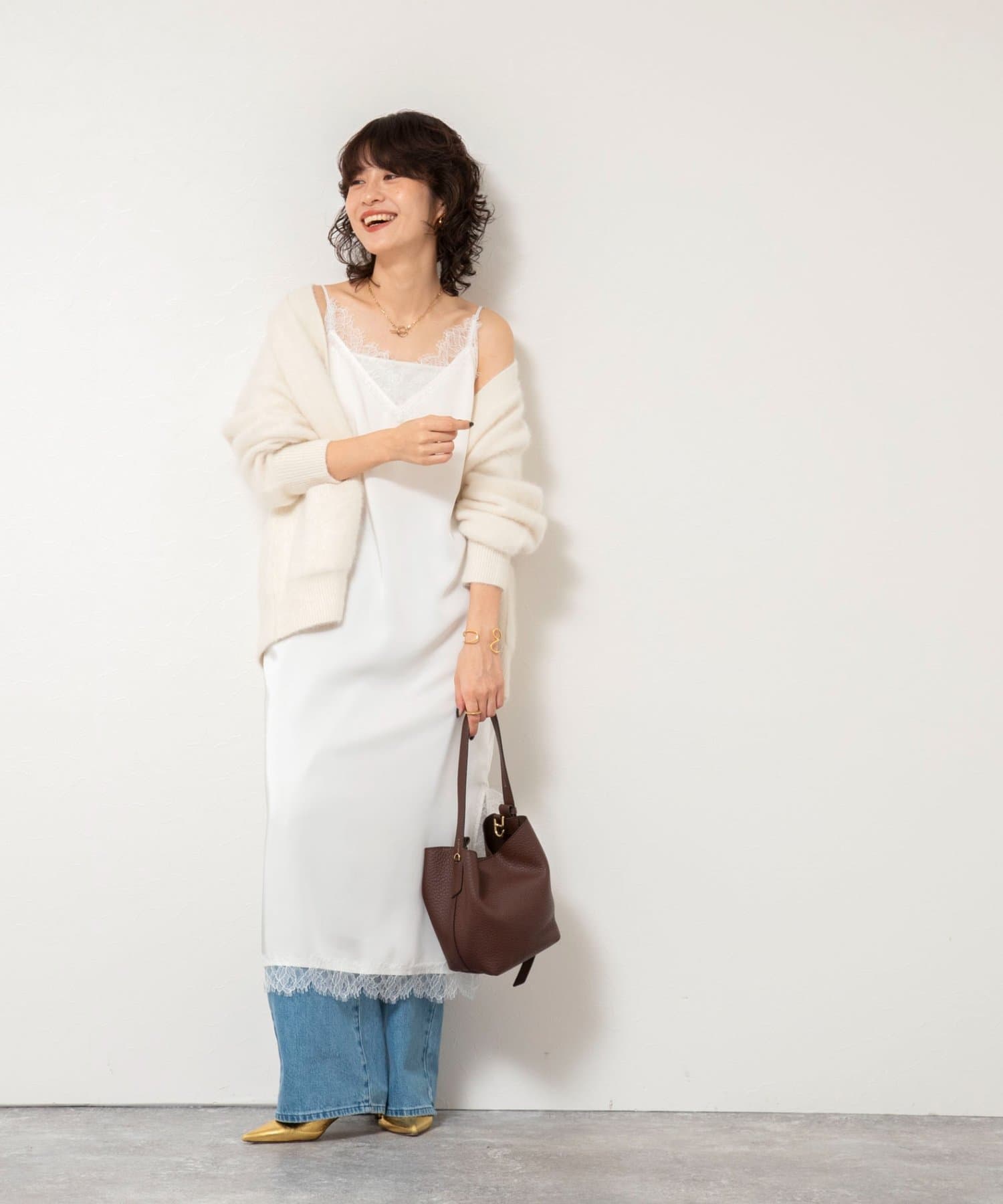 ・パンツとのレイヤードで上品さとカジュアルさのMIXコーデもおすすめ