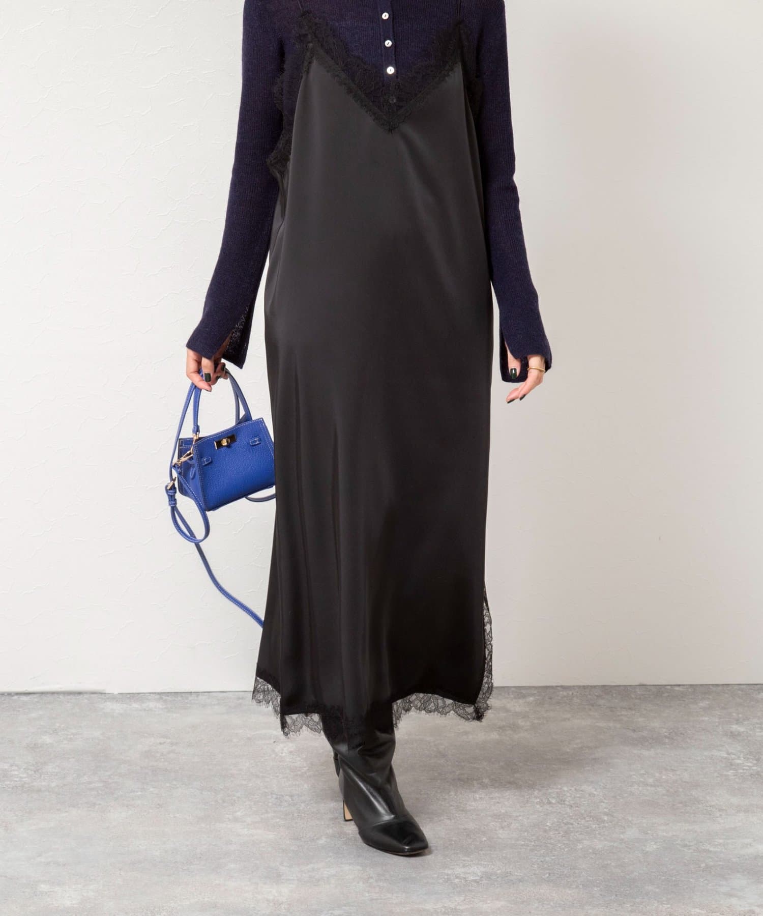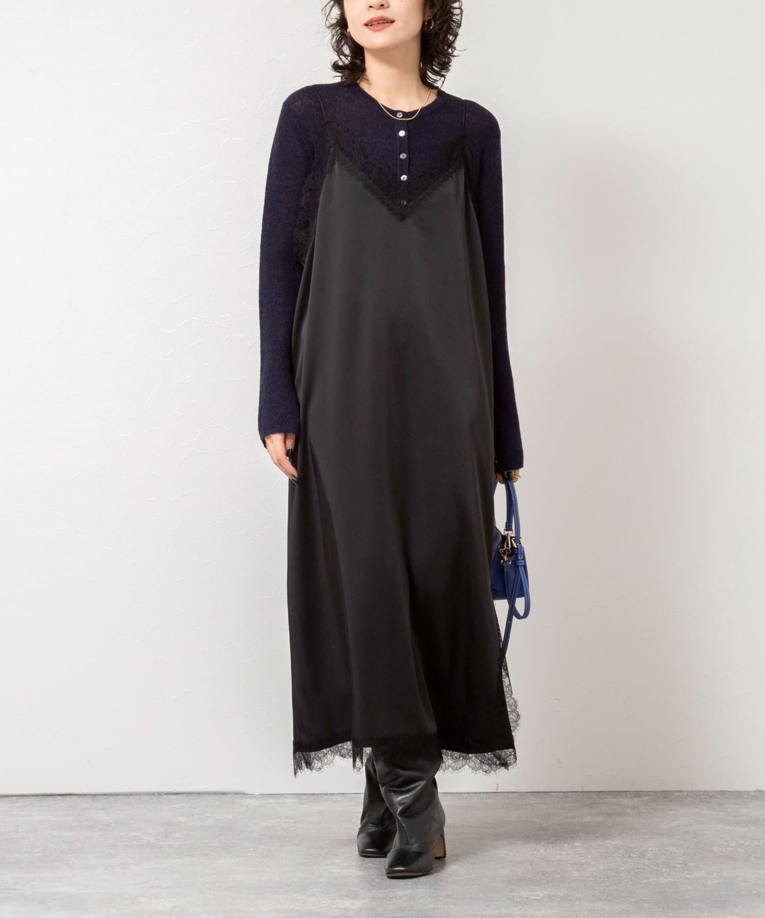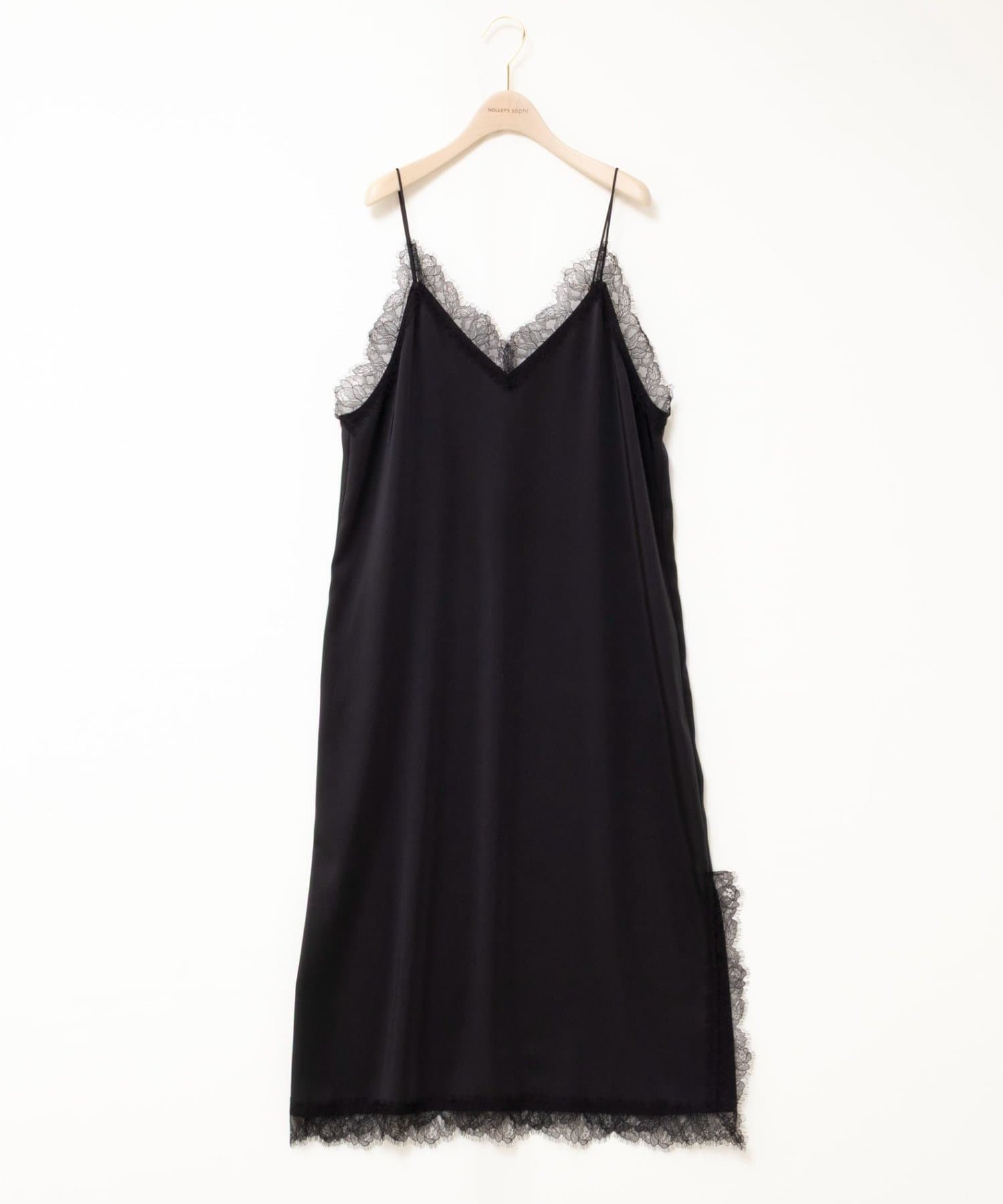 ウォッシャブルトリミングレースサテンキャミワンピース