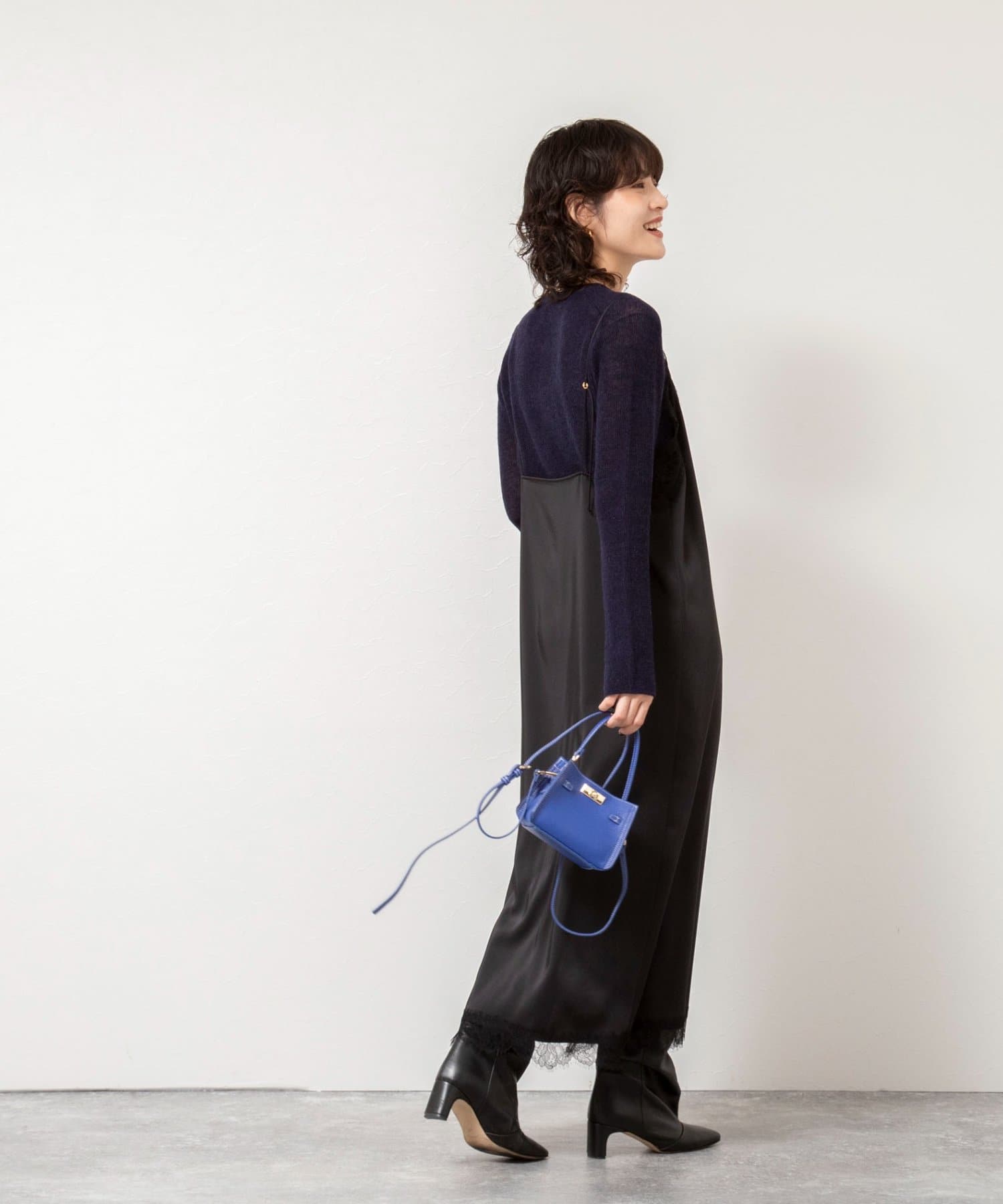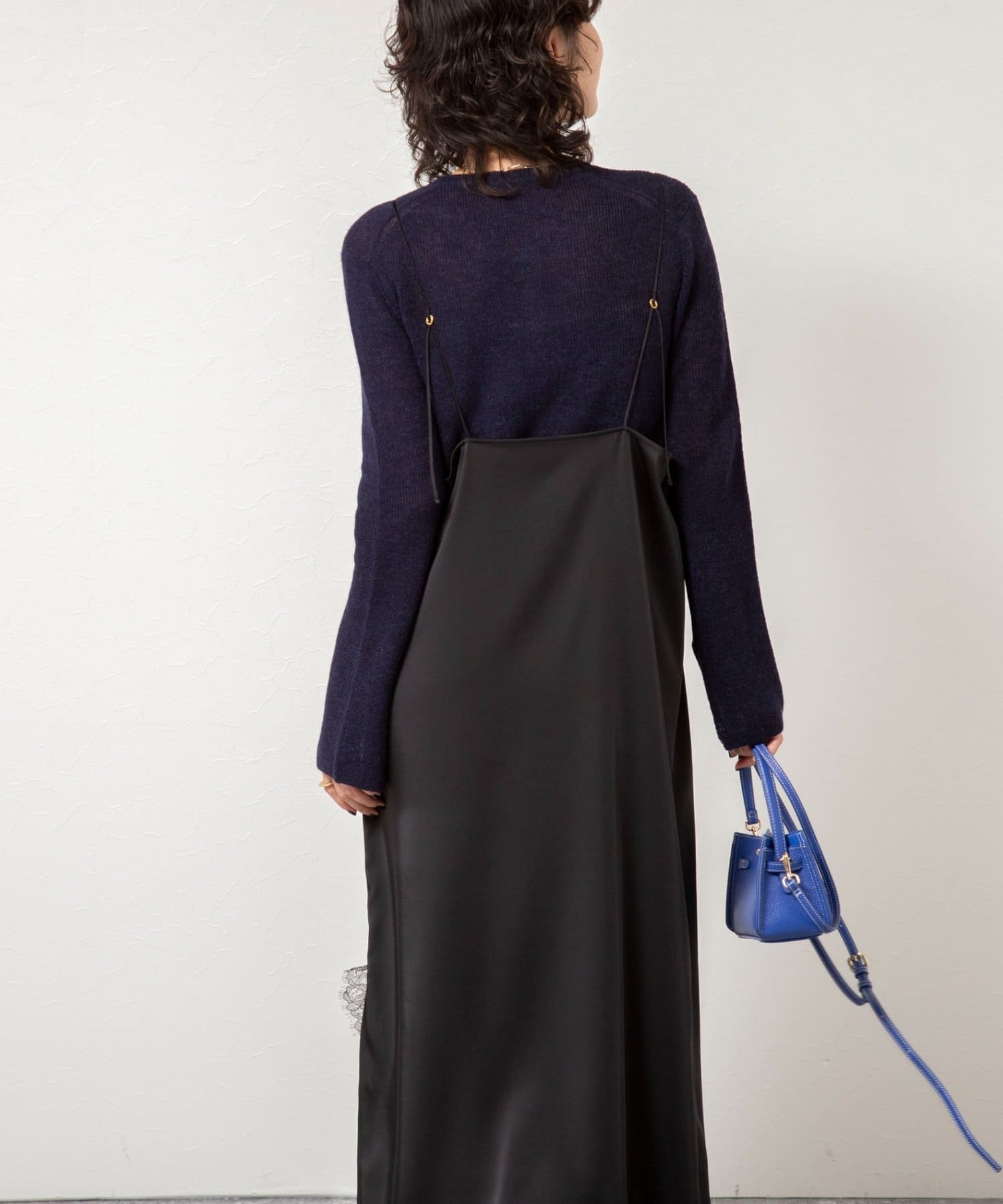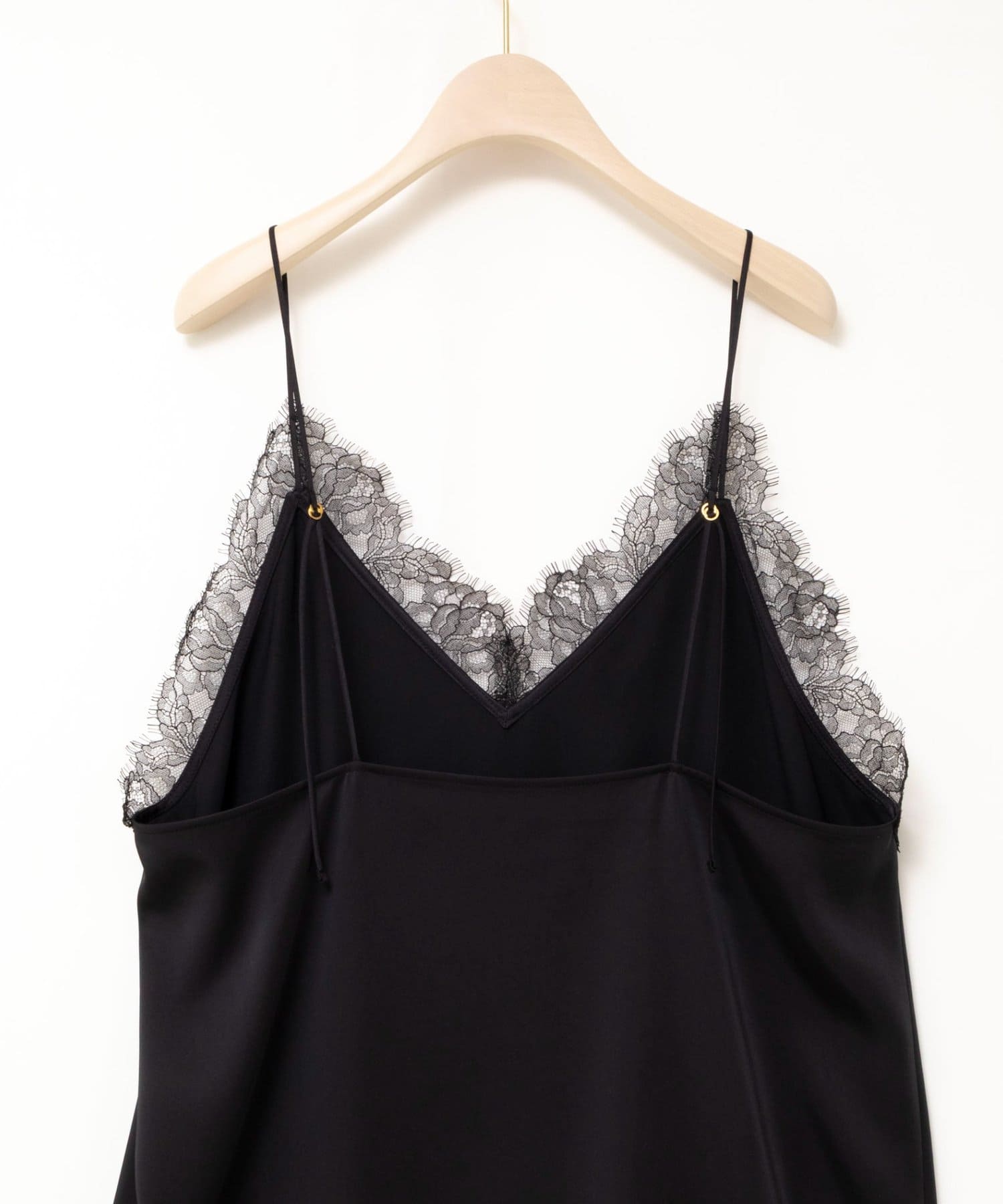 ・上品な光沢感と繊細なレースの組み合わせが魅力的なキャミワンピース