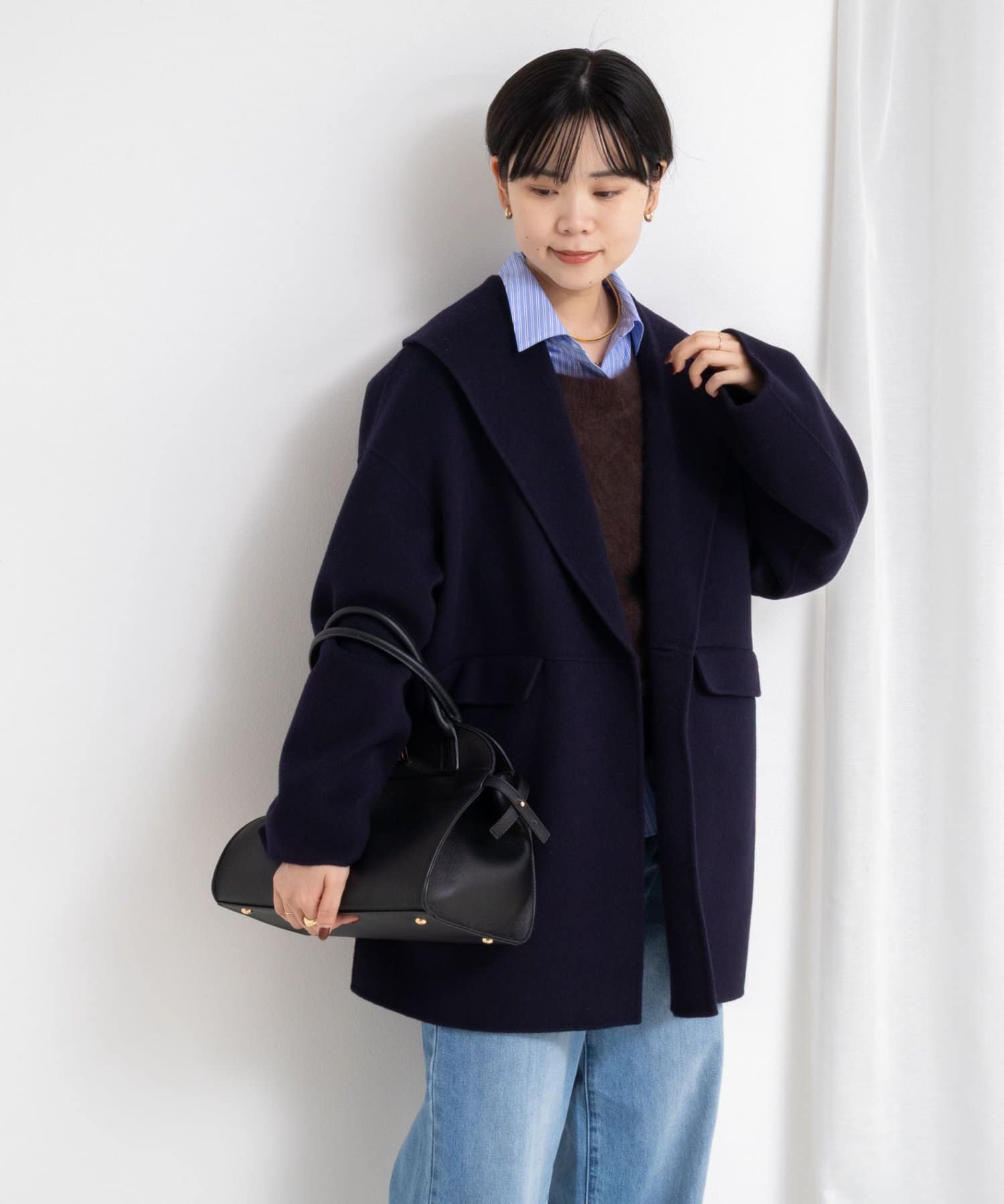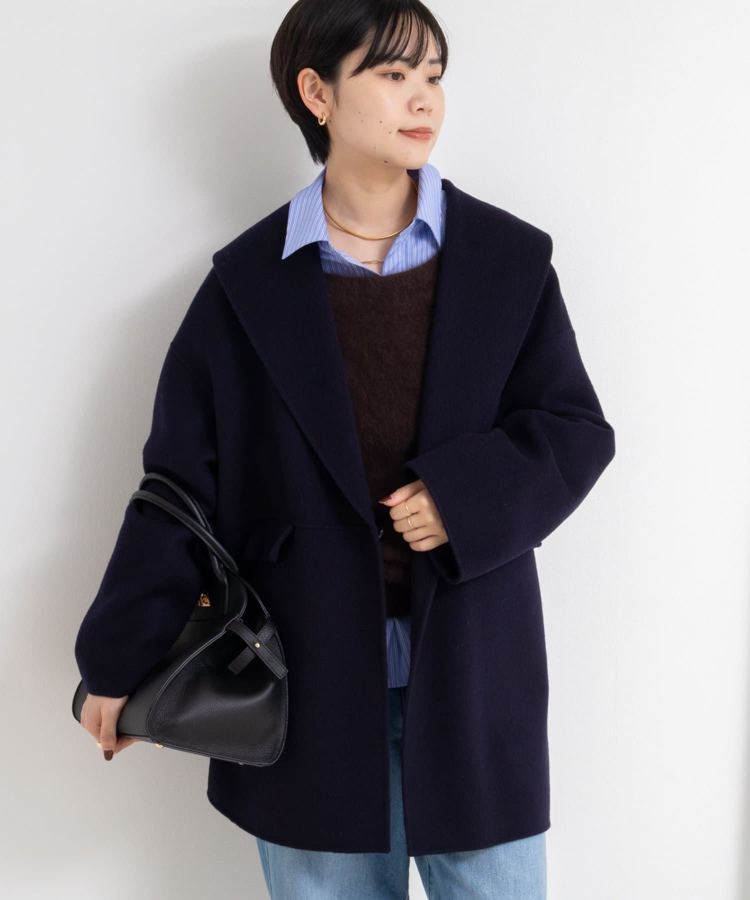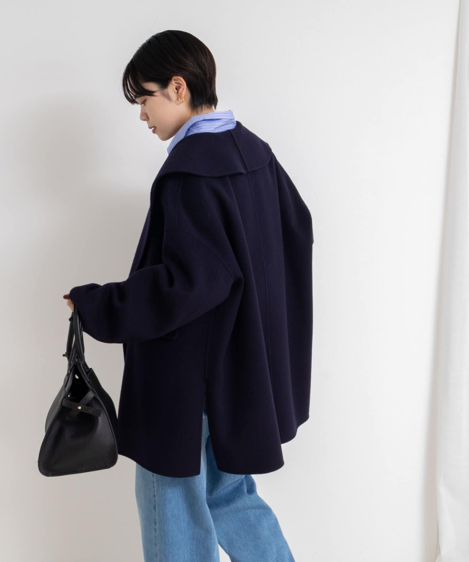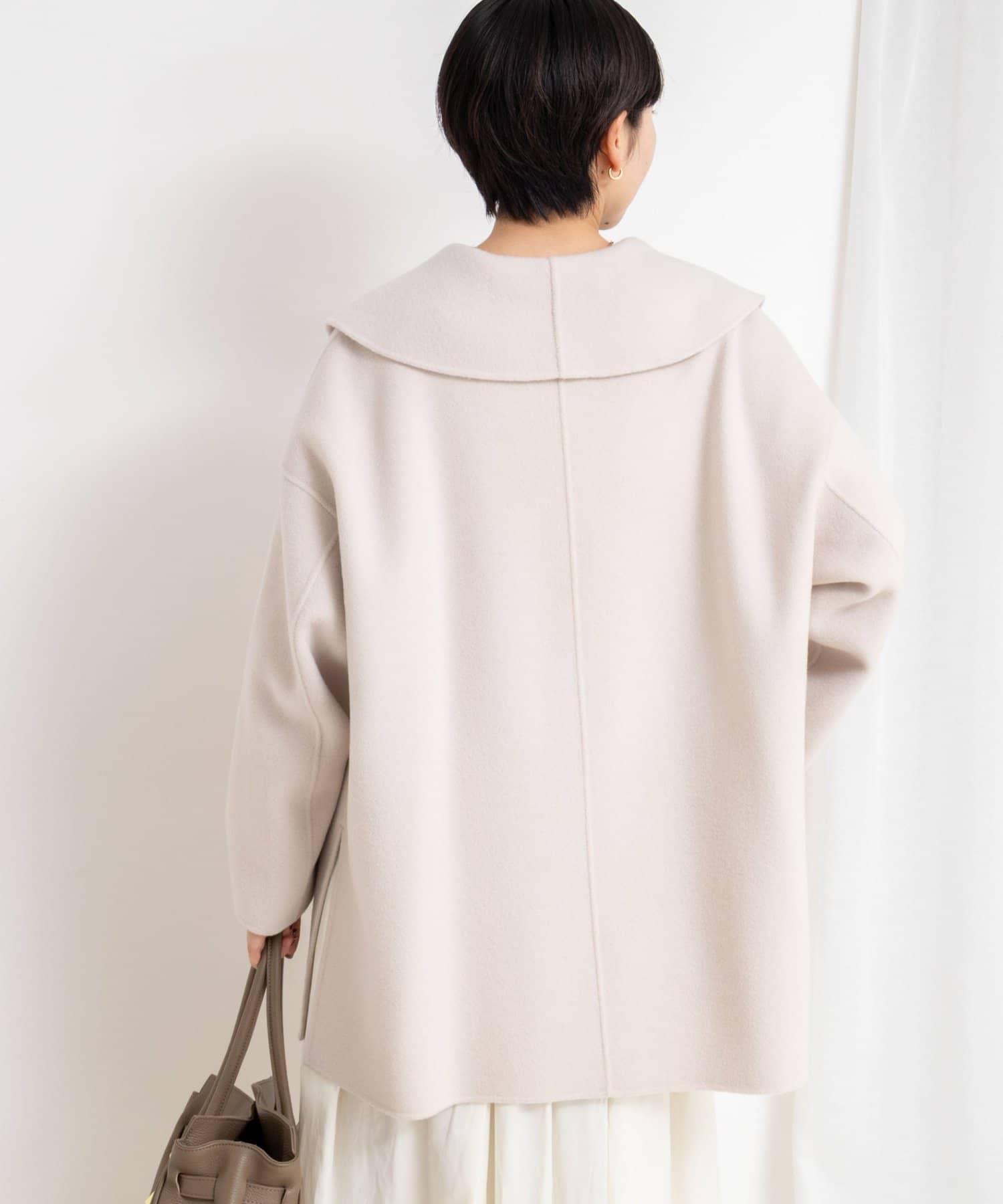 ・背抜き仕様で、リバーコートならではの軽い仕立てを生かしながら、寒い時期にも着用できるのが嬉しいコート