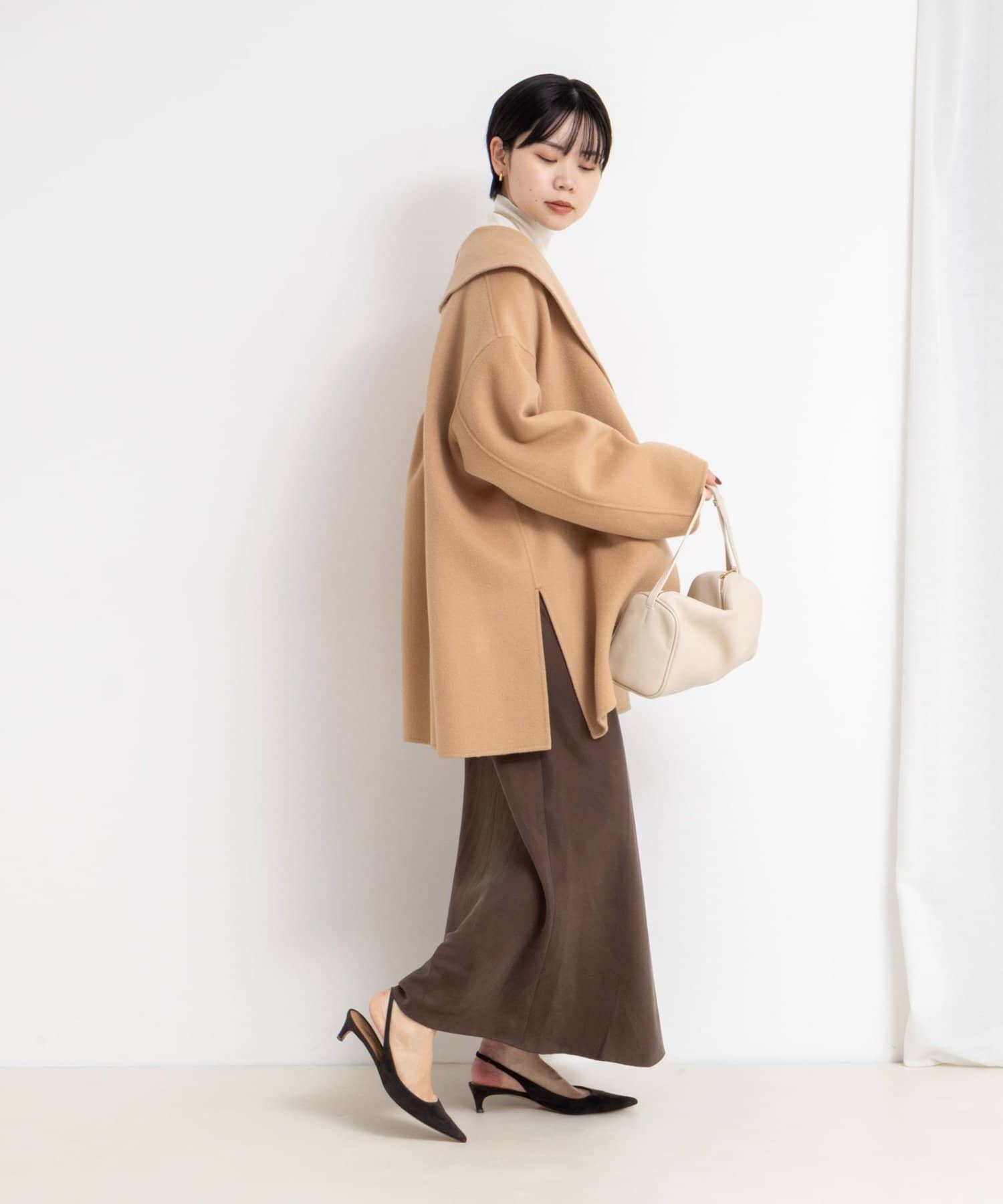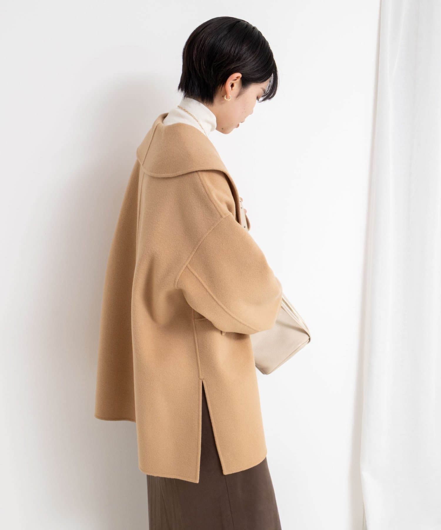 ・程よいオーバーサイズとサイドスリットで、自然に垢ぬけ感の出る拘りのシルエット