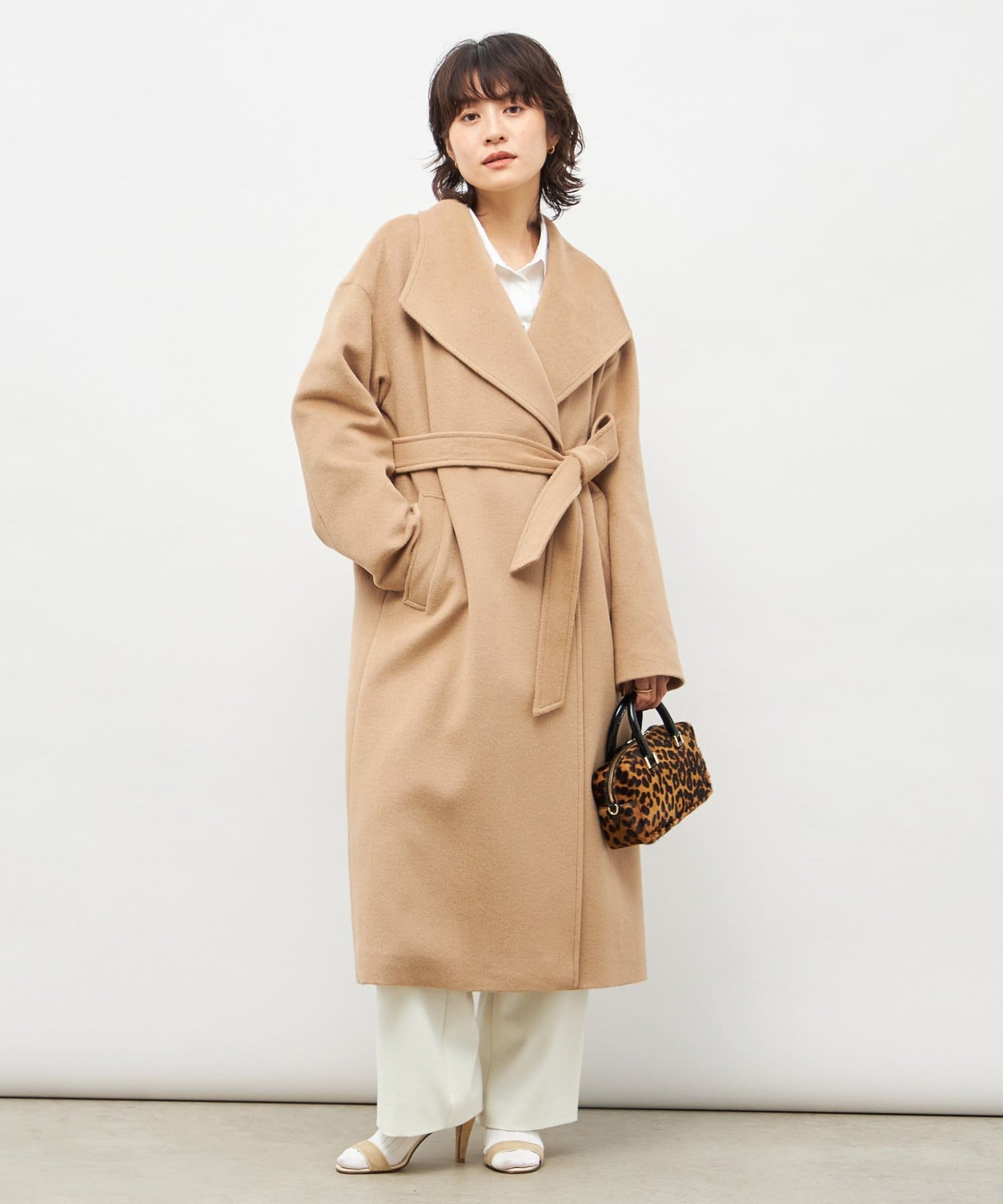 ・大き目の衿とベルテッドデザインが、上品で優雅な雰囲気を放つ、大人の女性にぴったりのクラッシーなコート