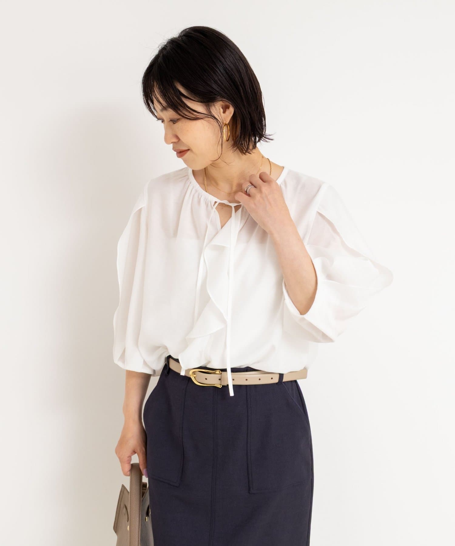 ・袖のスリットもポイントで、気になる二の腕周りをカバーしてくれるデザイン