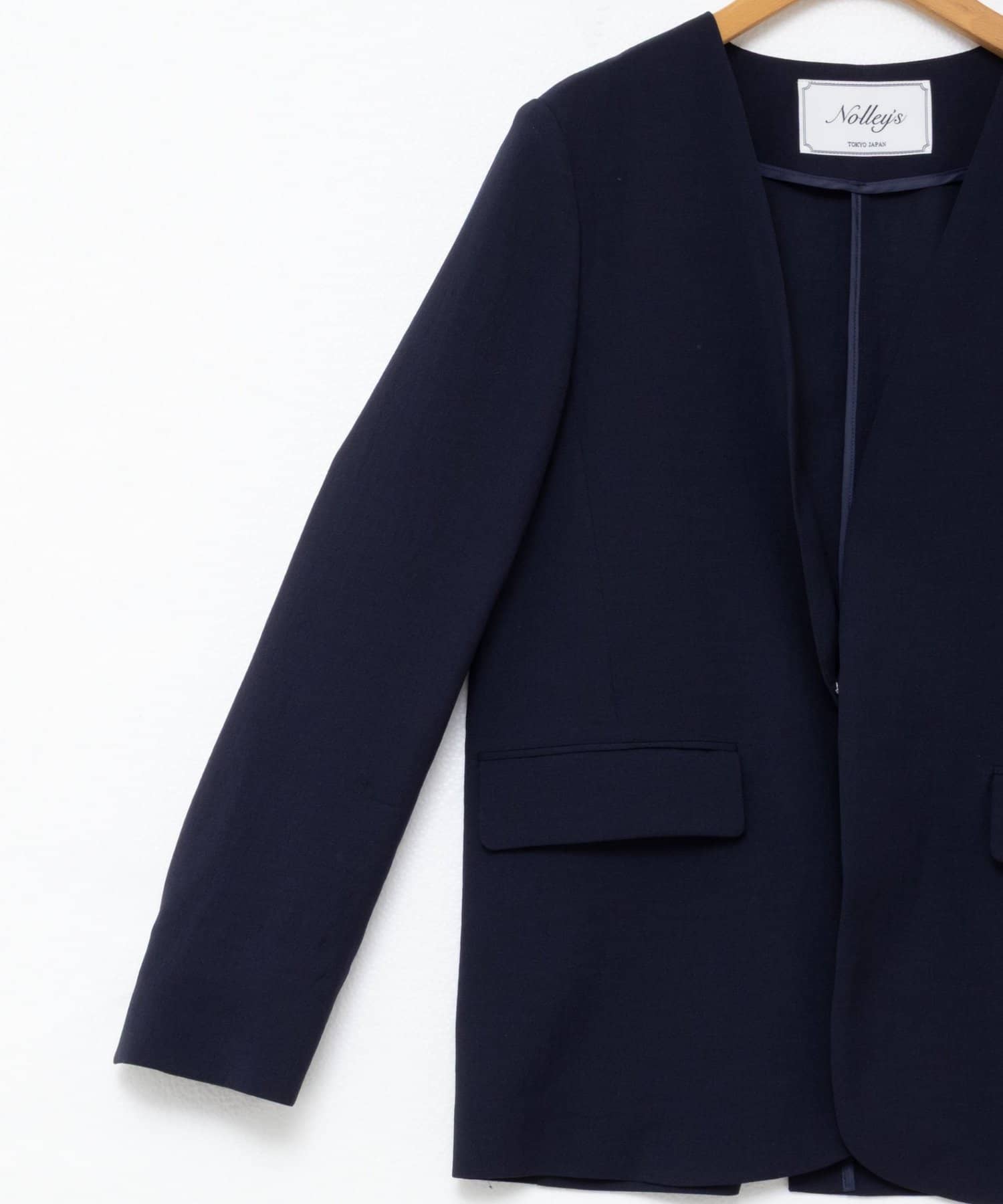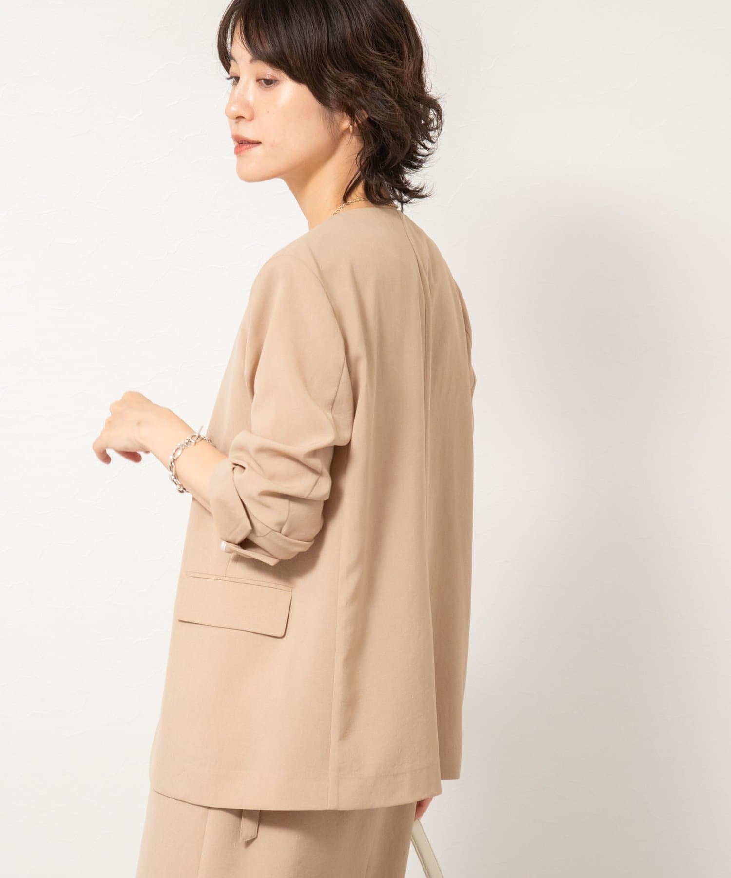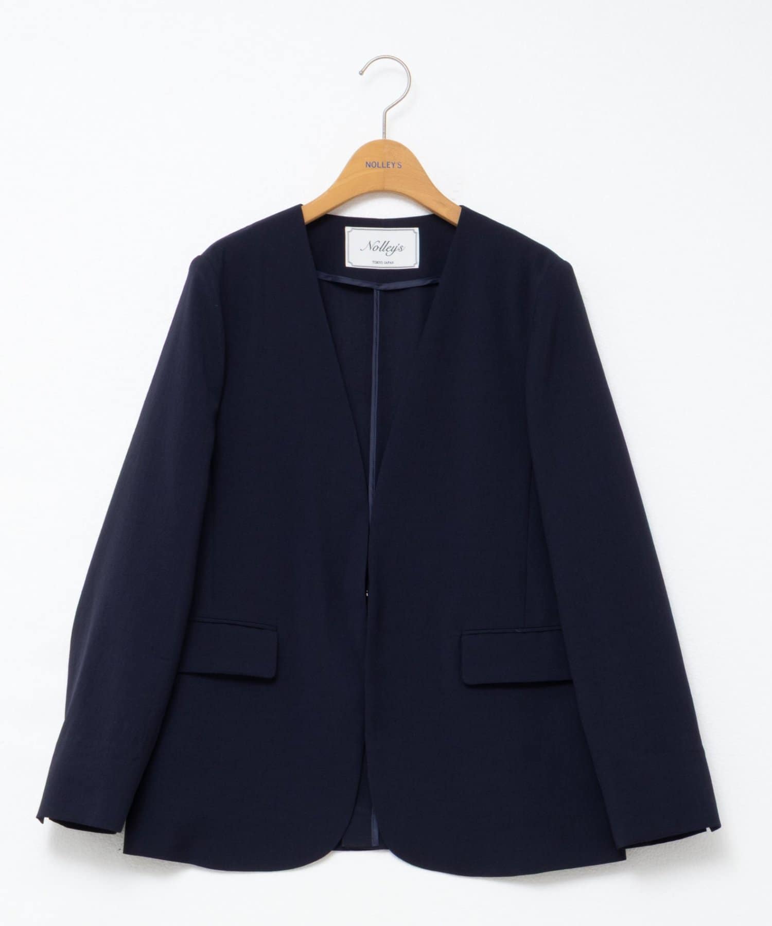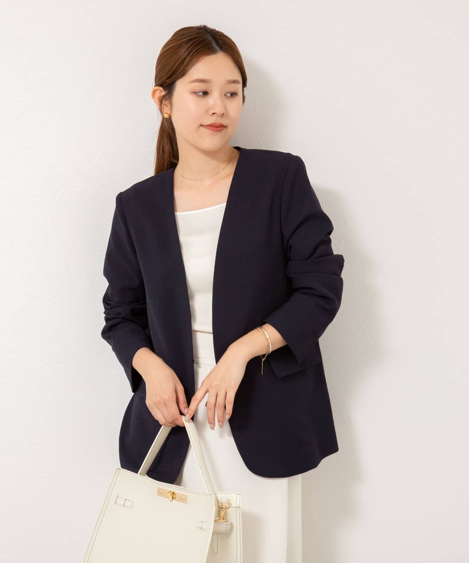 ・Tシャツやノースリーブなどにさっと羽織るだけで、エレガンスな雰囲気になるノーカラージャケット