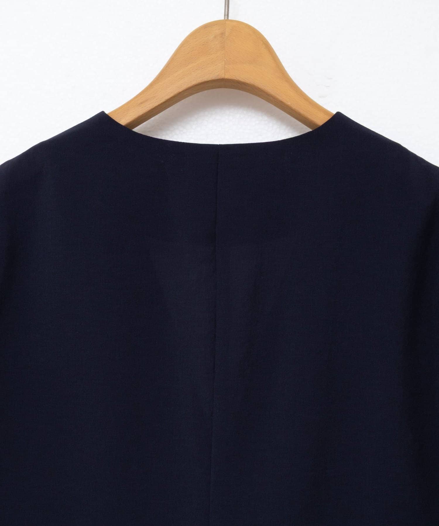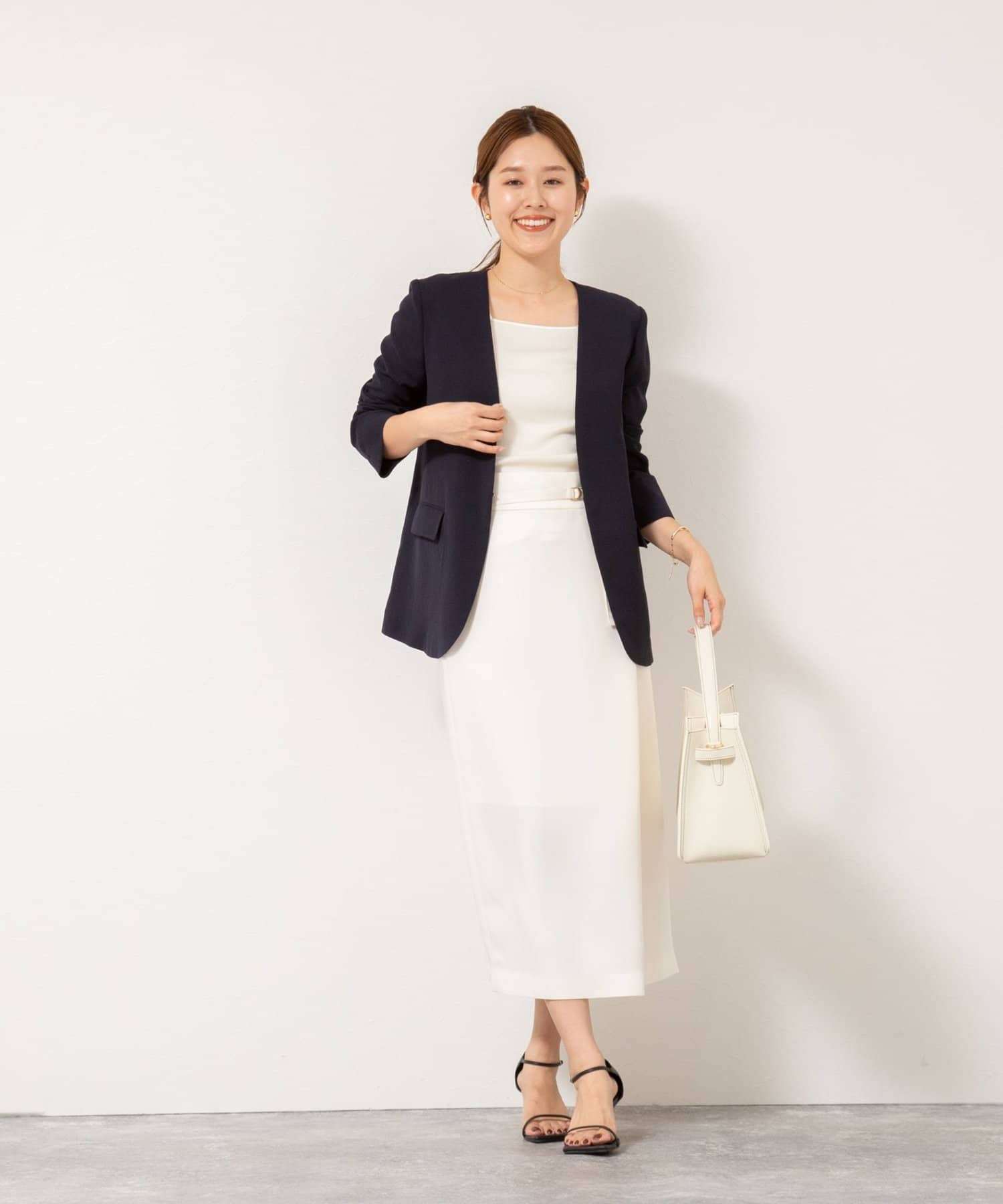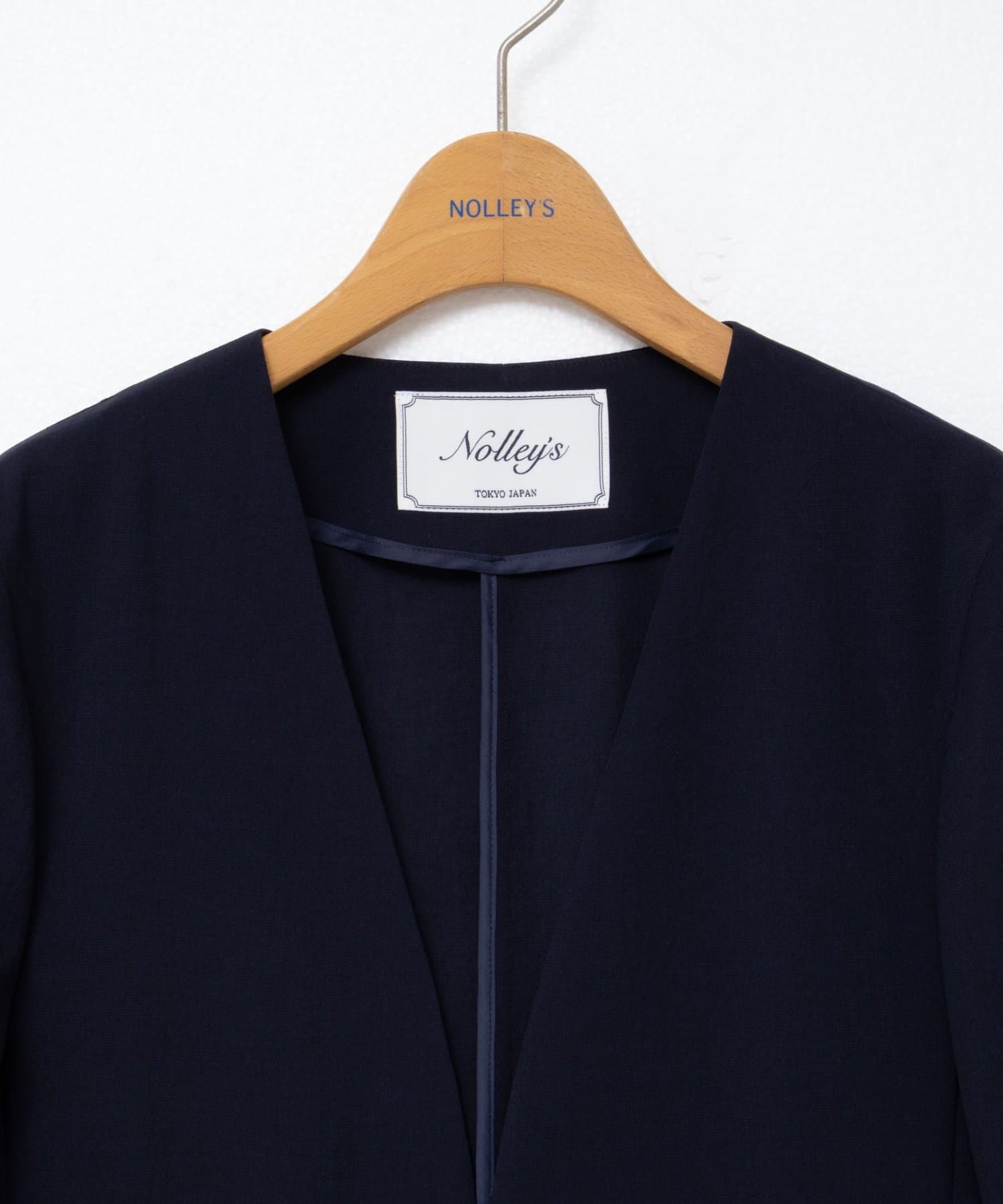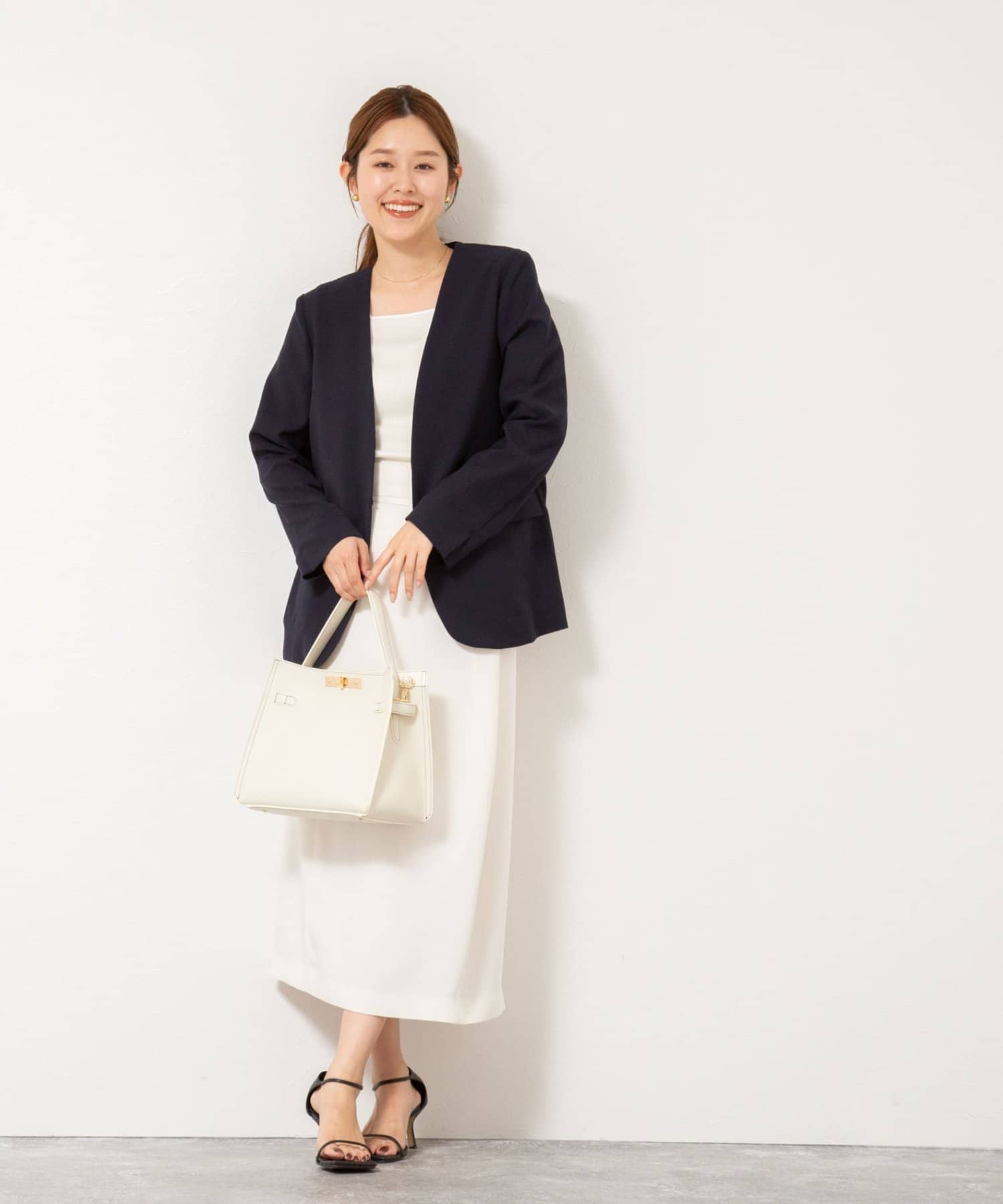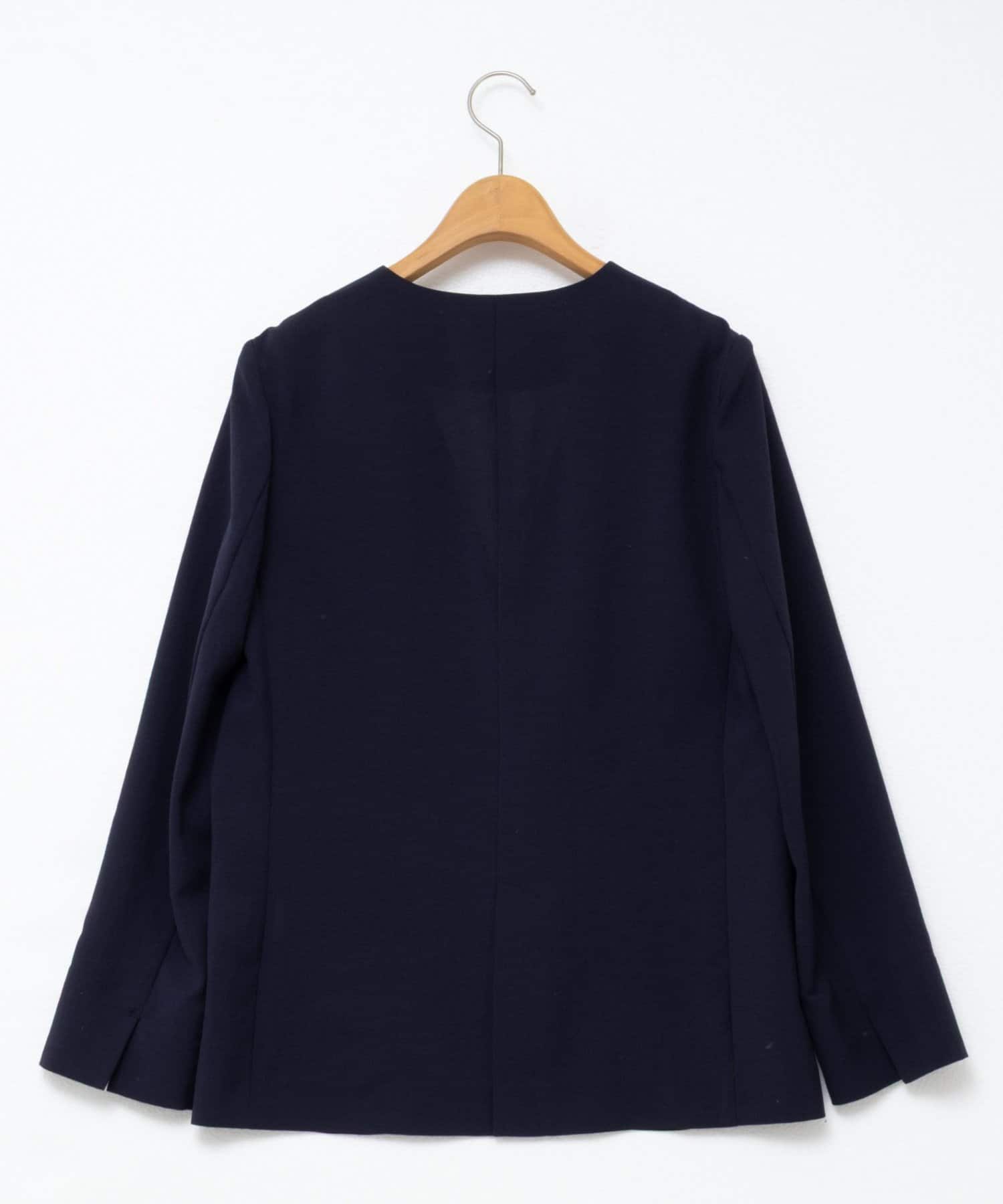・Tシャツやノースリーブなどにさっと羽織るだけで、エレガンスな雰囲気になるノーカラージャケット