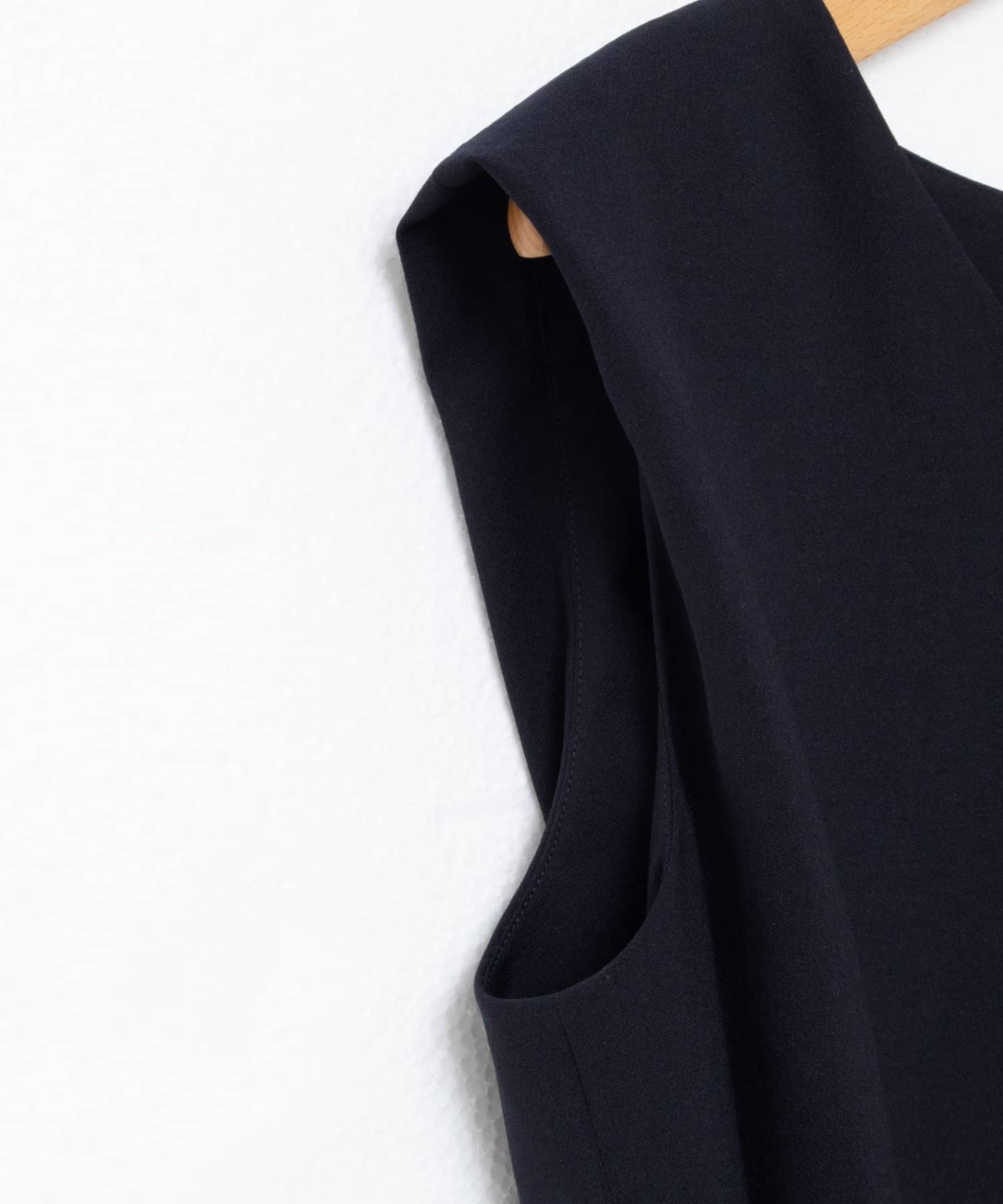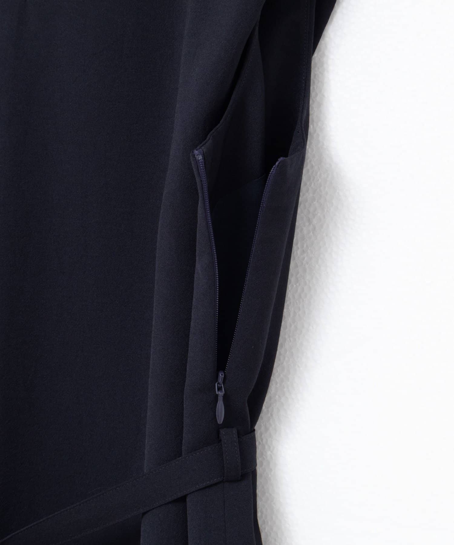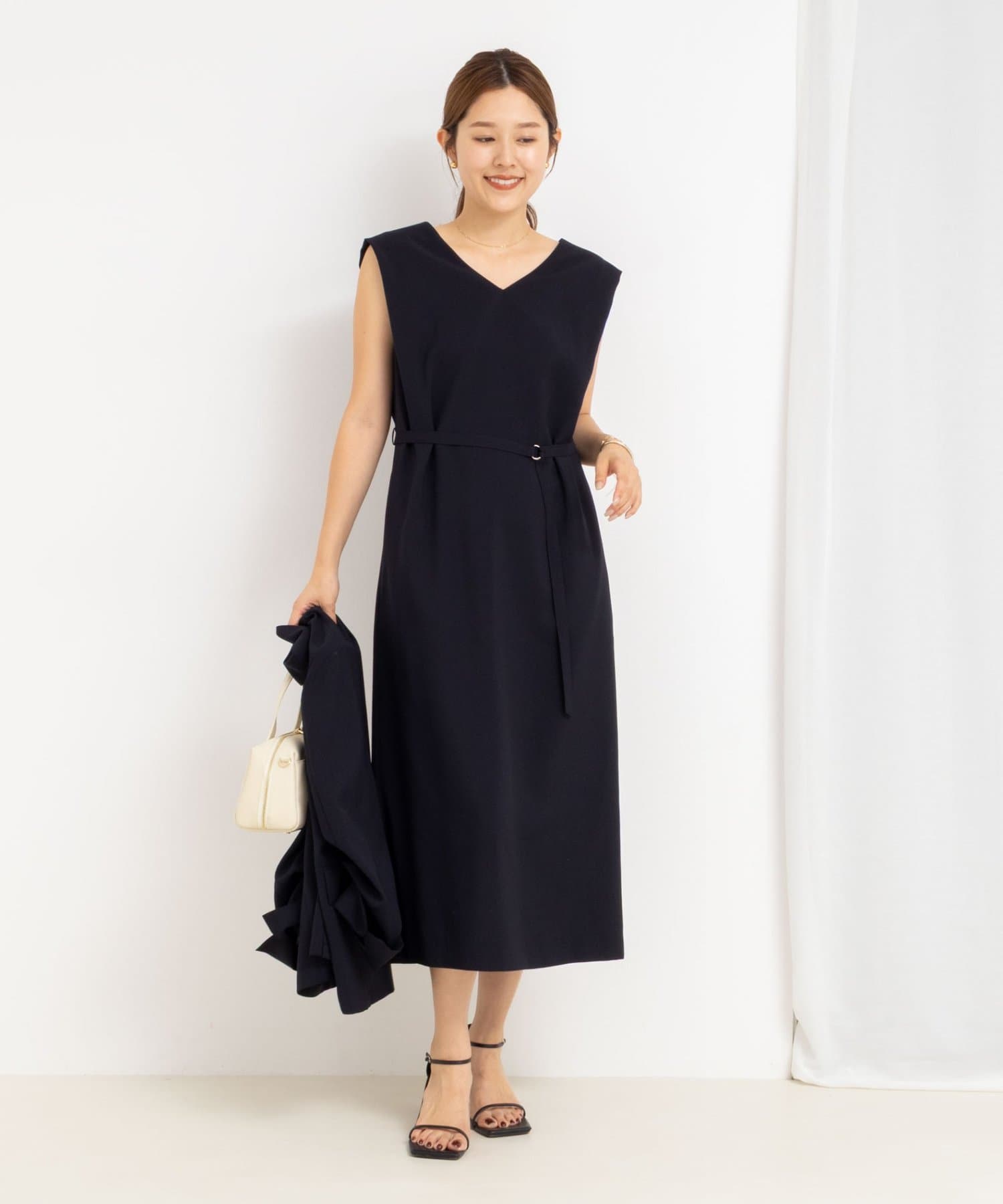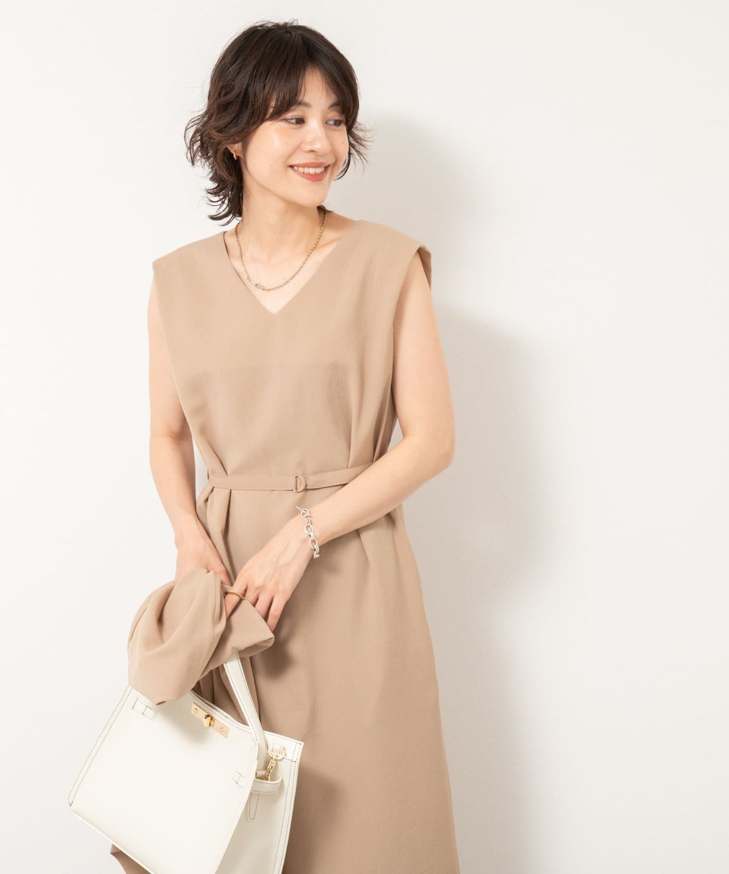 ・そのままストンと着たり、共ベルトでウエストマークしたり、V開きを前にしてすっきり着用したりと、様々な着こなしアレンジが可能