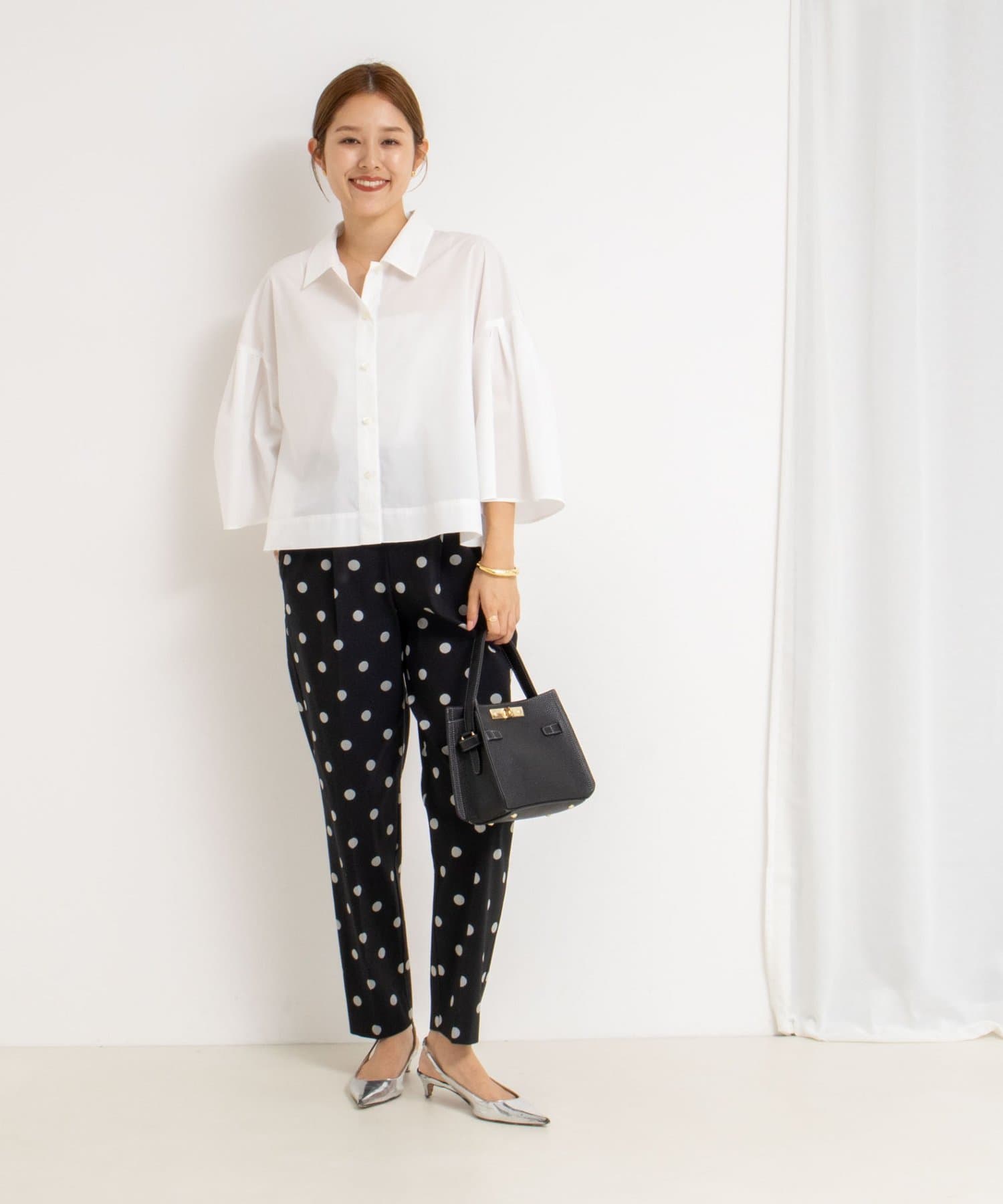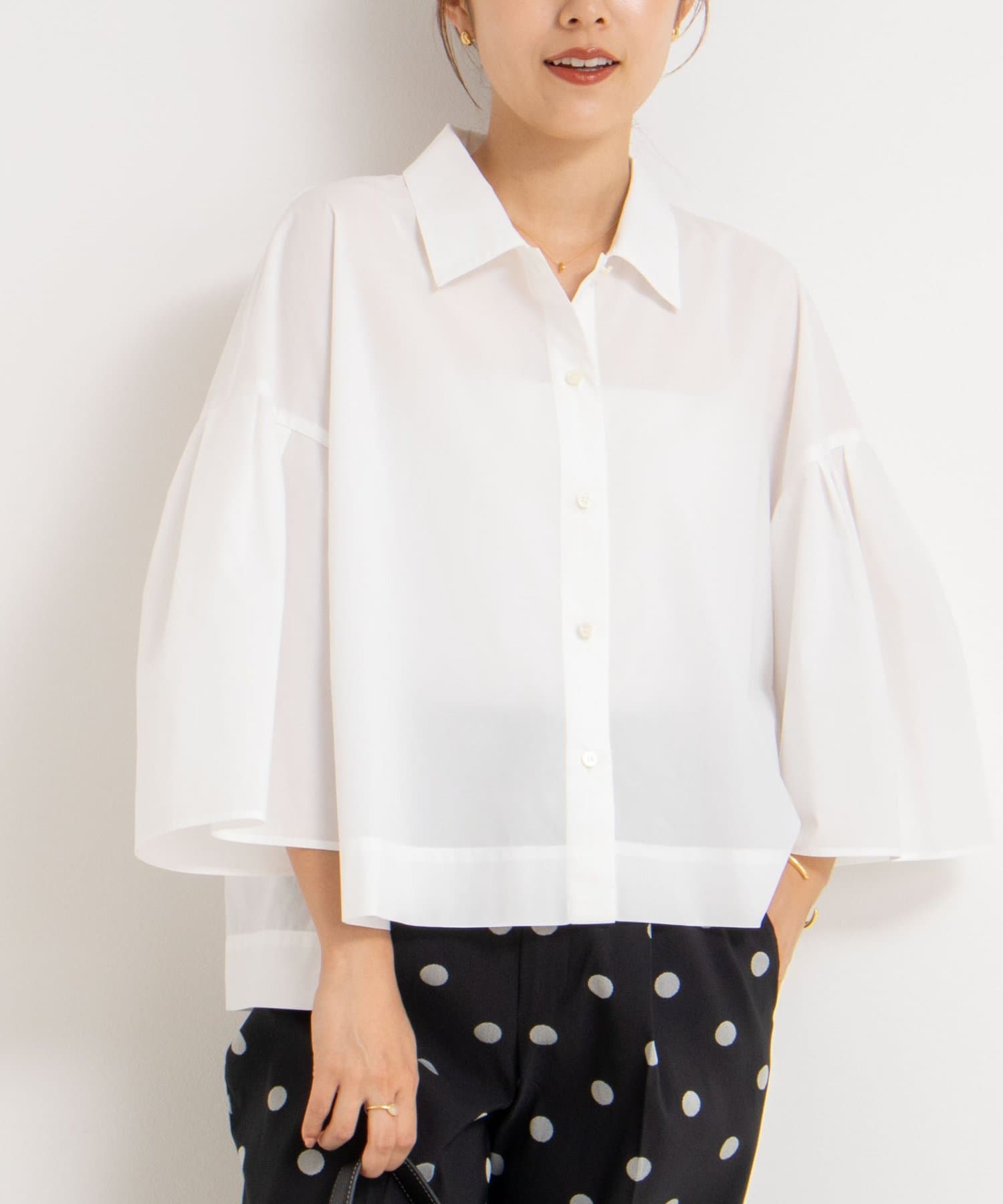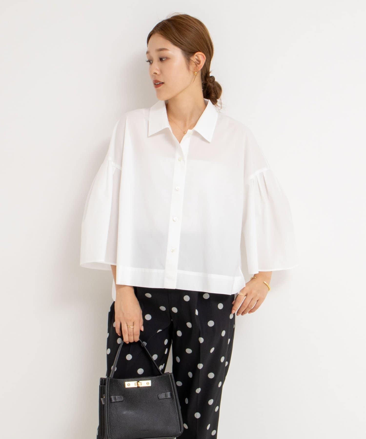 ・まだ暑い秋口に着やすい肌離れ感のあるシルエットのブラウス